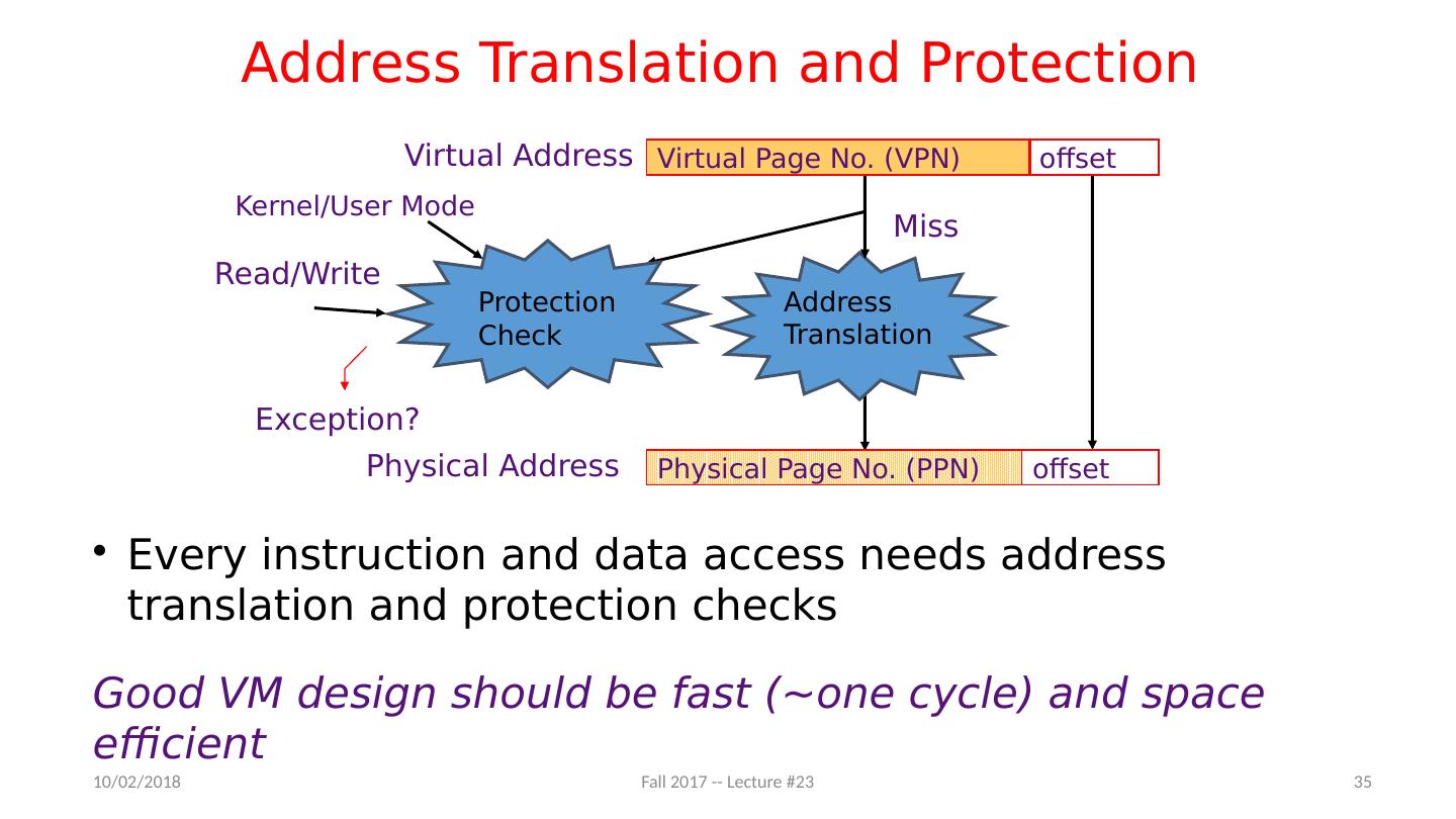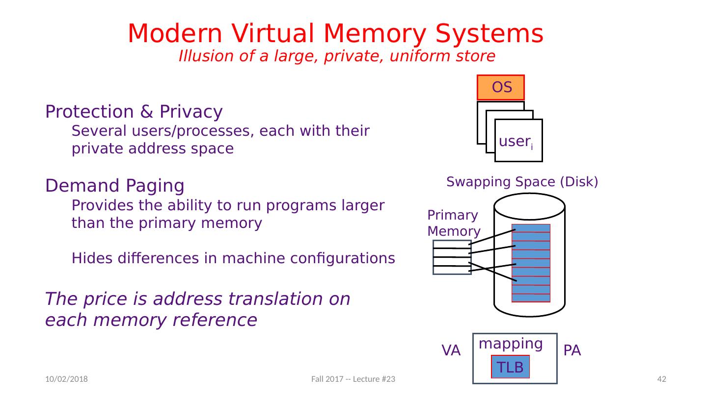 1 .CS 61C: Great Ideas in Computer Architecture Lecture 23: Virtual Memory Krste Asanović & Randy H. Katz http:// inst.eecs.berkeley.edu /~ cs61c/fa17 1 Fall 2017 -- Lecture #23 11/15/17