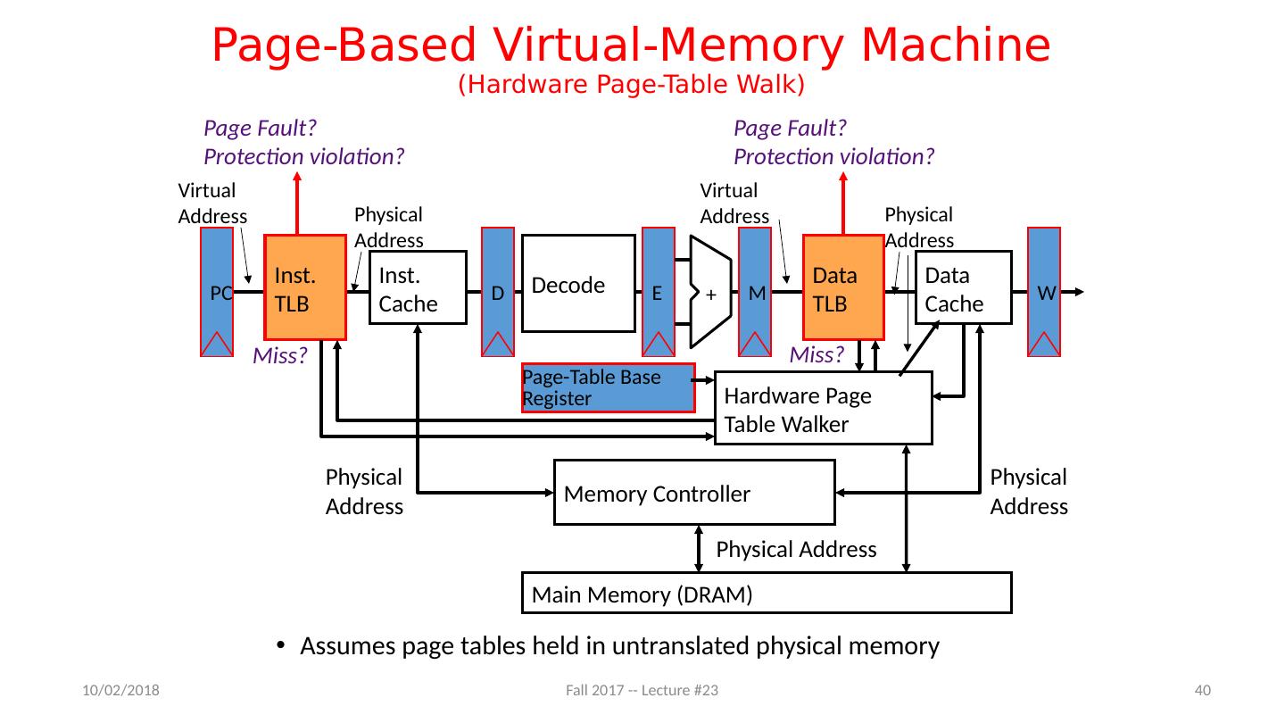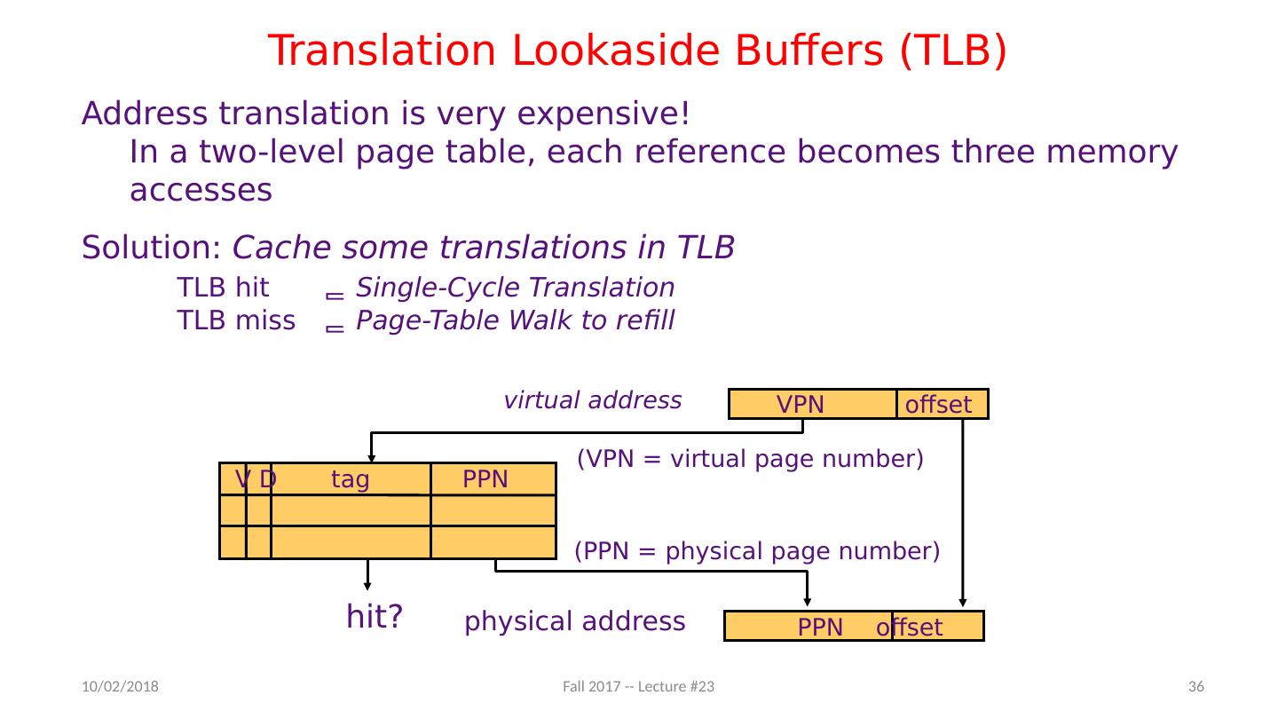 16 .Paged Table Storage in DRAM Page Table Page Table Page Page Table Memory (DRAM) lw / sw take two memory references 16 Fall 2017 -- Lecture #23 11/15/17
