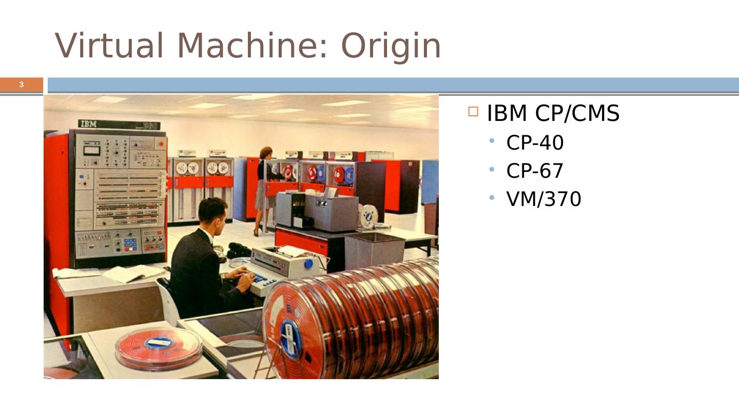 3 .Virtual Machine: Origin IBM CP/CMS CP-40 CP-67 VM/370 3