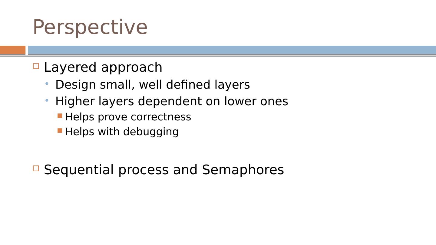 27 .Perspective Layered approach Design small, well defined layers Higher layers dependent on lower ones Helps prove correctness Helps with debugging Sequential process and Semaphores