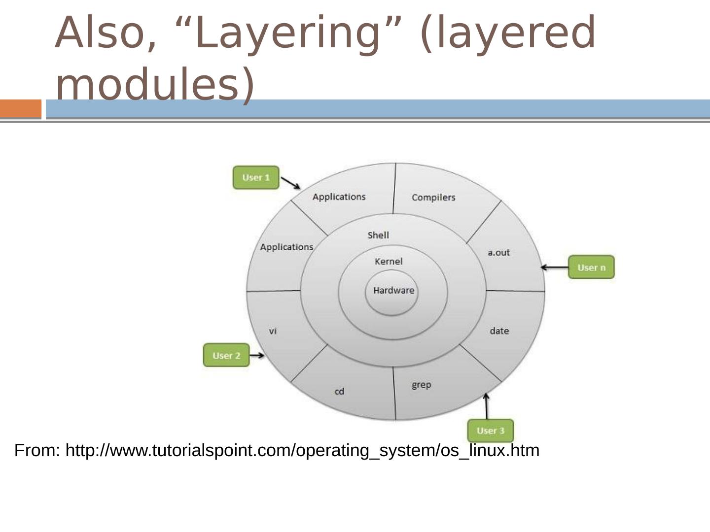 5 .Also, “Layering” (layered modules) From: http:// www.tutorialspoint.com / operating_system / os_linux.htm