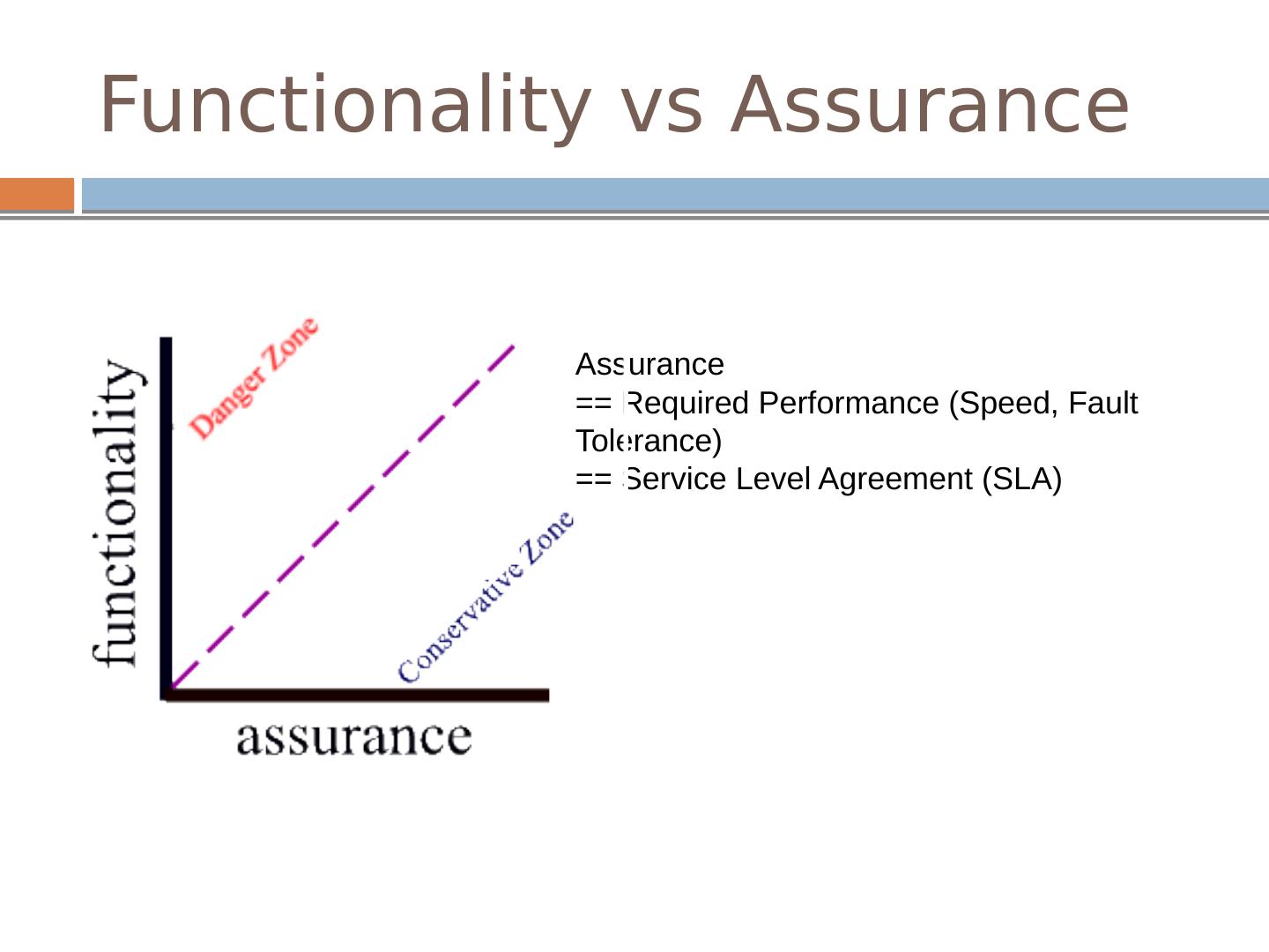 7 .Functionality vs Assurance Assurance == Required Performance (Speed, Fault Tolerance) == Service Level Agreement (SLA)