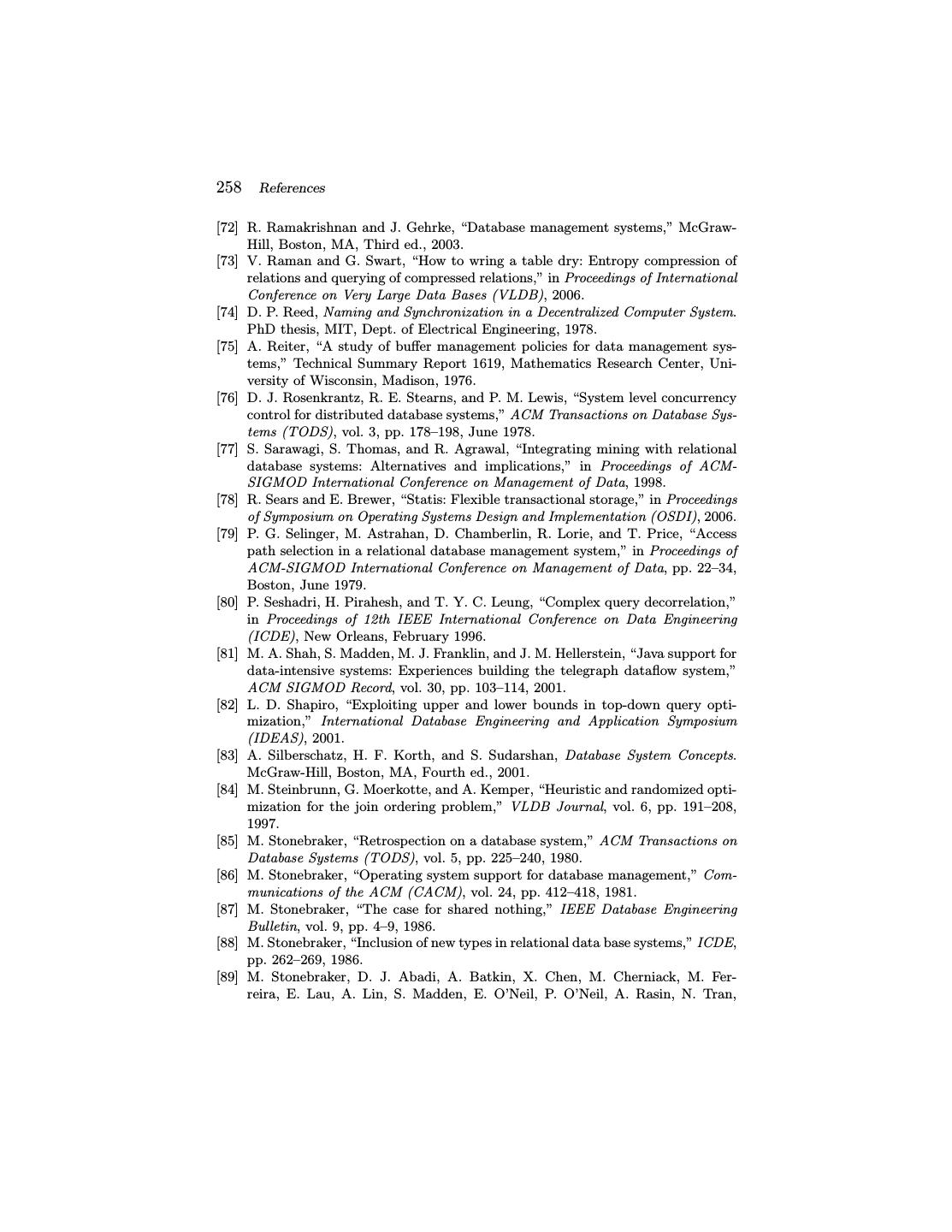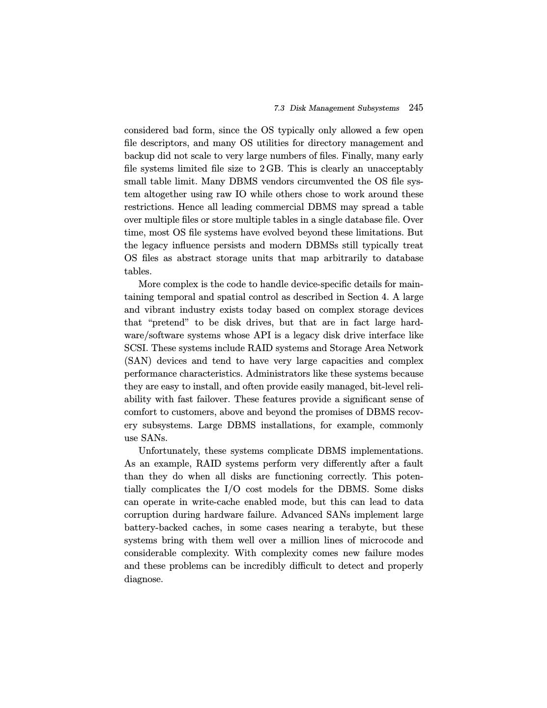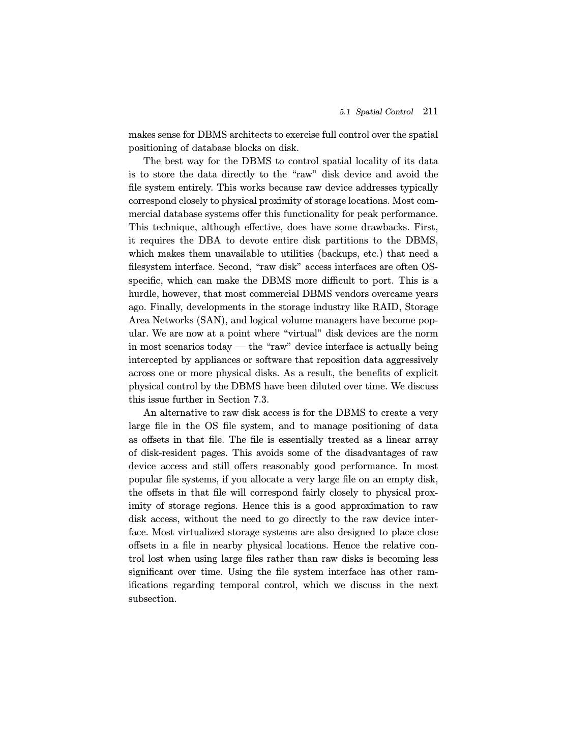 2 . 1 Introduction Database Management Systems (DBMSs) are complex, mission-critical software systems. Today’s DBMSs embody decades of academic and industrial research and intense corporate software development. Database systems were among the earliest widely deployed online server systems and, as such, have pioneered design solutions spanning not only data management, but also applications, operating systems, and net- worked services. The early DBMSs are among the most influential soft- ware systems in computer science, and the ideas and implementation issues pioneered for DBMSs are widely copied and reinvented. For a number of reasons, the lessons of database systems architec- ture are not as broadly known as they should be. First, the applied database systems community is fairly small. Since market forces only support a few competitors at the high end, only a handful of successful DBMS implementations exist. The community of people involved in designing and implementing database systems is tight: many attended the same schools, worked on the same influential research projects, and collaborated on the same commercial products. Second, academic treat- ment of database systems often ignores architectural issues. Textbook presentations of database systems traditionally focus on algorithmic 142