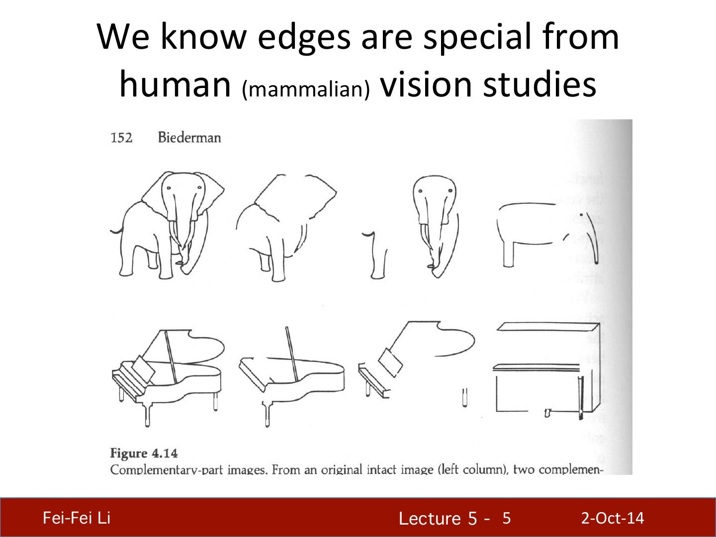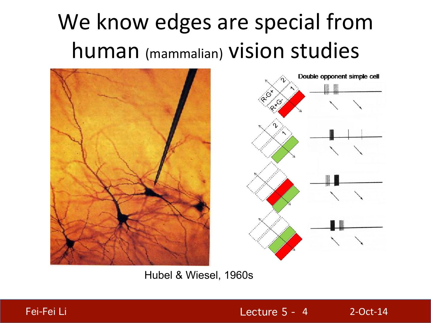 5 . We know edges are special from human (mammalian) vision studies Fei-Fei Li! Lecture 5 - !5 2-‐Oct-‐14
