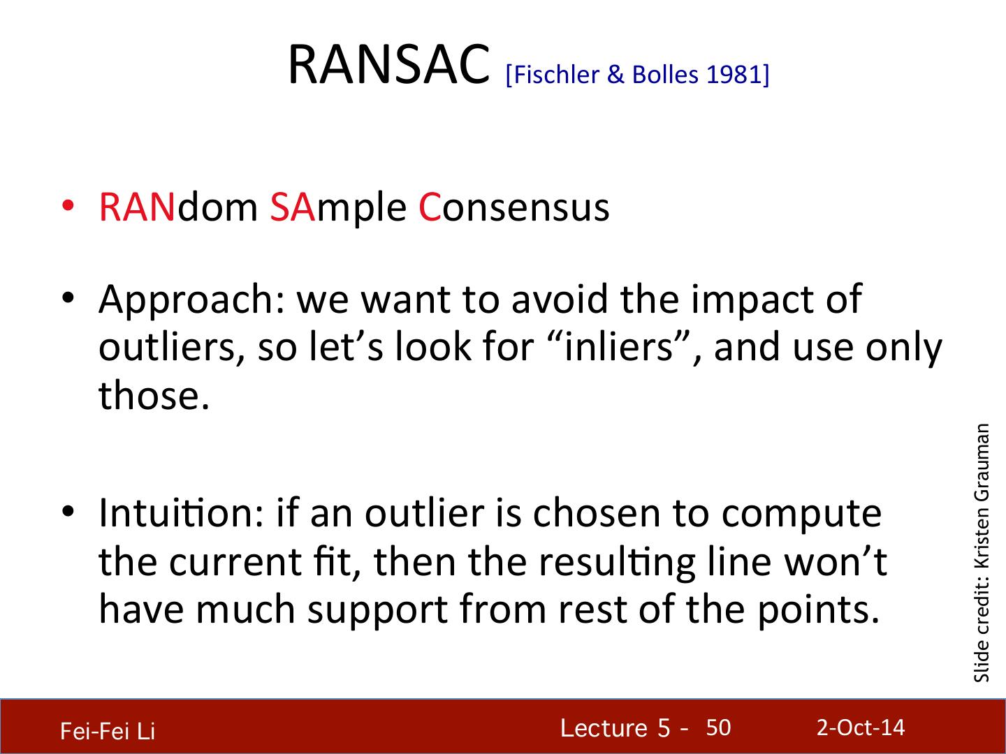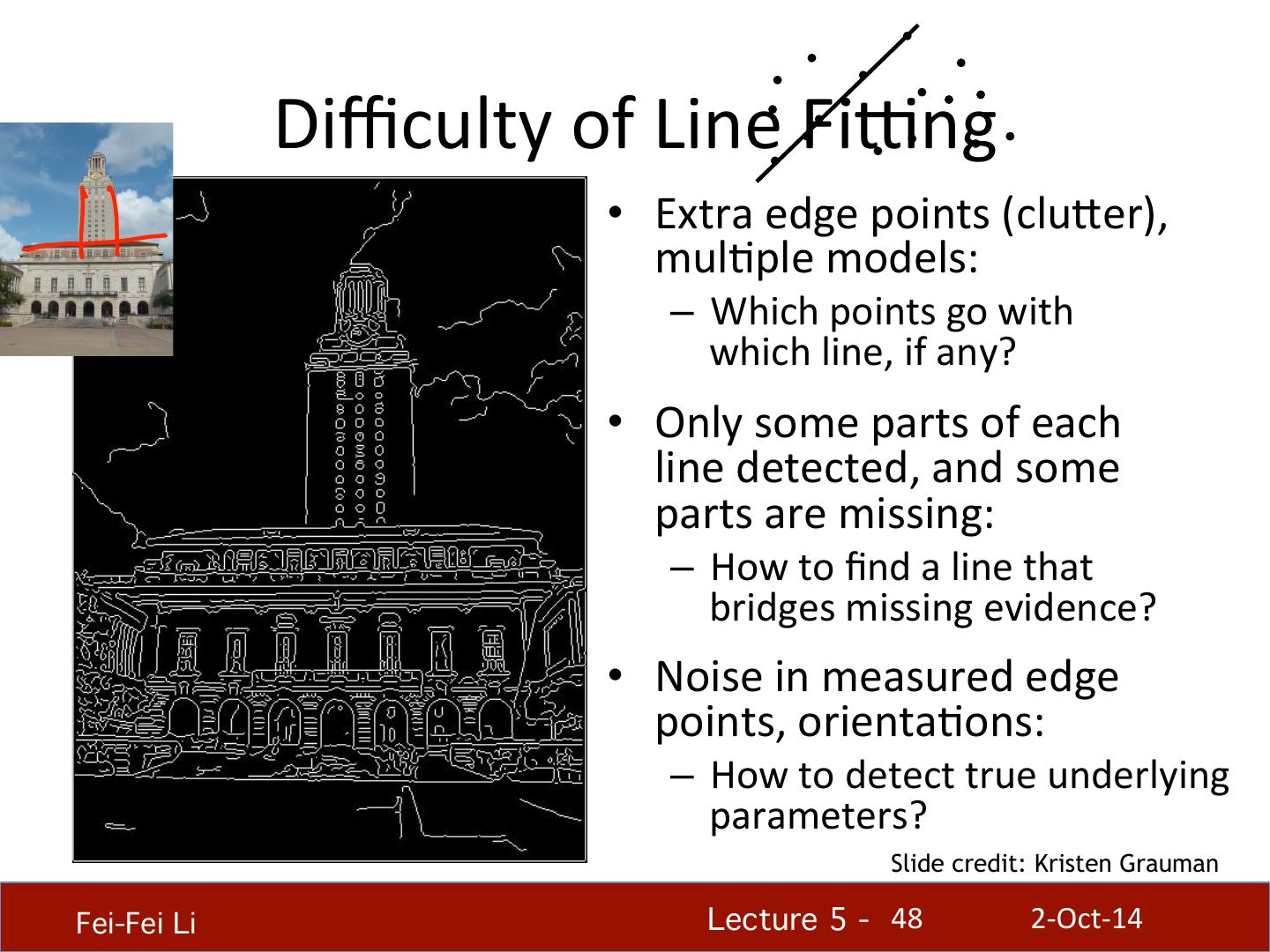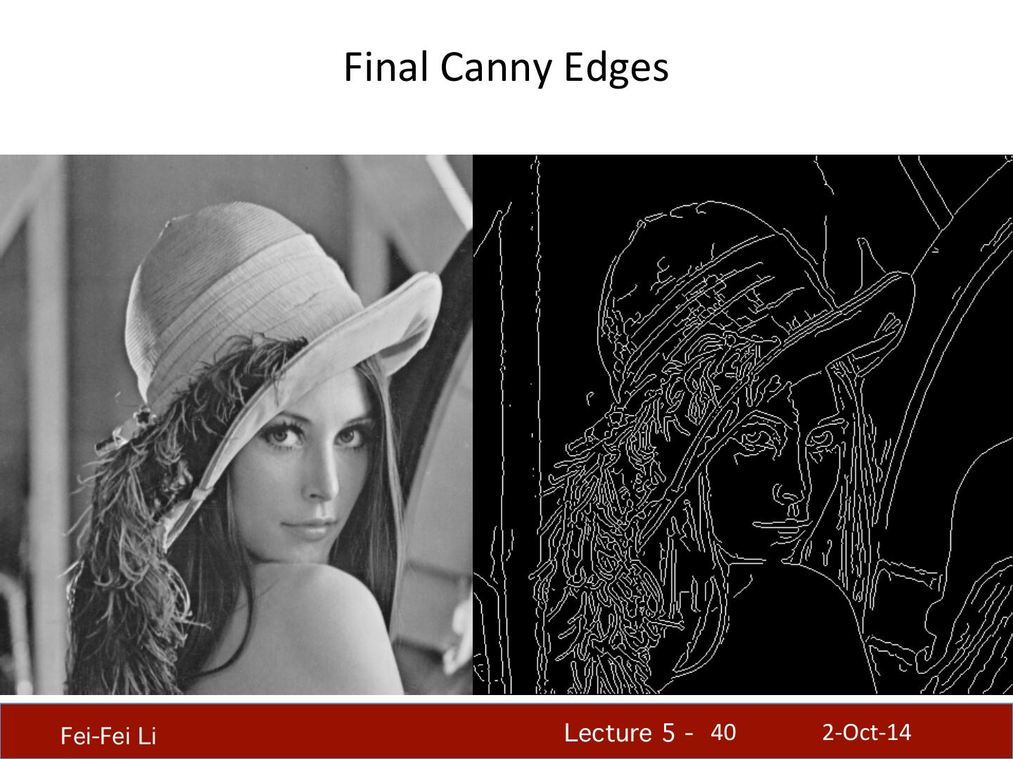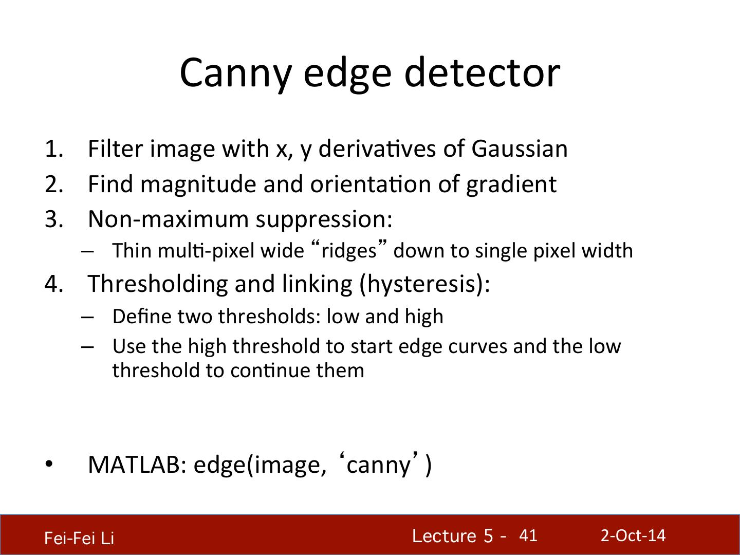 13 . What we will learn today • Edge detec.on • A simple edge detector • Canny edge detector • A model fiIng method for edge detec.on – RANSAC Fei-Fei Li! Lecture 5 - !13 2-‐Oct-‐14