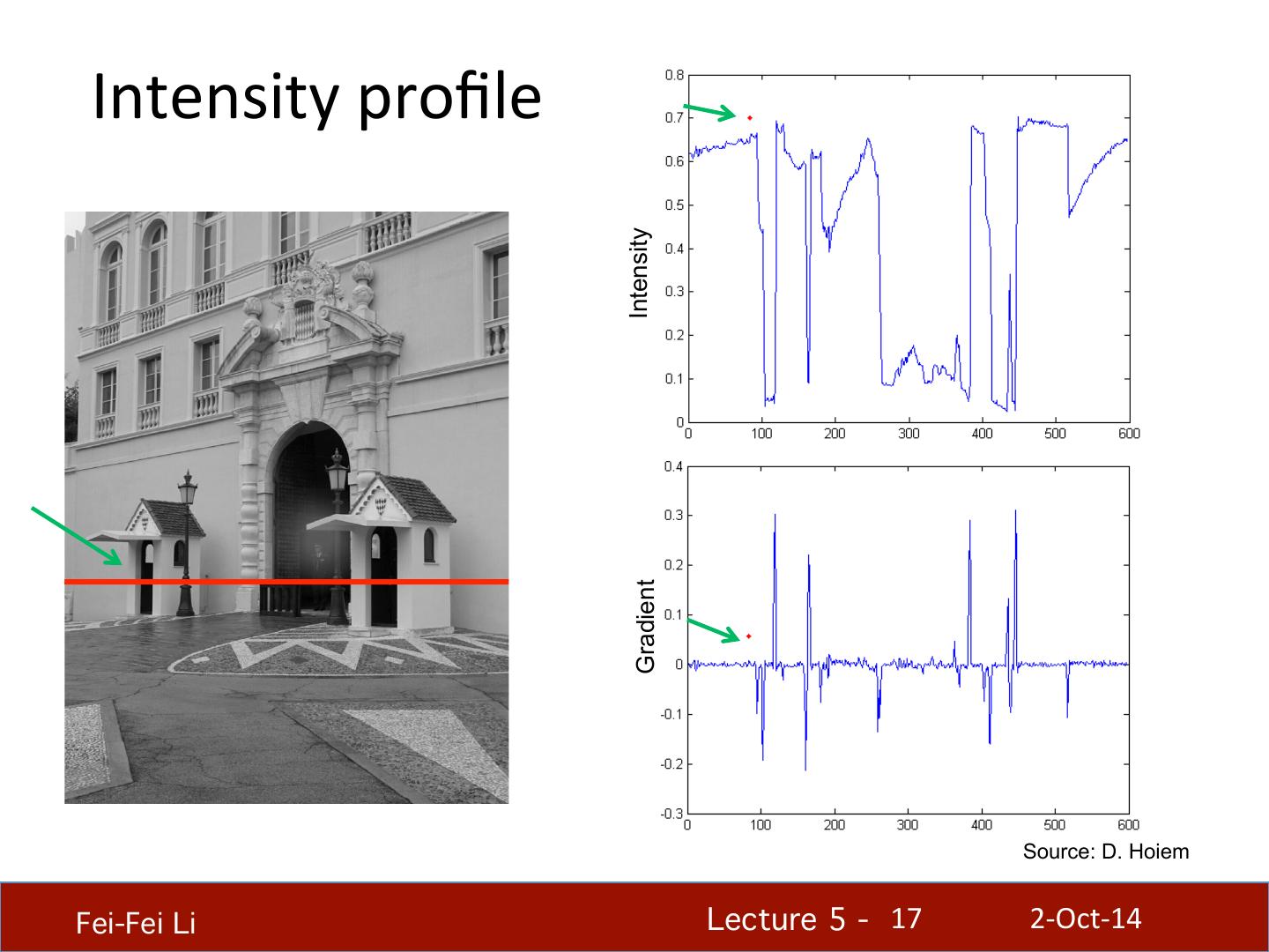 17 . Intensity profile Intensity Gradient Source: D. Hoiem Fei-Fei Li! Lecture 5 - !17 2-‐Oct-‐14