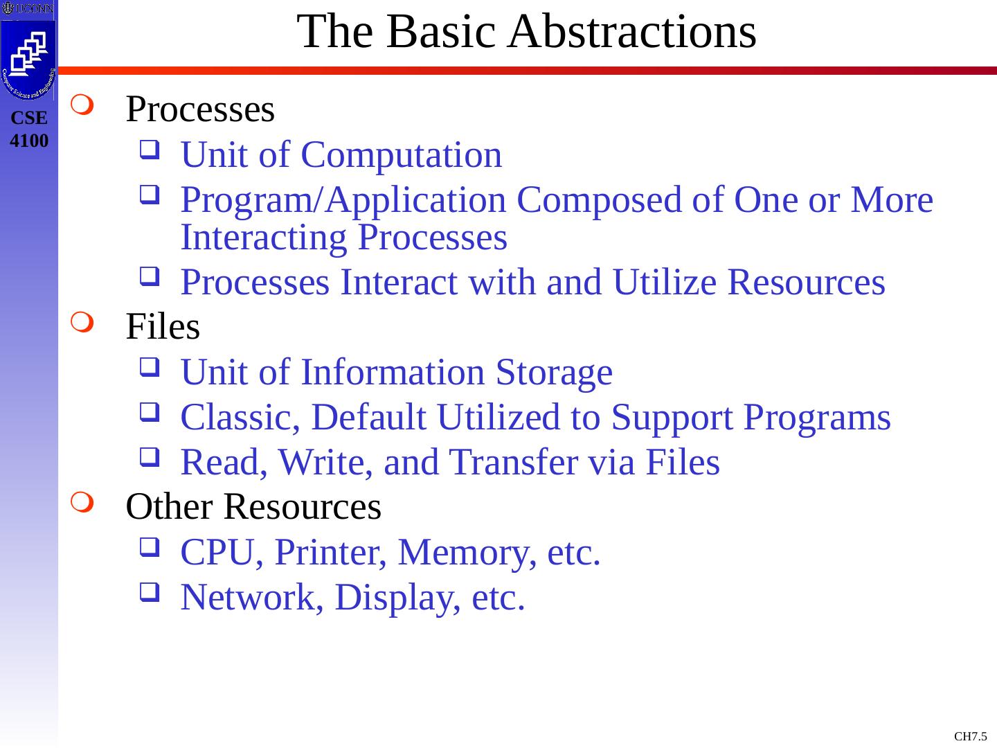 5 .The Basic Abstractions Processes Unit of Computation Program/Application Composed of One or More Interacting Processes Processes Interact with and Utilize Resources Files Unit of Information Storage Classic, Default Utilized to Support Programs Read, Write, and Transfer via Files Other Resources CPU, Printer, Memory, etc. Network, Display, etc.