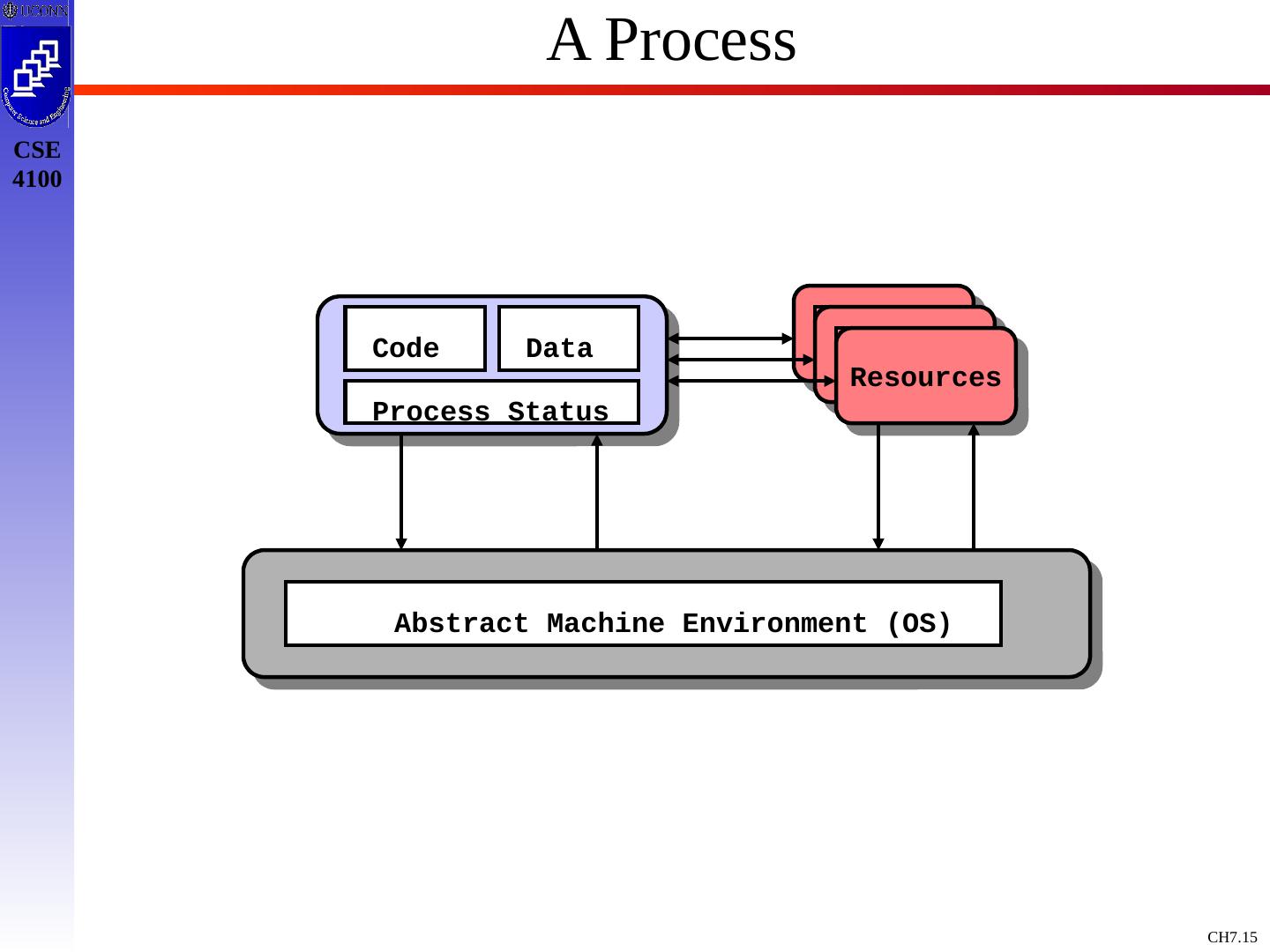 15 .A Process Abstract Machine Environment (OS) Code Data Process Status Resources Resources Resources