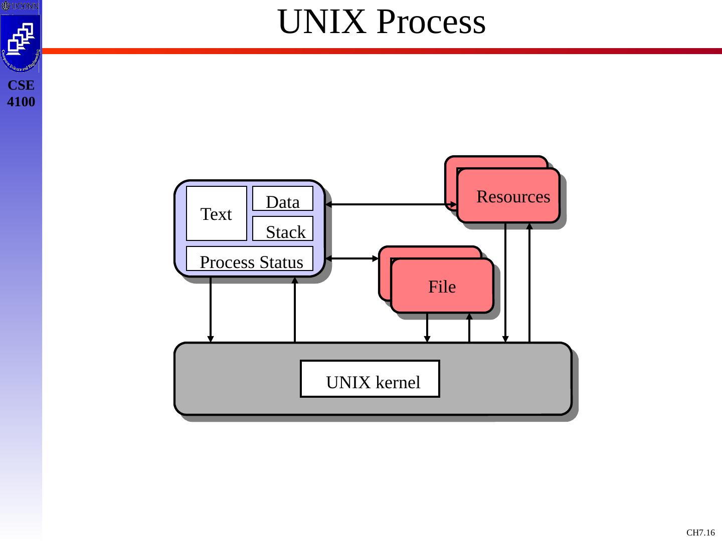 16 .UNIX Process Text Process Status Resources Resources File UNIX kernel Stack Data File
