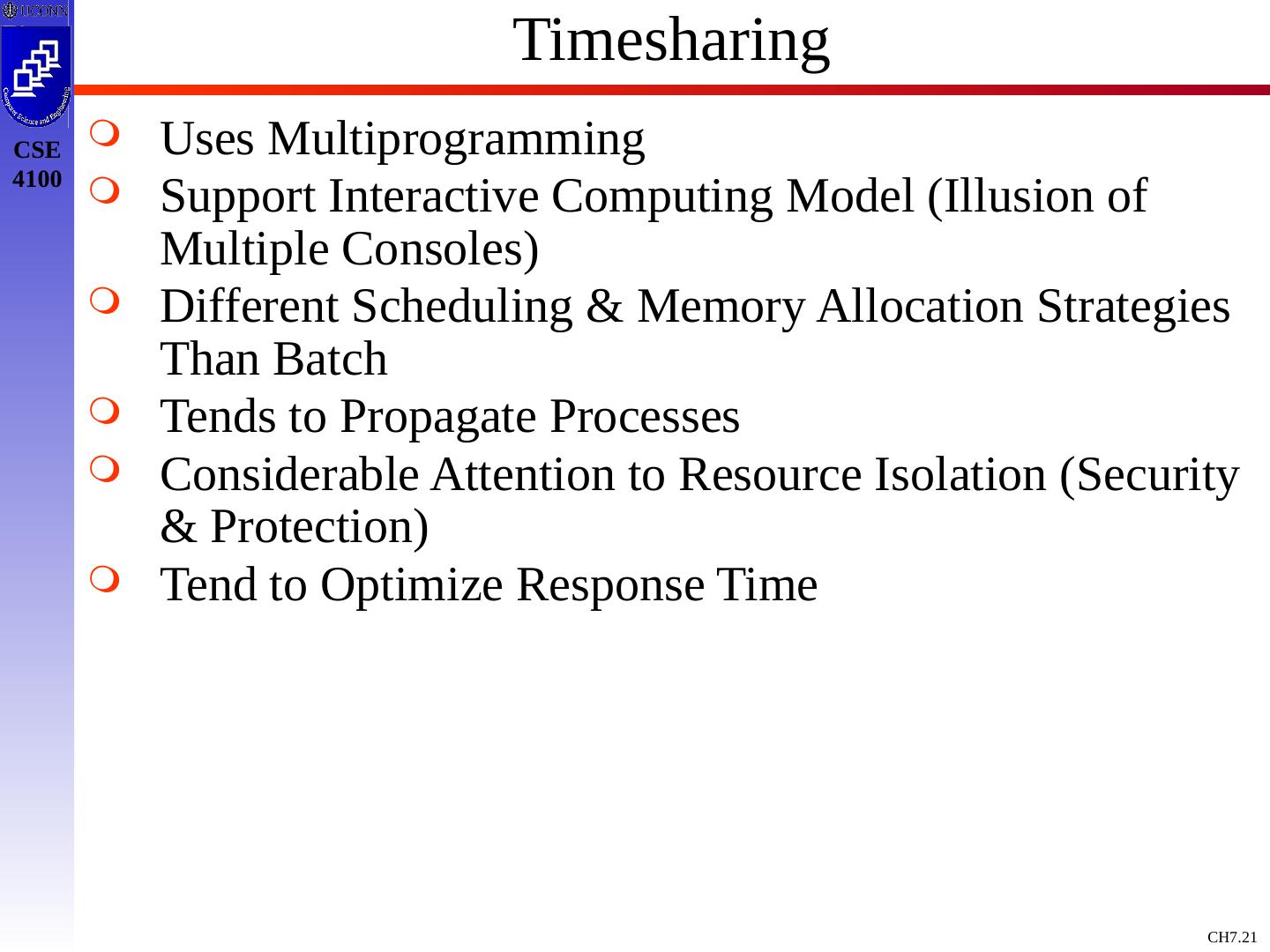 21 .Timesharing Uses Multiprogramming Support Interactive Computing Model (Illusion of Multiple Consoles) Different Scheduling & Memory Allocation Strategies Than Batch Tends to Propagate Processes Considerable Attention to Resource Isolation (Security & Protection) Tend to Optimize Response Time