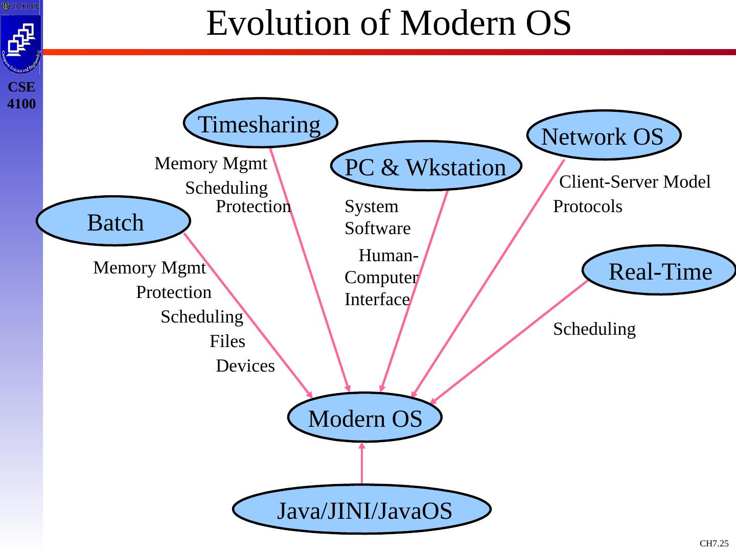 25 .Evolution of Modern OS Modern OS Batch Timesharing PC & Wkstation Network OS Real-Time Memory Mgmt Protection Scheduling Files Devices Memory Mgmt Protection Scheduling System Software Human- Computer Interface Client-Server Model Protocols Scheduling Java/JINI/JavaOS