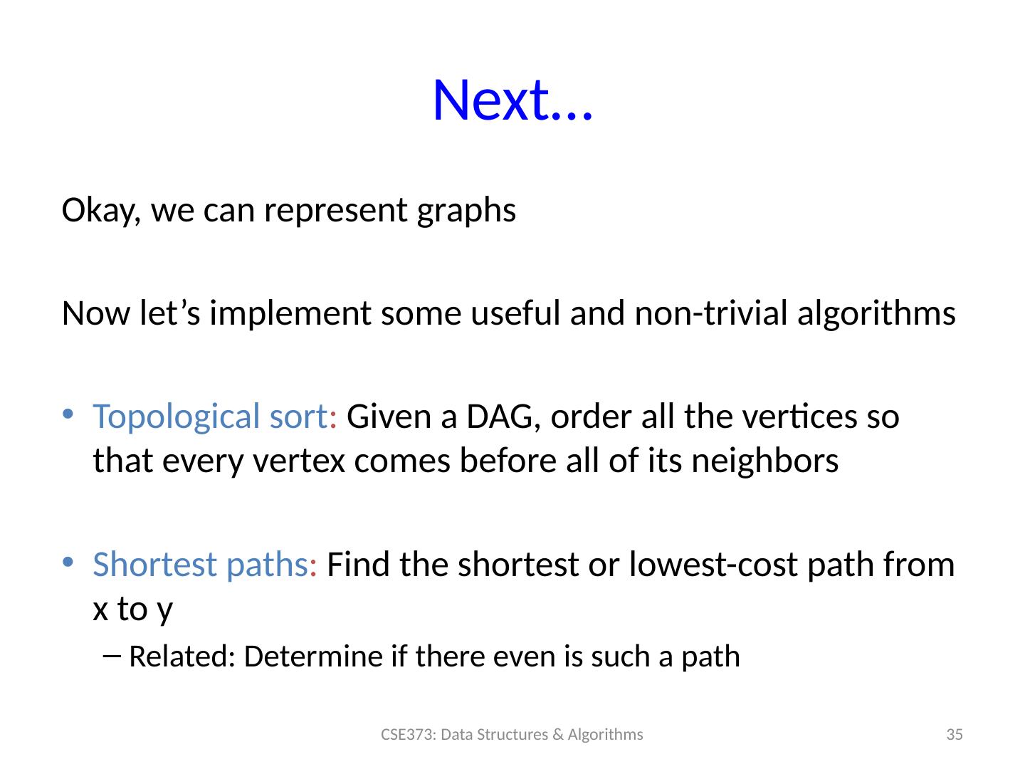 1 .CSE 373: Data Structures & Algorithms Introduction to Graphs Riley Porter Winter 2017 CSE373: Data Structures & Algorithms 1