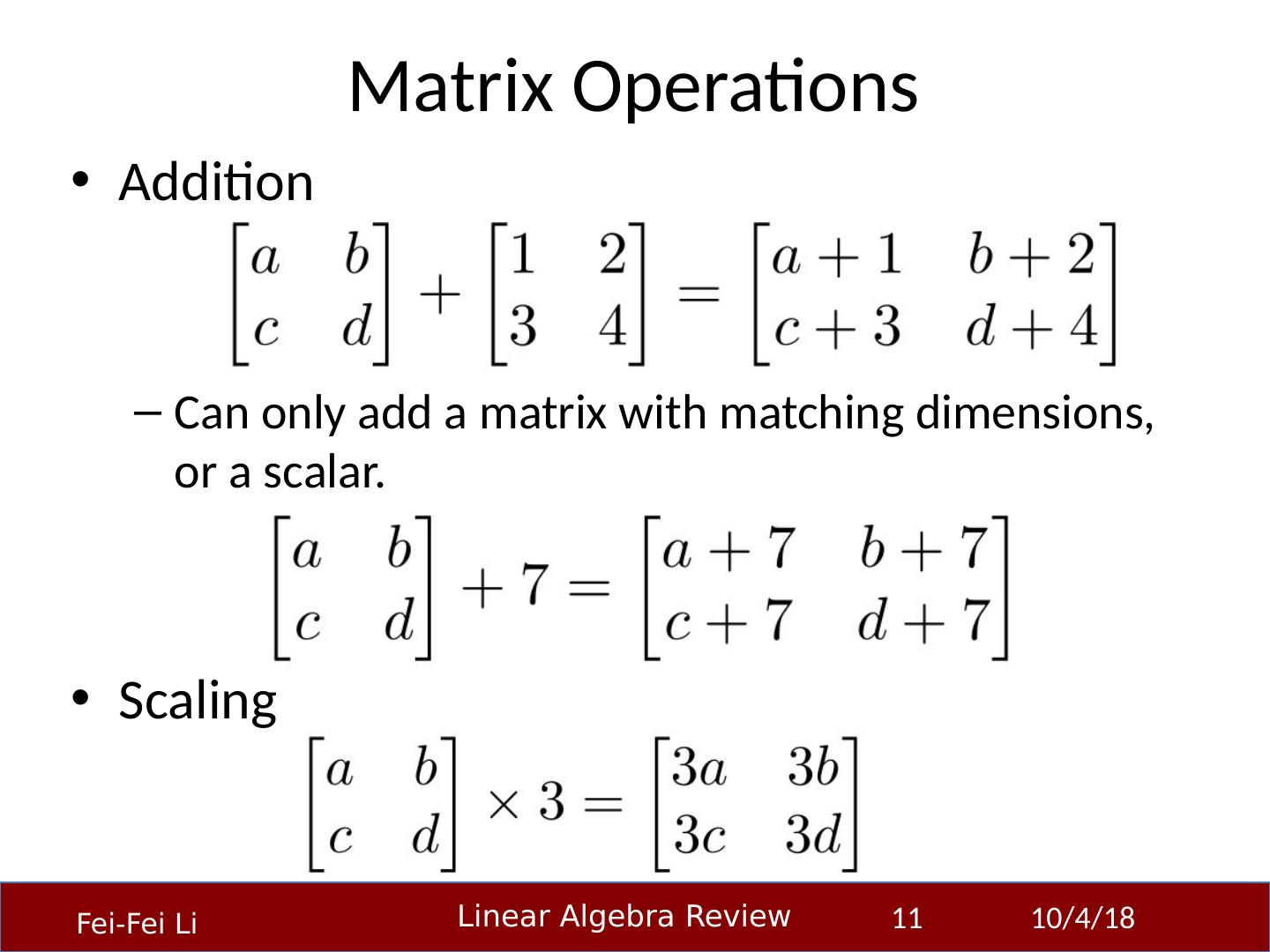 11 .Matrix Operations Addition Can only add a matrix with matching dimensions, or a scalar. Scaling 23-Sep-14 11