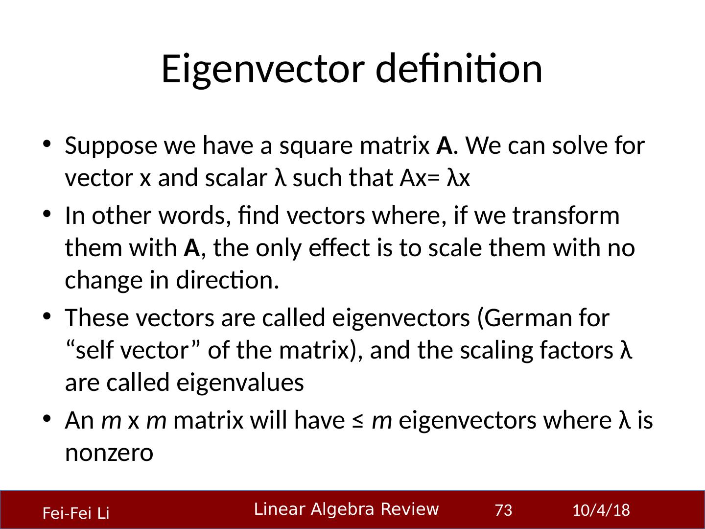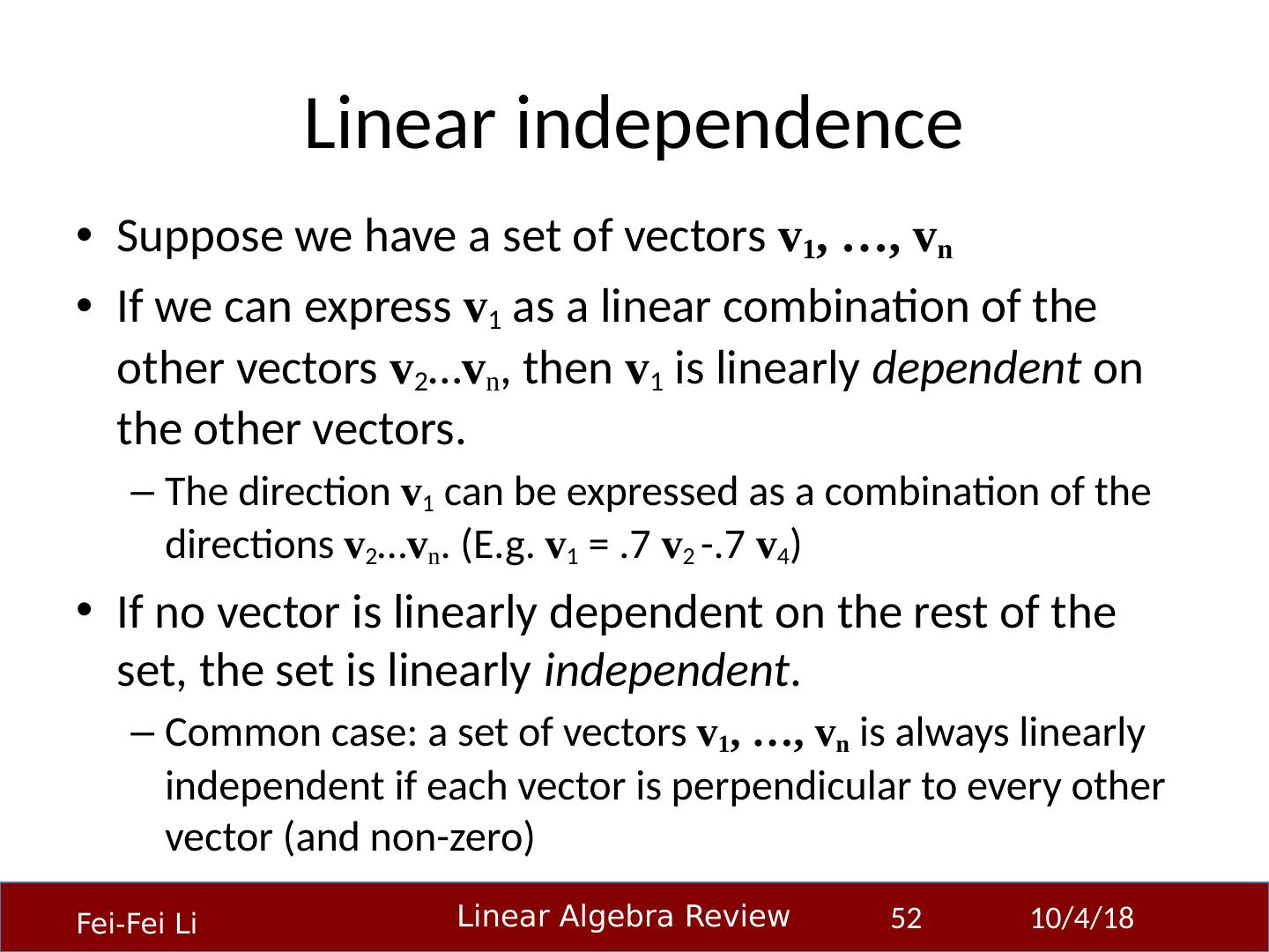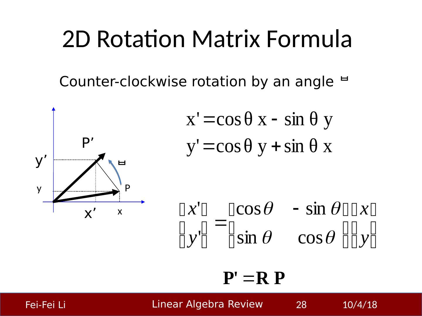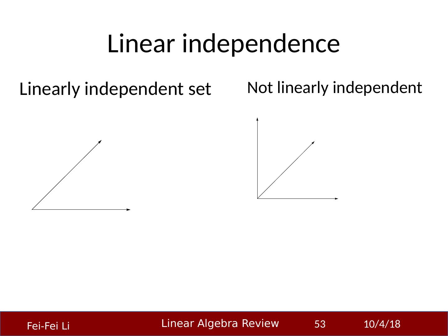 1 .Linear Algebra Primer Professor Fei-Fei Li Stanford Vision Lab 23-Sep-14 1 Another, very in-depth linear algebra review from CS229 is available here: http:// cs229.stanford.edu/section/cs229-linalg.pdf And a video discussion of linear algebra from EE263 is here (lectures 3 and 4 ): http:// see.stanford.edu/see/lecturelist.aspx?coll=17005383-19c6-49ed-9497-2ba8bfcfe5f6