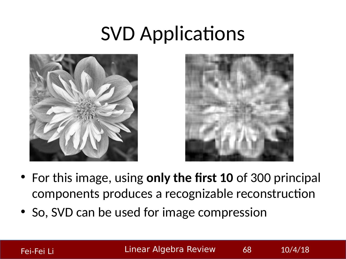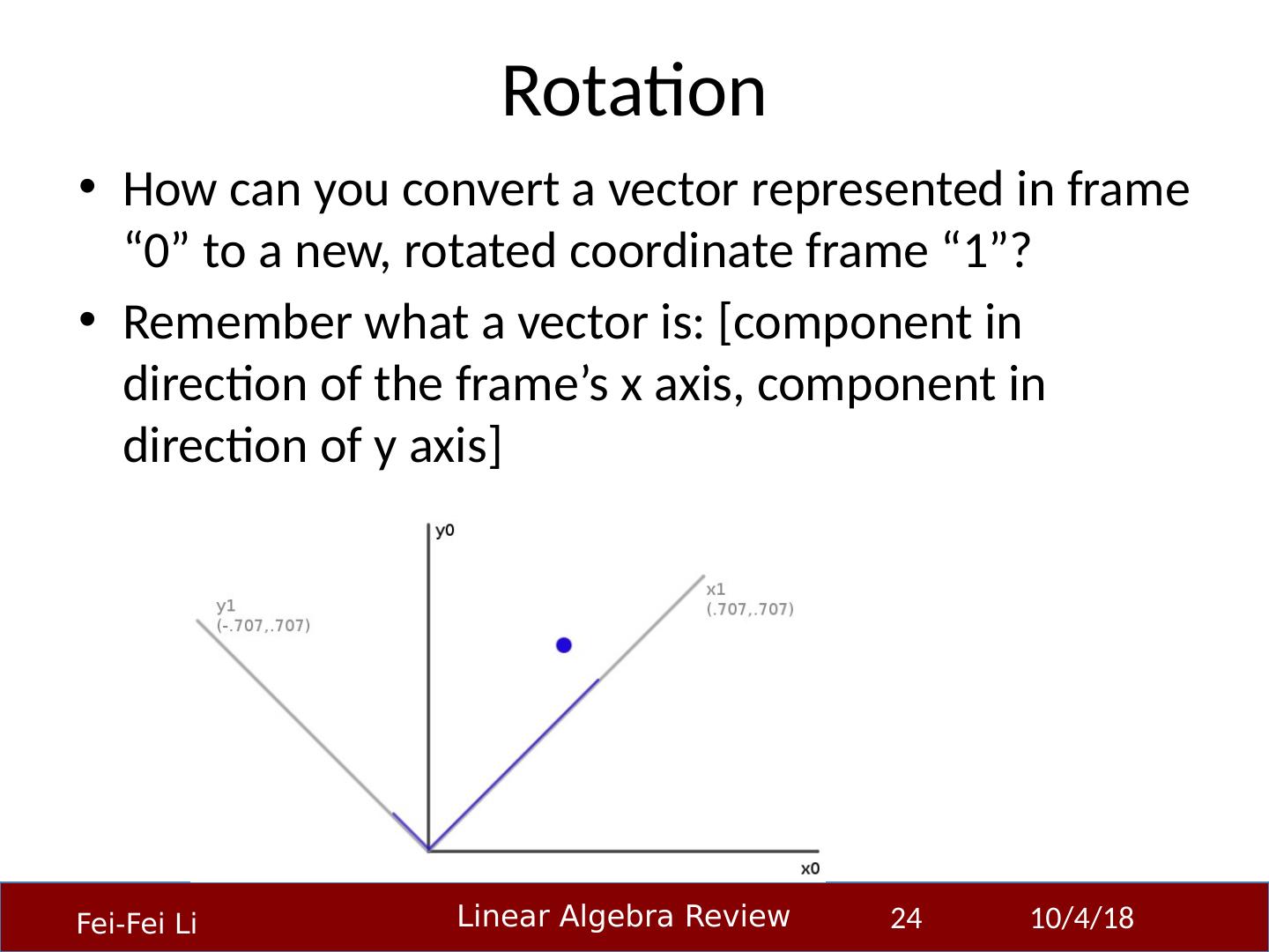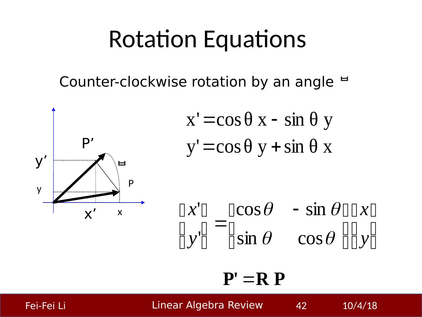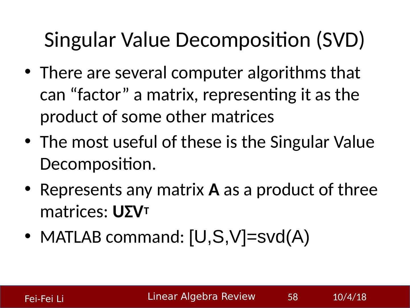 1 .Linear Algebra Primer Professor Fei-Fei Li Stanford Vision Lab 23-Sep-14 1 Another, very in-depth linear algebra review from CS229 is available here: http:// cs229.stanford.edu/section/cs229-linalg.pdf And a video discussion of linear algebra from EE263 is here (lectures 3 and 4 ): http:// see.stanford.edu/see/lecturelist.aspx?coll=17005383-19c6-49ed-9497-2ba8bfcfe5f6