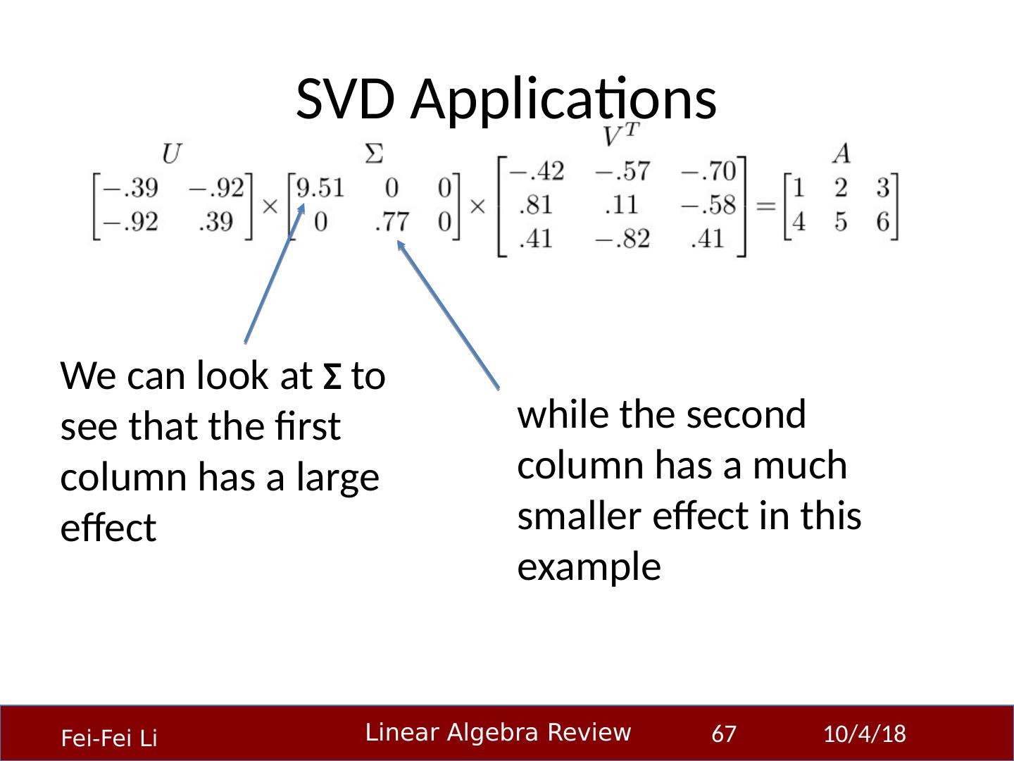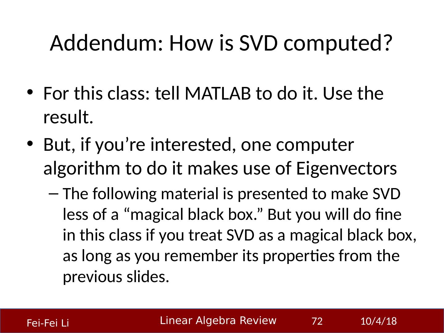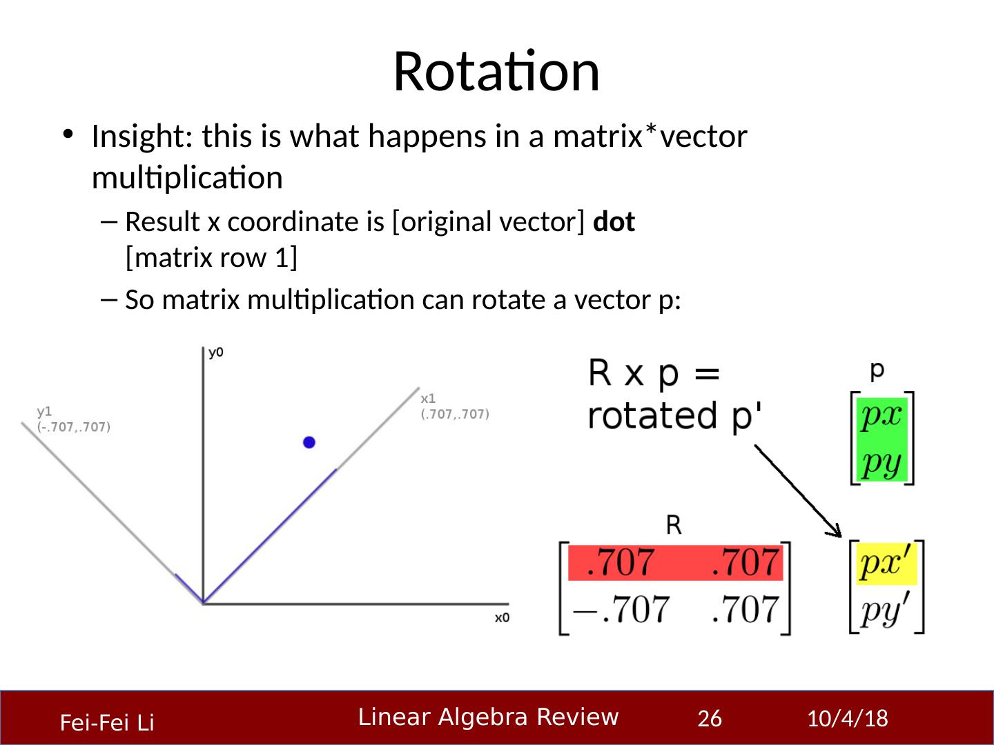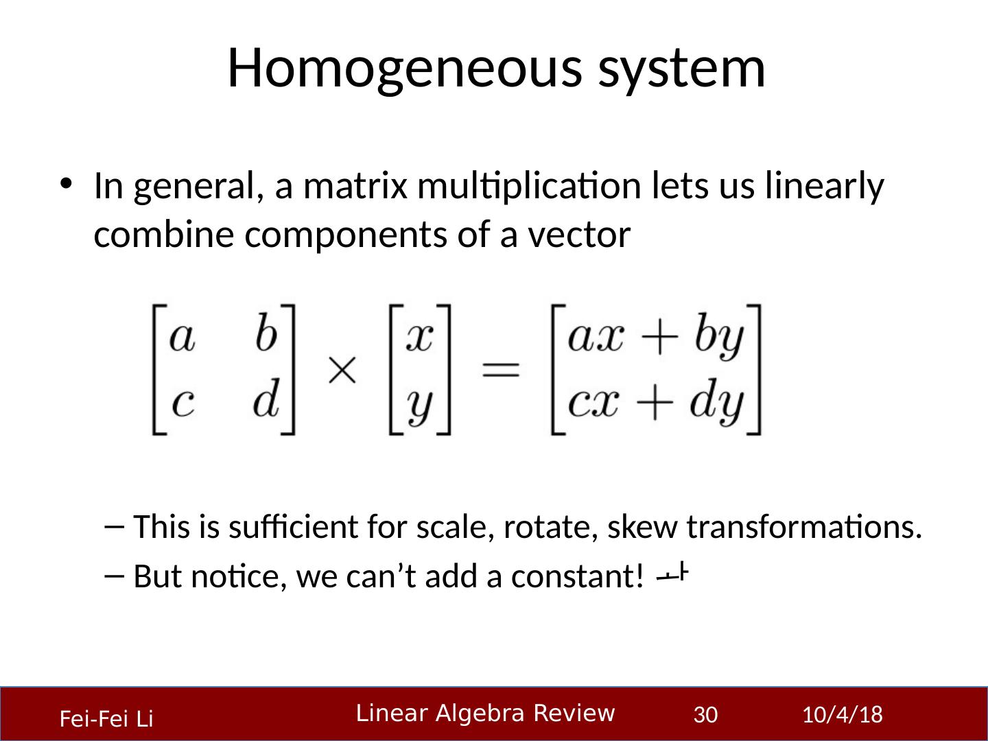 1 .Linear Algebra Primer Professor Fei-Fei Li Stanford Vision Lab 23-Sep-14 1 Another, very in-depth linear algebra review from CS229 is available here: http:// cs229.stanford.edu/section/cs229-linalg.pdf And a video discussion of linear algebra from EE263 is here (lectures 3 and 4 ): http:// see.stanford.edu/see/lecturelist.aspx?coll=17005383-19c6-49ed-9497-2ba8bfcfe5f6