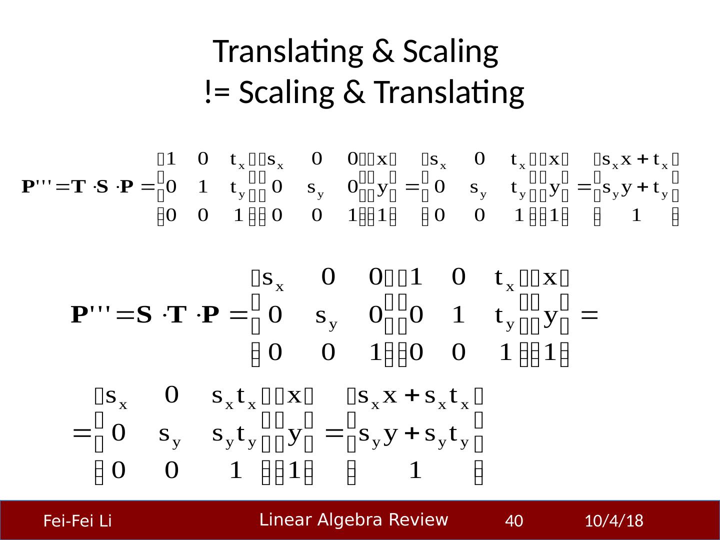 23 .Transformation Matrices can be used to transform vectors in useful ways, through multiplication : x’= Ax Simplest is scaling: (Verify to yourself that the matrix multiplication works out this way) 23-Sep-14 23