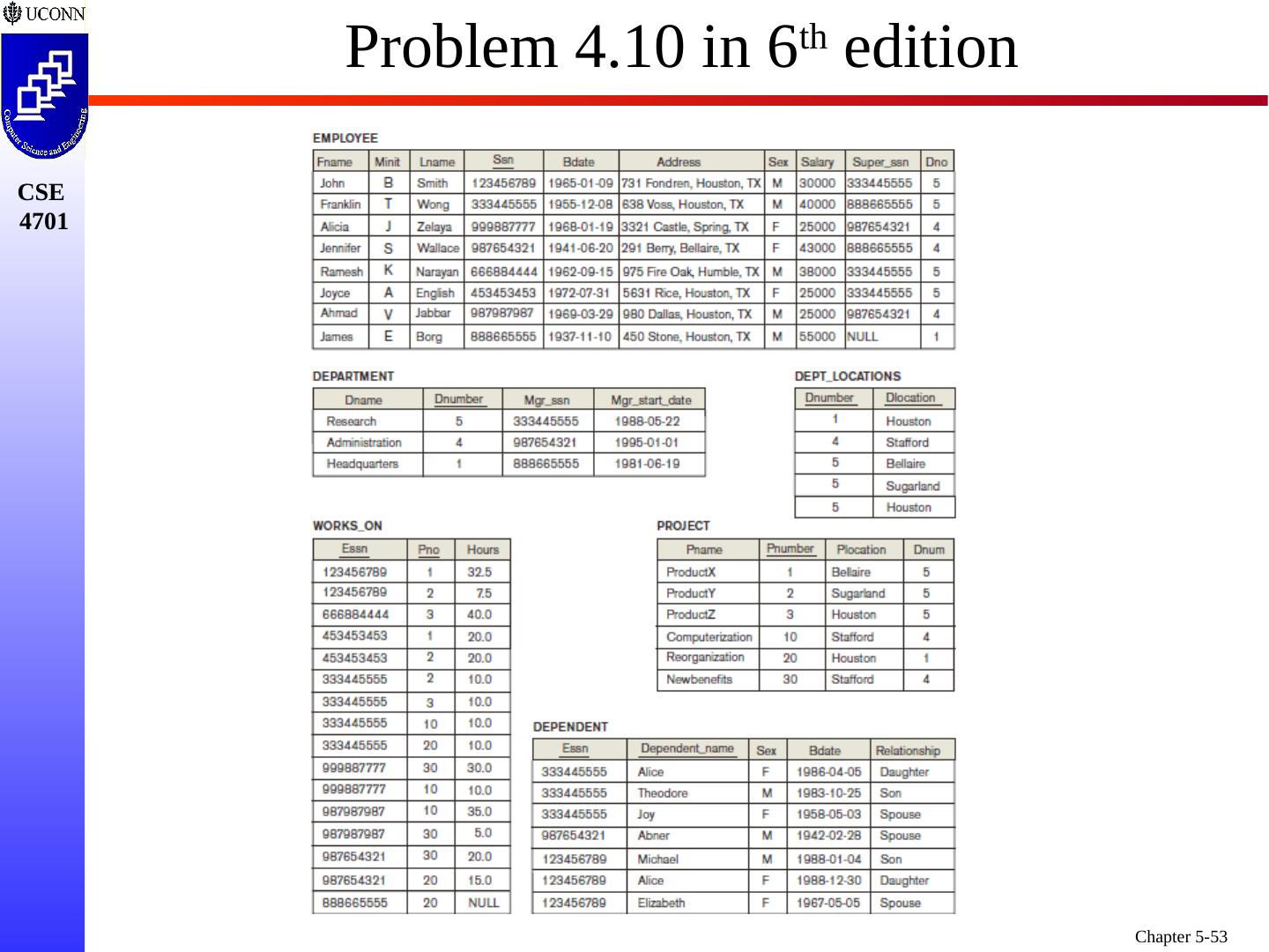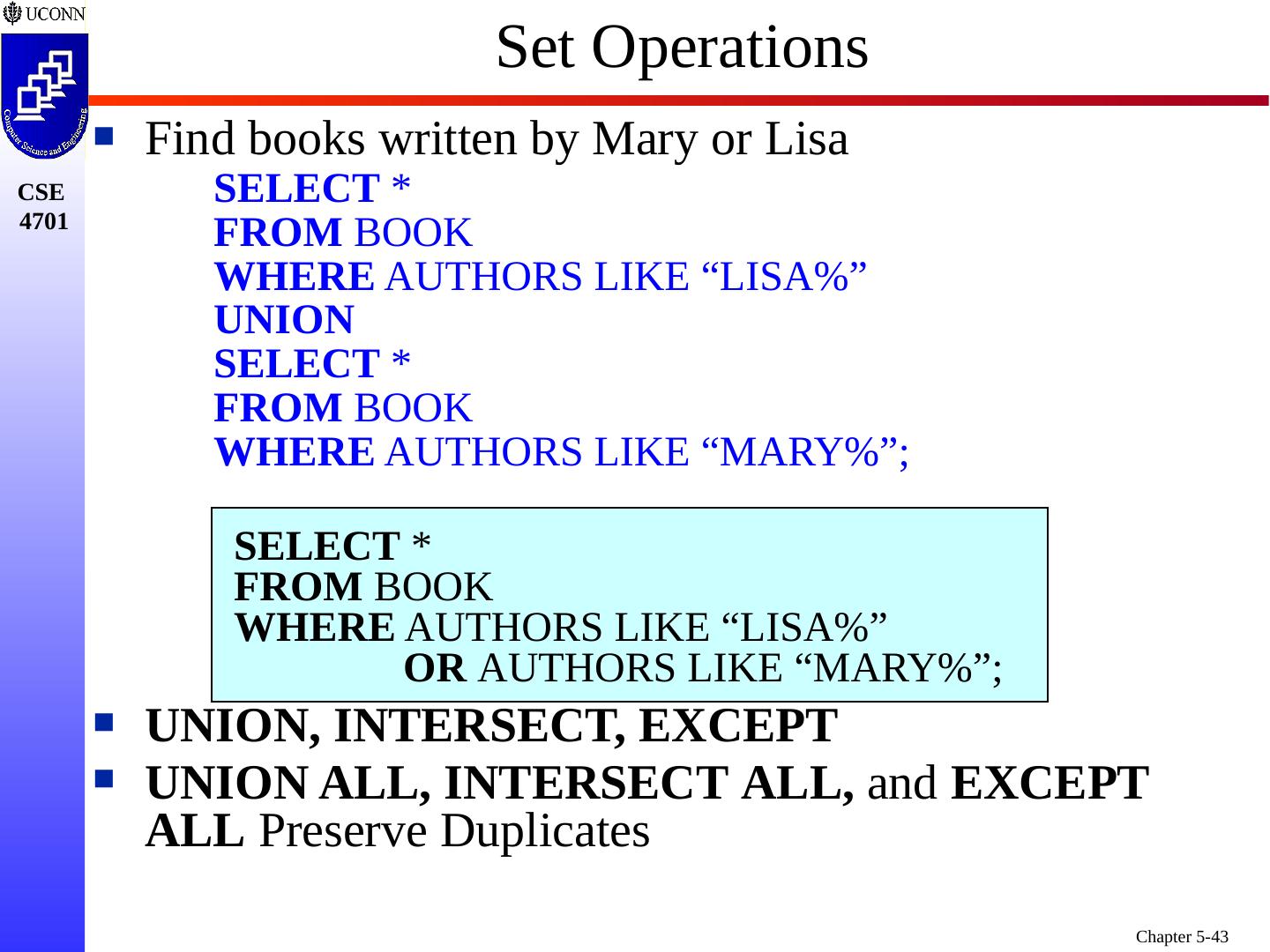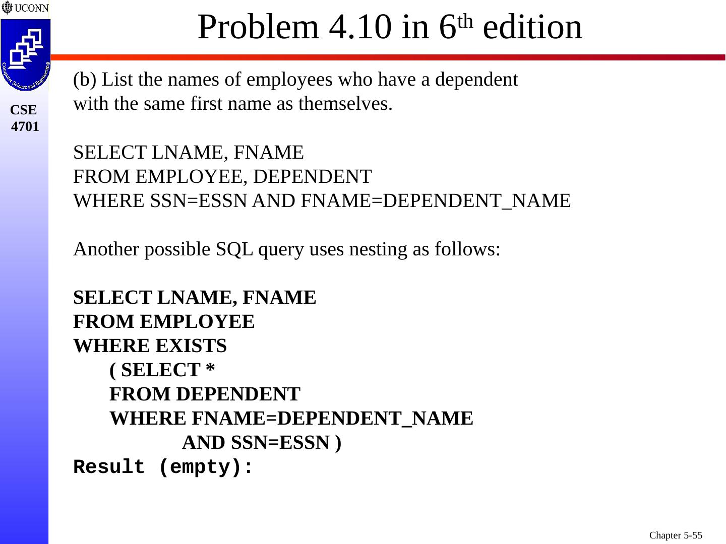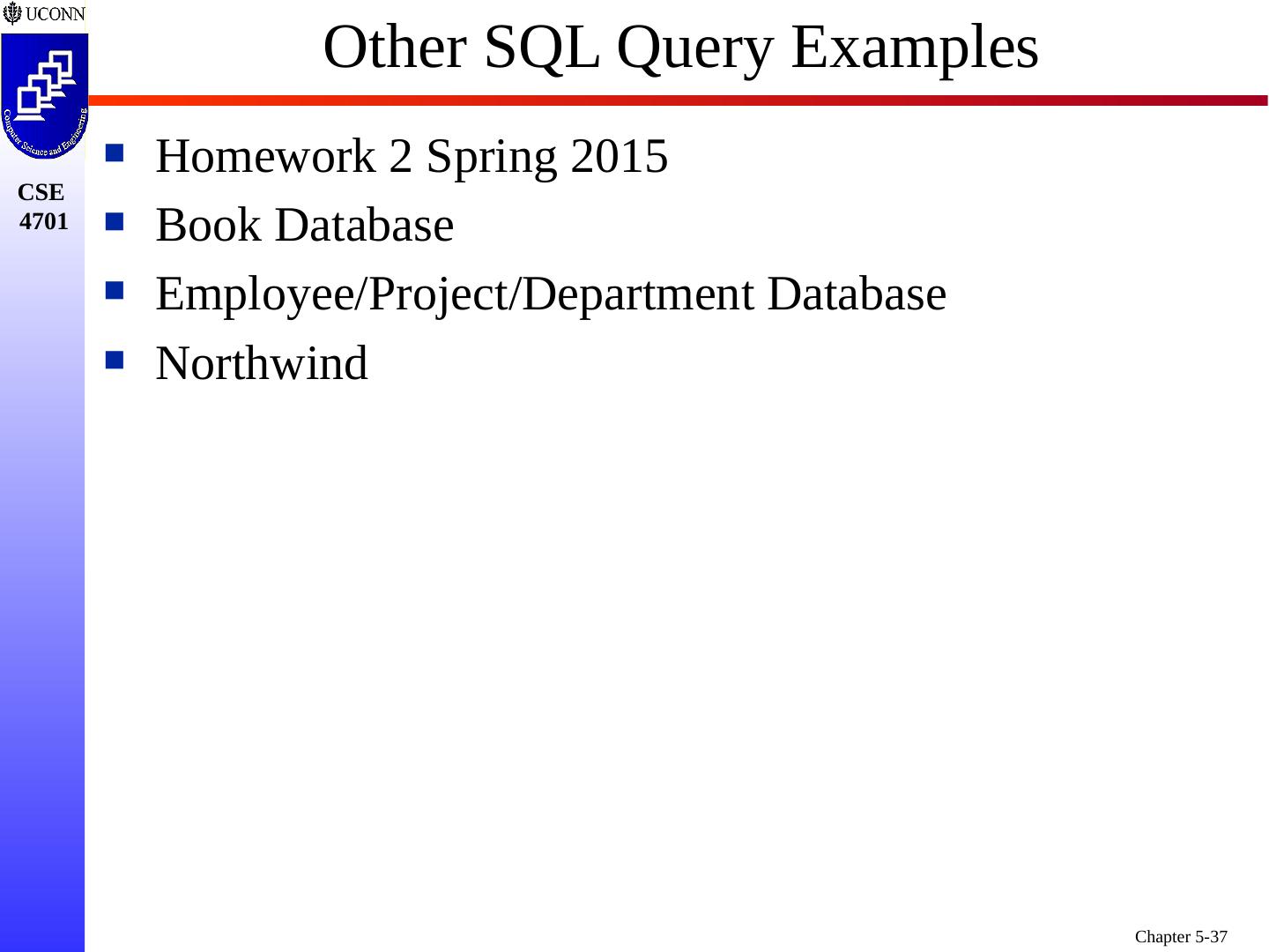 1 .Chapter 5 6e & 8 5e: Complex SQL Prof. Steven A. Demurjian, Sr. Computer Science & Engineering Department The University of Connecticut 191 Auditorium Road, Box U-155 Storrs, CT 06269-3155 steve@engr.uconn.edu http://www.engr.uconn.edu/~steve (860) 486 - 4818 About one third of these slides are being used with the permission of Dr. Ling Lui, Associate Professor, College of Computing, Georgia Tech. About one-half of these slides have been adapted from the AWL web site for the textbook.