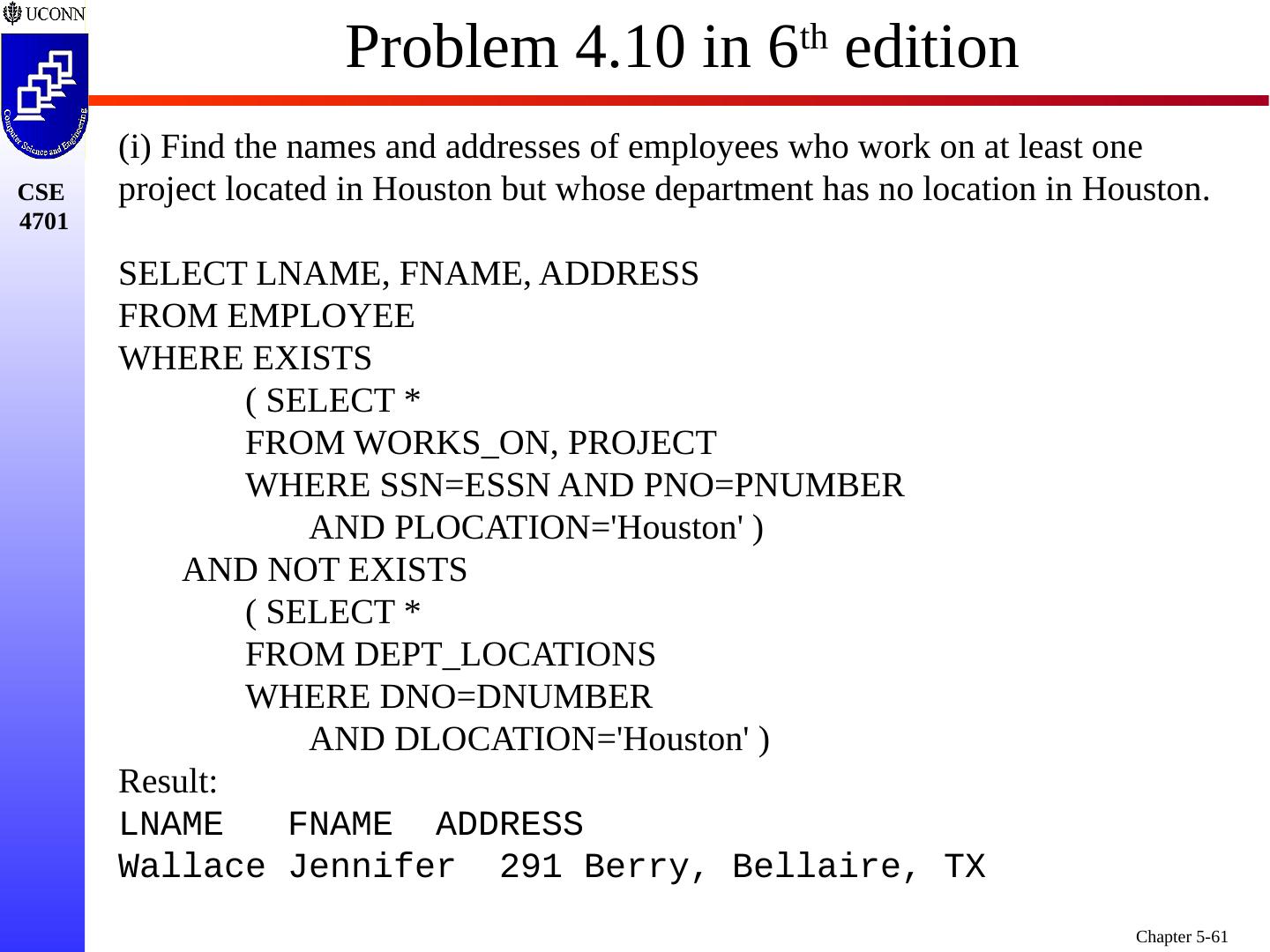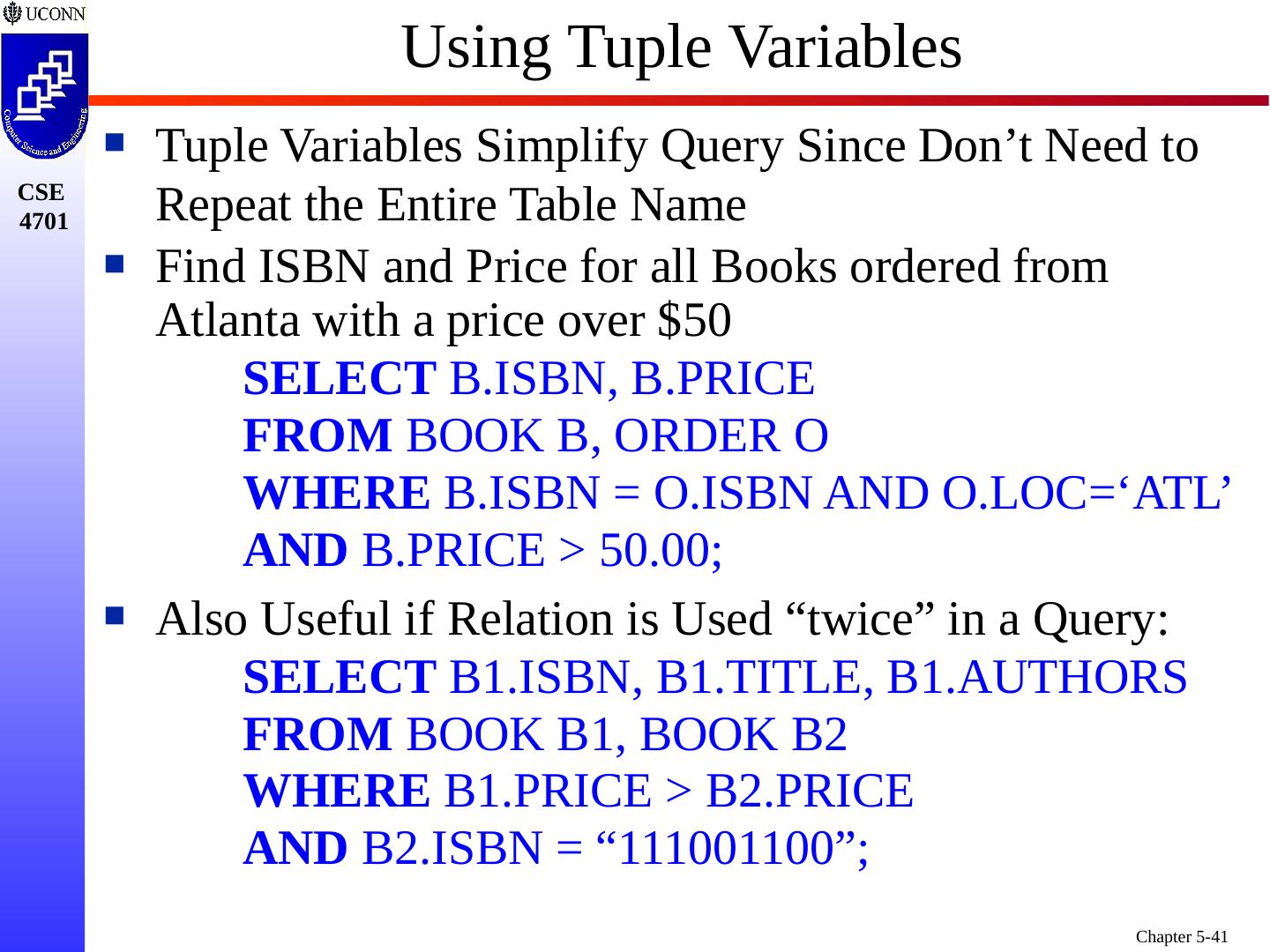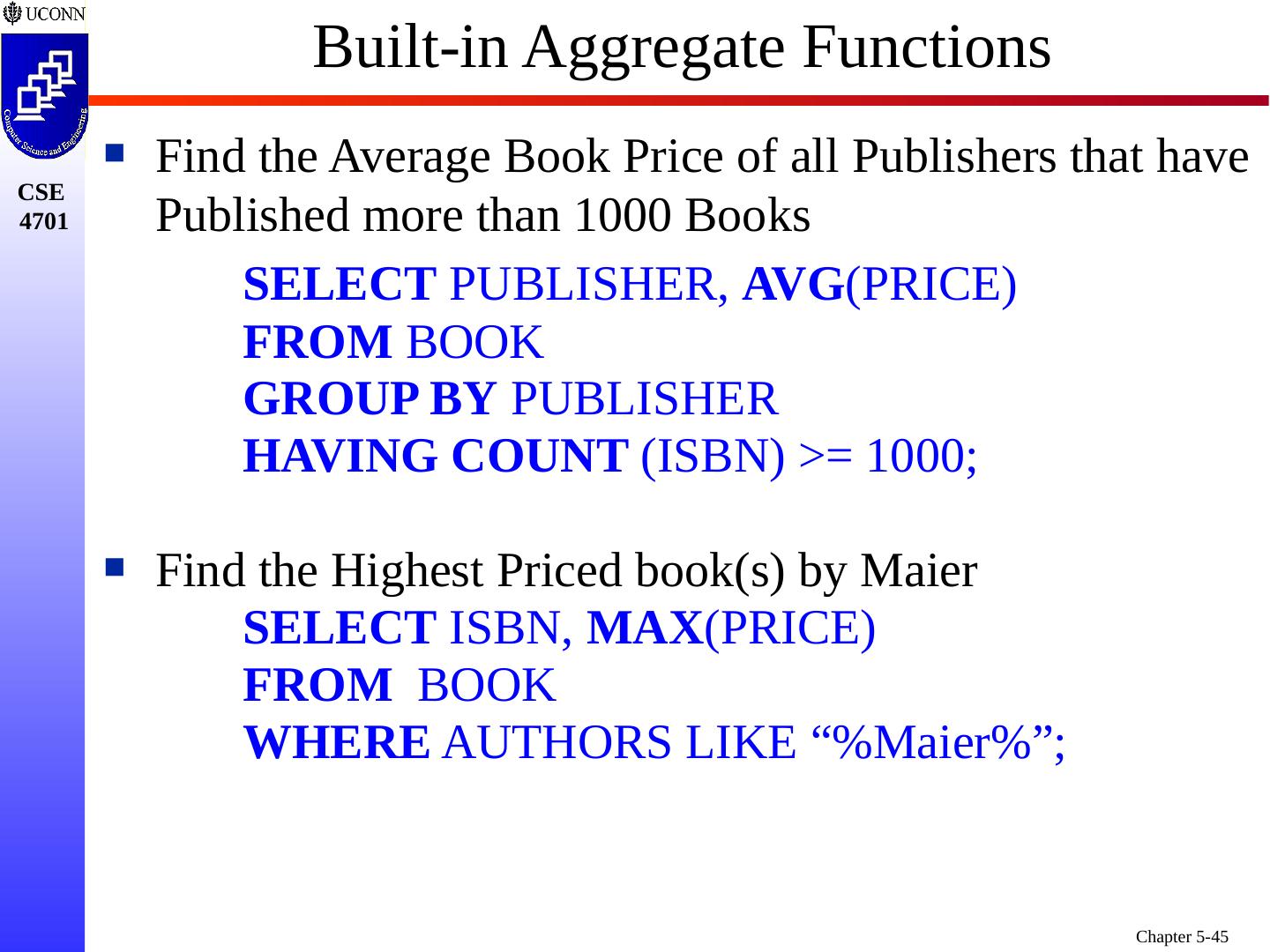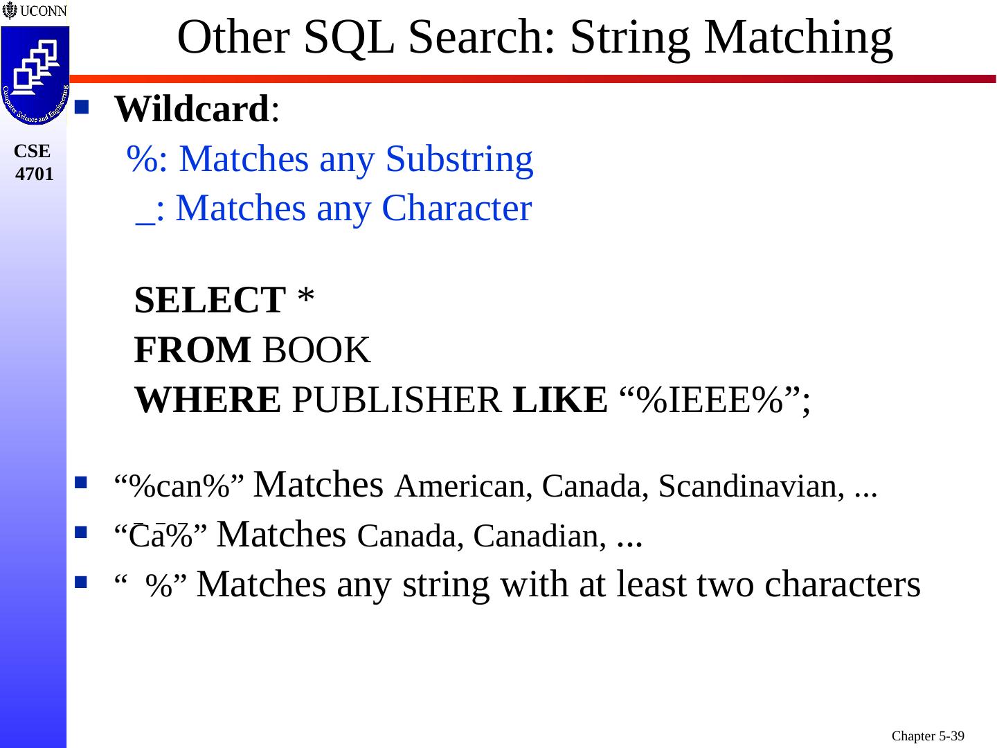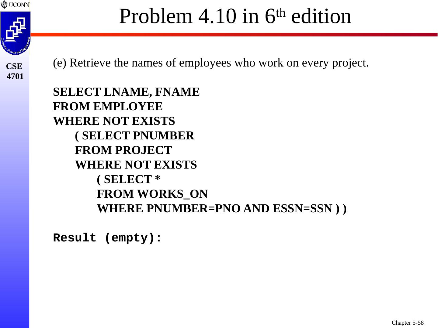 1 .Chapter 5 6e & 8 5e: Complex SQL Prof. Steven A. Demurjian, Sr. Computer Science & Engineering Department The University of Connecticut 191 Auditorium Road, Box U-155 Storrs, CT 06269-3155 steve@engr.uconn.edu http://www.engr.uconn.edu/~steve (860) 486 - 4818 About one third of these slides are being used with the permission of Dr. Ling Lui, Associate Professor, College of Computing, Georgia Tech. About one-half of these slides have been adapted from the AWL web site for the textbook.