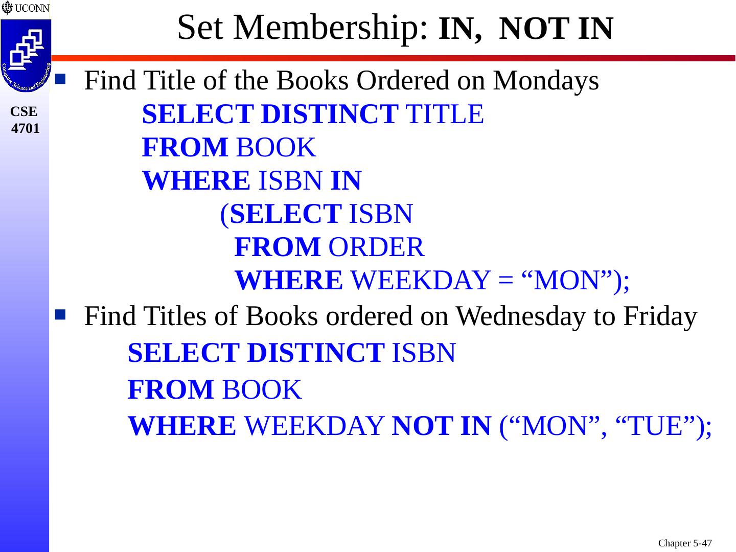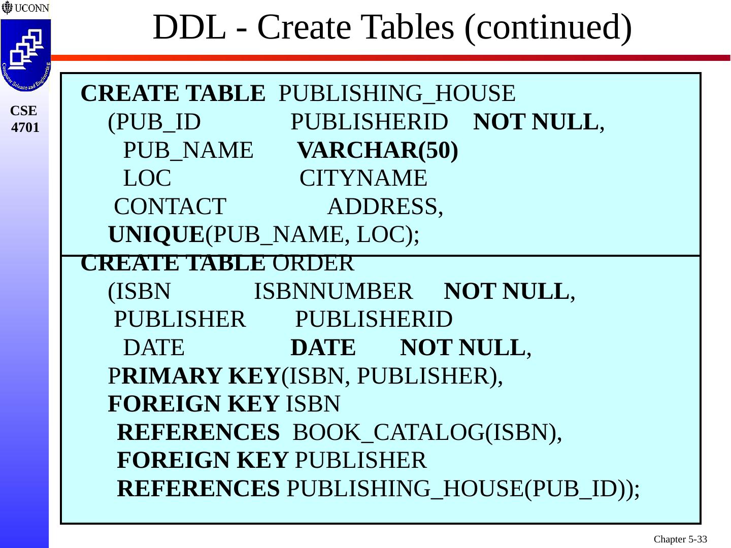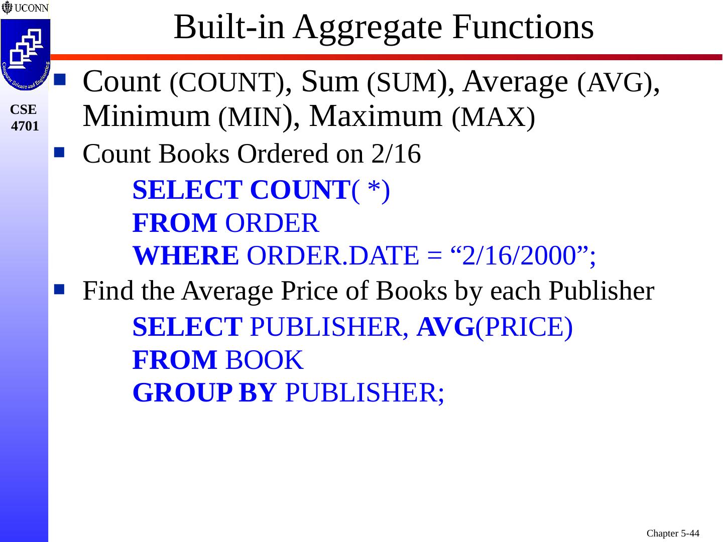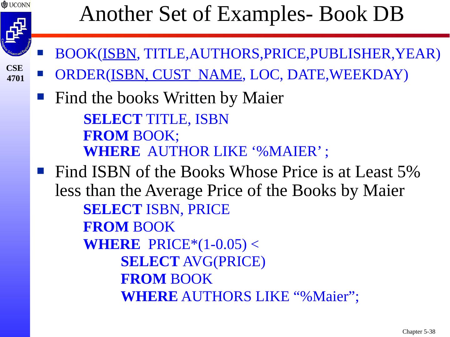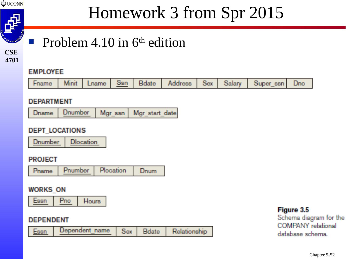 1 .Chapter 5 6e & 8 5e: Complex SQL Prof. Steven A. Demurjian, Sr. Computer Science & Engineering Department The University of Connecticut 191 Auditorium Road, Box U-155 Storrs, CT 06269-3155 steve@engr.uconn.edu http://www.engr.uconn.edu/~steve (860) 486 - 4818 About one third of these slides are being used with the permission of Dr. Ling Lui, Associate Professor, College of Computing, Georgia Tech. About one-half of these slides have been adapted from the AWL web site for the textbook.