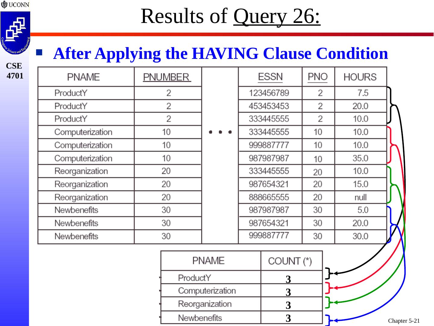 21 .Results of Query 26: After Applying the HAVING Clause Condition 3 3 3 3