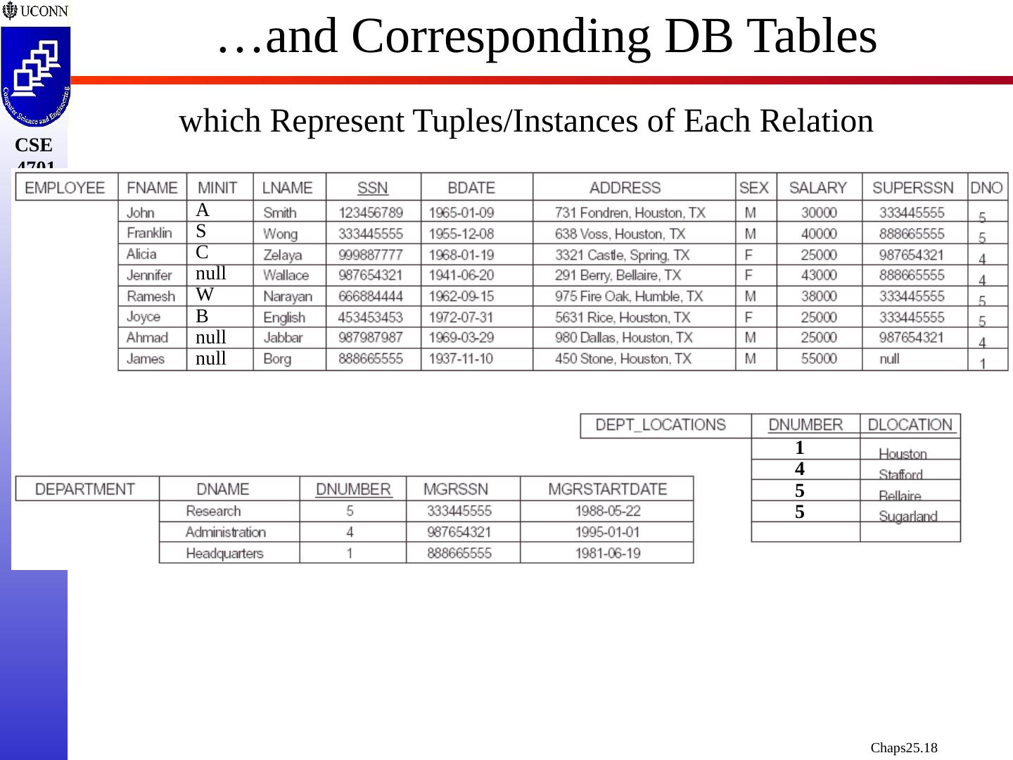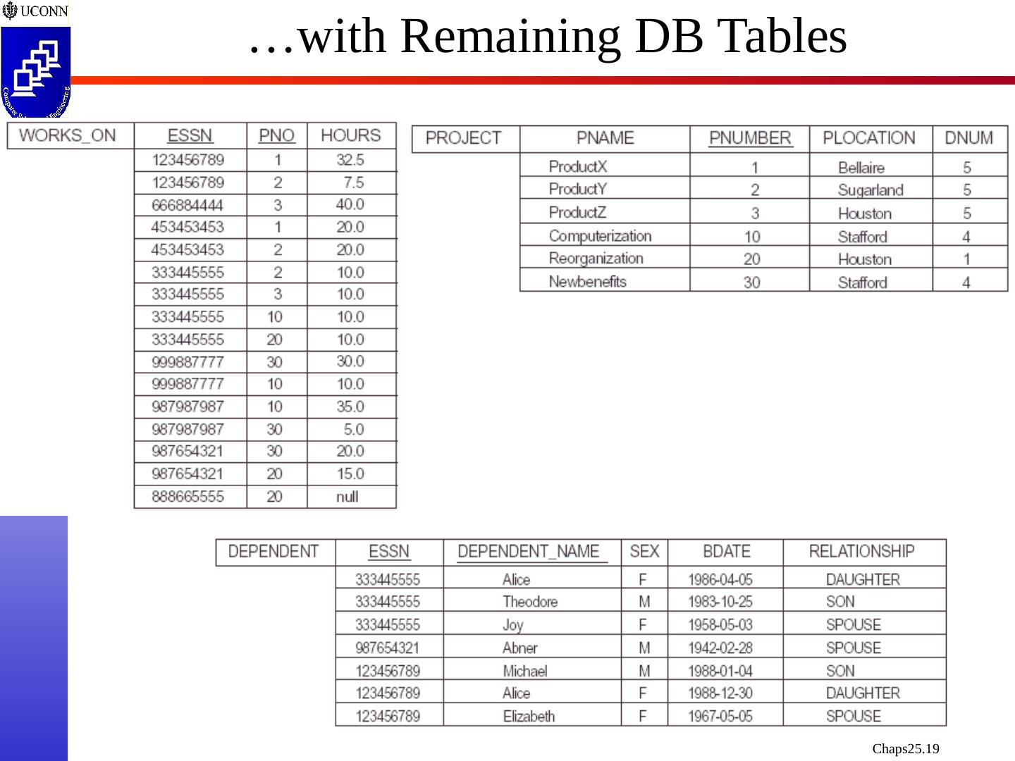 18 . …and Corresponding DB Tables which Represent Tuples/Instances of Each Relation 1 4 5 5 A S C null W B null null