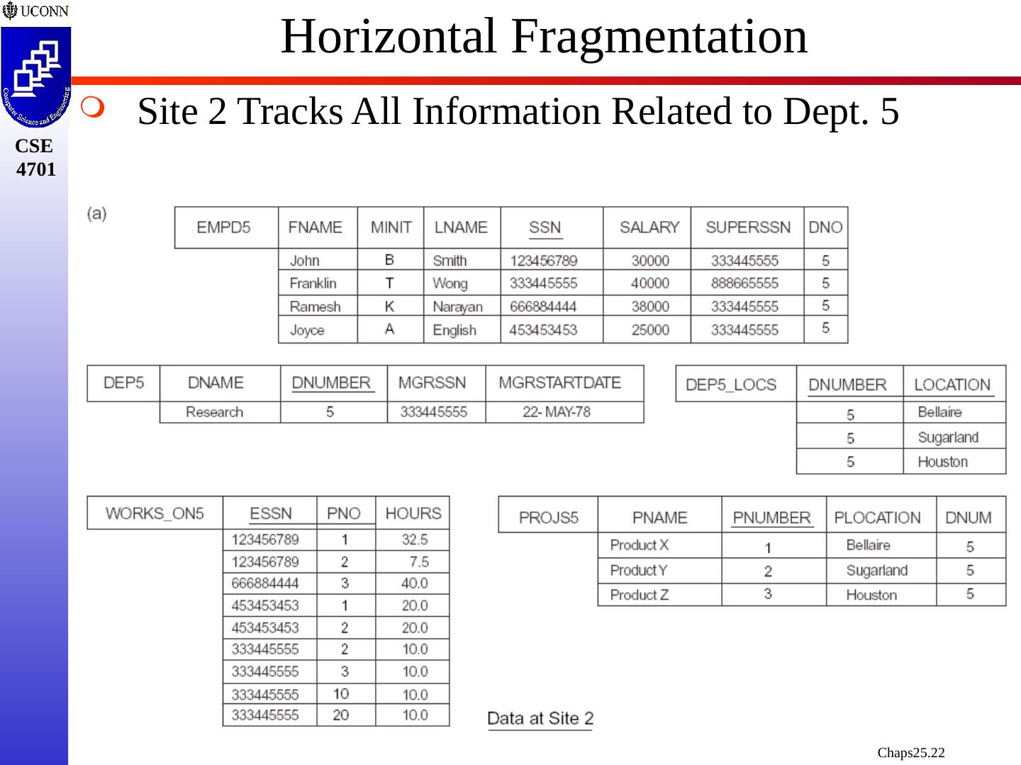 22 .Horizontal Fragmentation Site 2 Tracks All Information Related to Dept. 5