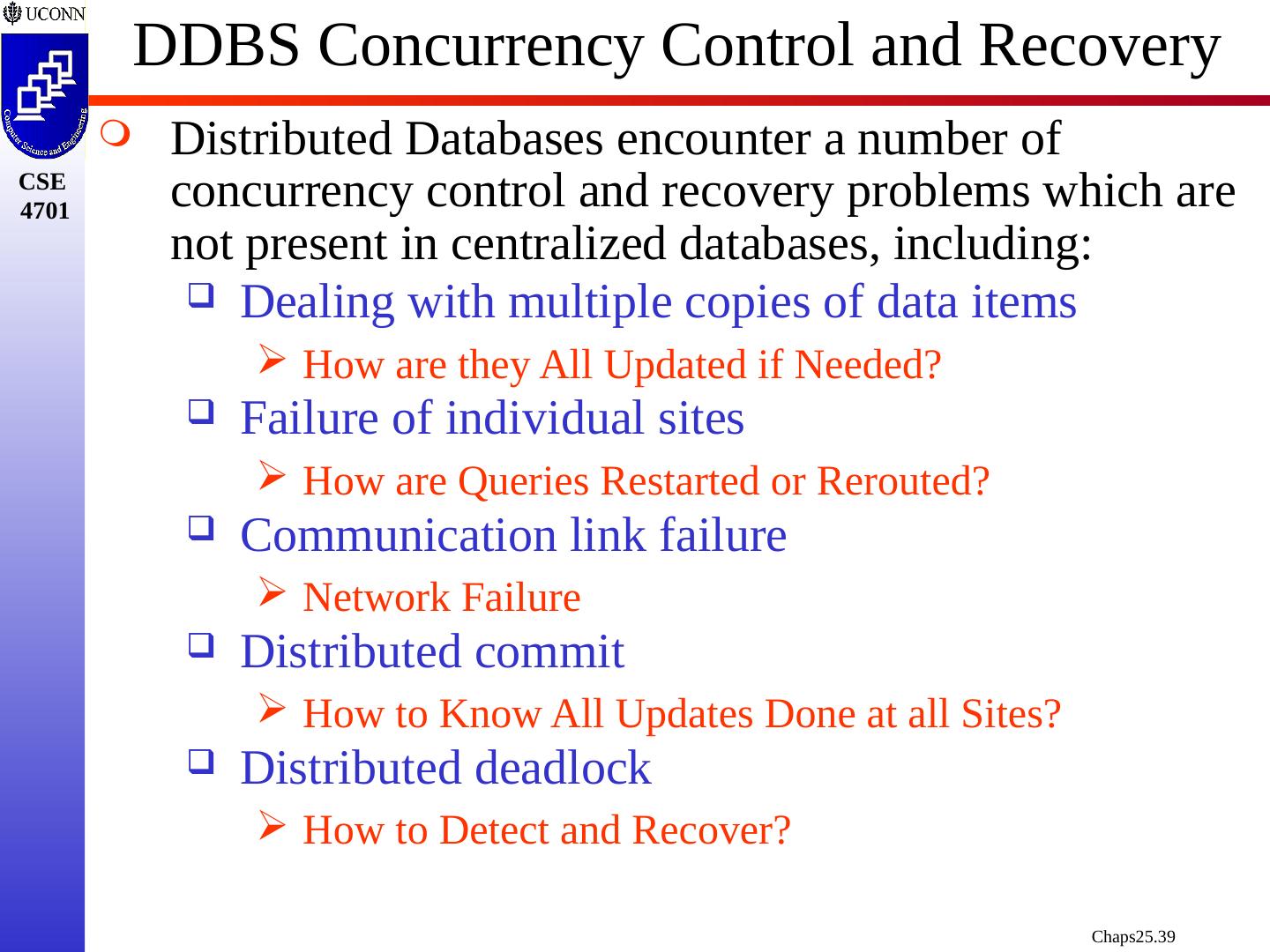 1 .Chapter 25, 6e - 24, 5e Distributed Databases Prof. Steven A. Demurjian , Sr. Computer Science & Engineering Department The University of Connecticut 191 Auditorium Road, Box U-155 Storrs, CT 06269-3155 steve@engr.uconn.edu http://www.engr.uconn.edu/~steve (860) 486 - 4818 A portion of these slides are being used with the permission of Dr. Ling Lui , Associate Professor, College of Computing, Georgia Tech. Remaining slides represent new material.