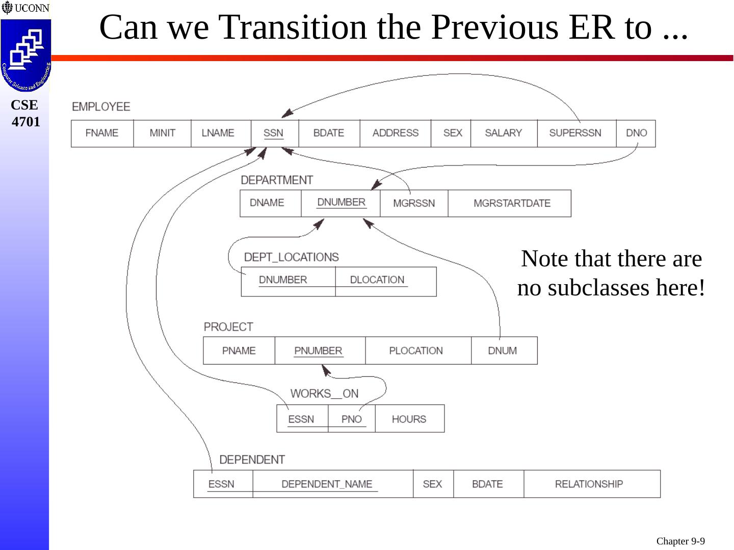 9 .Can we Transition the Previous ER to ... Note that there are no subclasses here!