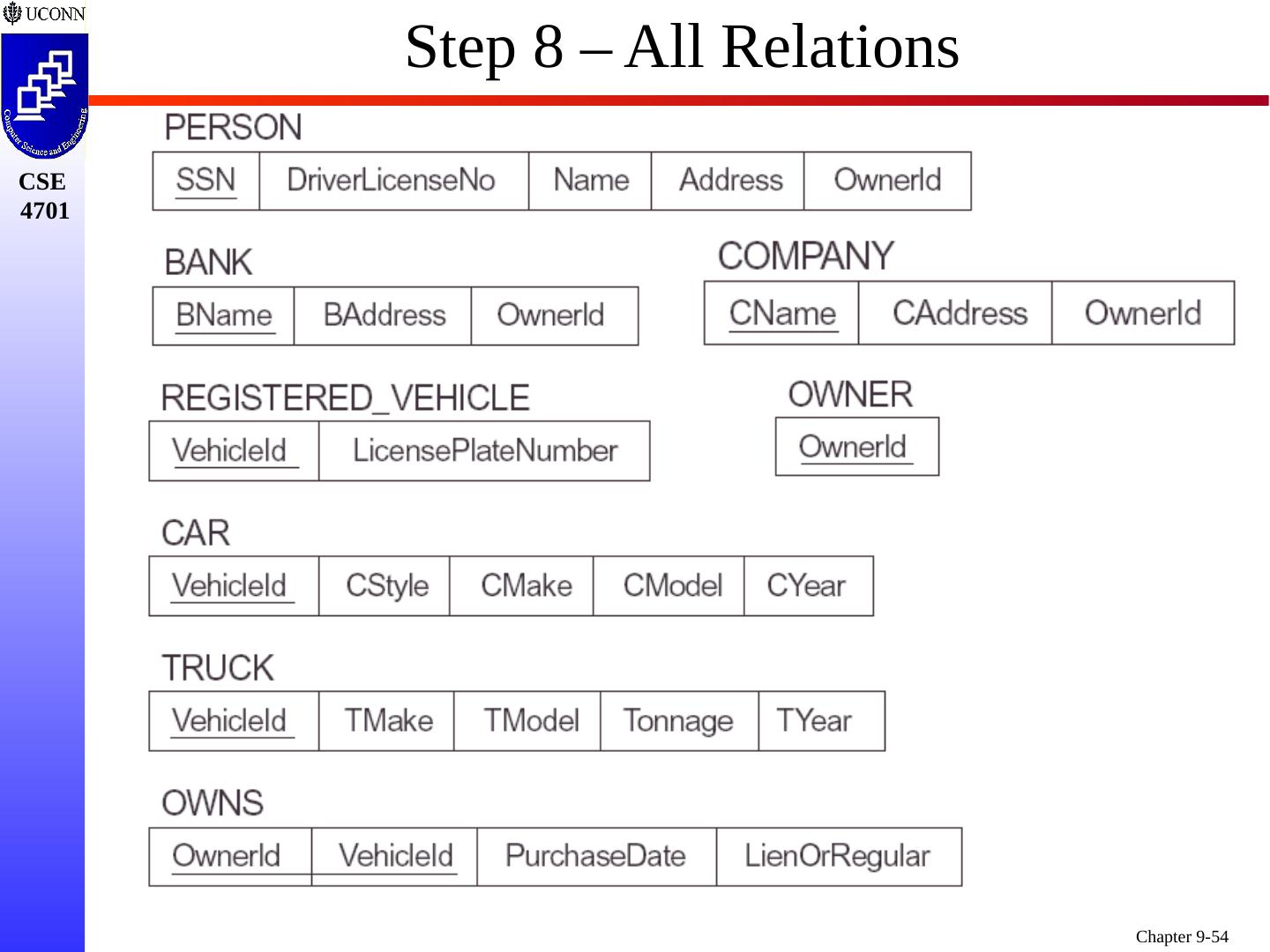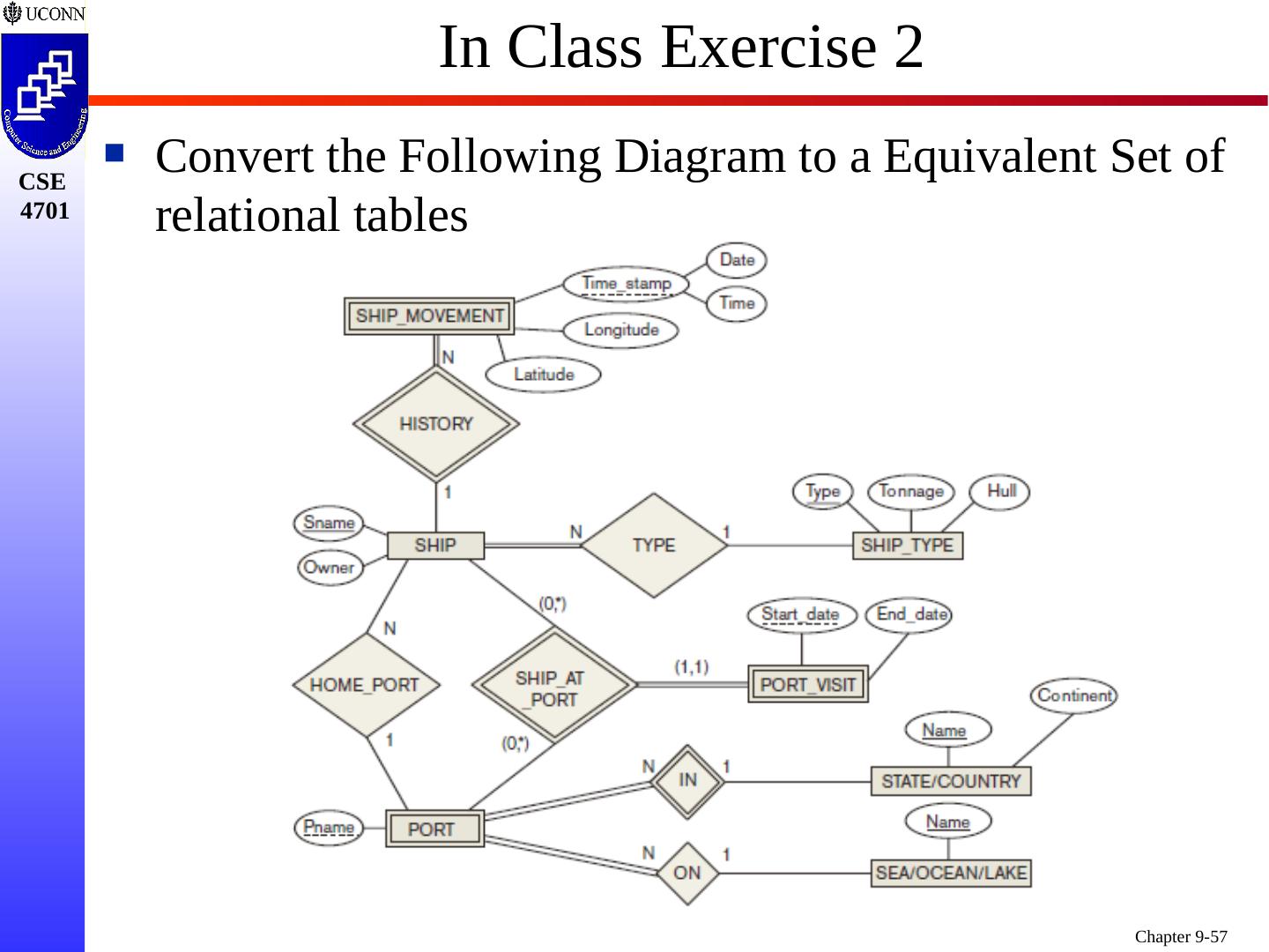 1 .Chapter 9 (6/5e ): ER to Relational Transformation Prof. Steven A. Demurjian, Sr. Computer Science & Engineering Department The University of Connecticut 191 Auditorium Road, Box U-155 Storrs, CT 06269-3155 steve@engr.uconn.edu http://www.engr.uconn.edu/~steve (860) 486 - 4818 The Majority of these slides are being used with the permission of Dr. Ling Lui, Associate Professor, College of Computing, Georgia Tech. Other slides (figures) have been adapted from the AWL web site for the textbook.
