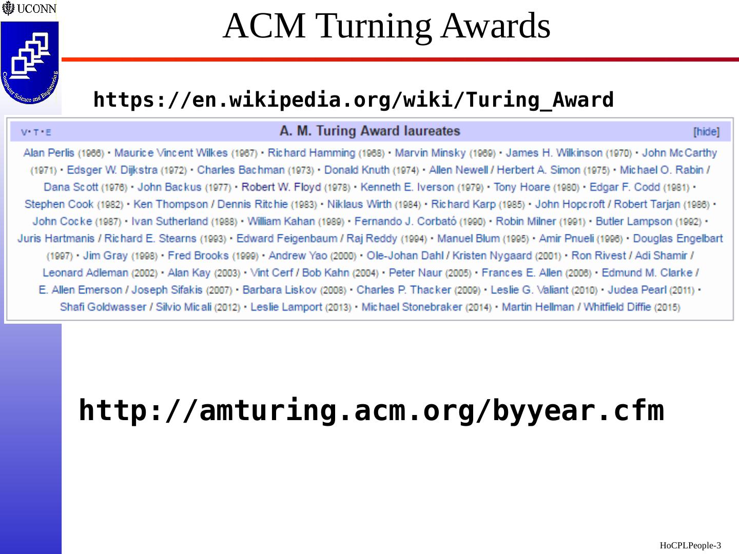 3 .ACM Turning Awards https://en.wikipedia.org/wiki/Turing_Award http://amturing.acm.org/byyear.cfm