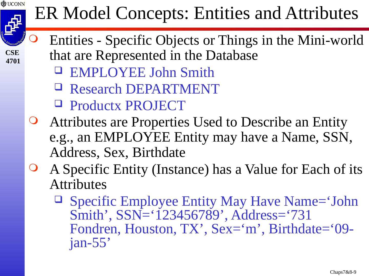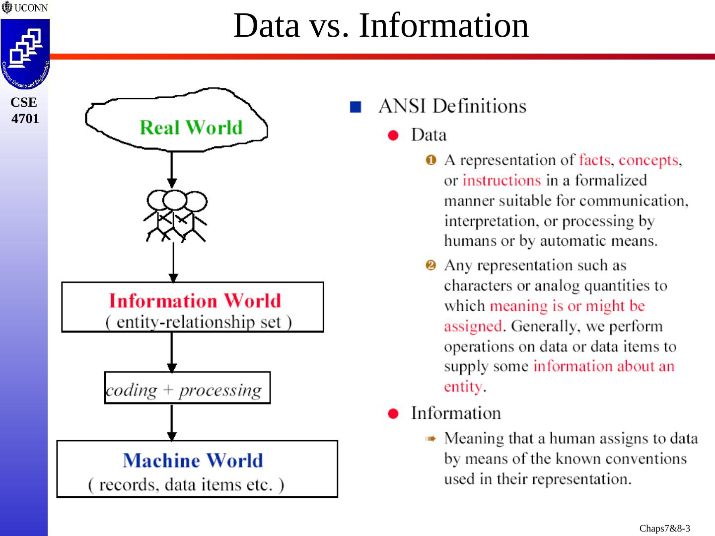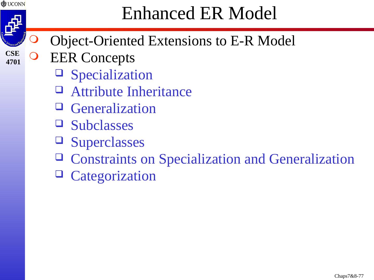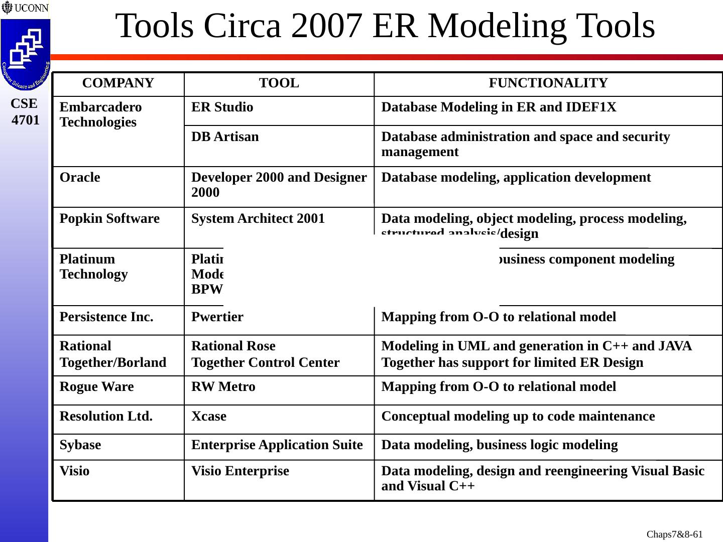 1 .Chapters 7 & 8 6e - 3 & 4 5e: The ER Model Prof. Steven A. Demurjian , Sr. Computer Science & Engineering Department The University of Connecticut 191 Auditorium Road, Box U-155 Storrs, CT 06269-3155 steve@engr.uconn.edu http://www.engr.uconn.edu/~steve (860) 486 - 4818 A large portion of these slides have been adapted from the AWL web site for the textbook. The remainder of these slides are being used with the permission of Dr. Ling Lui, Associate Professor, College of Computing, Georgia Tech.