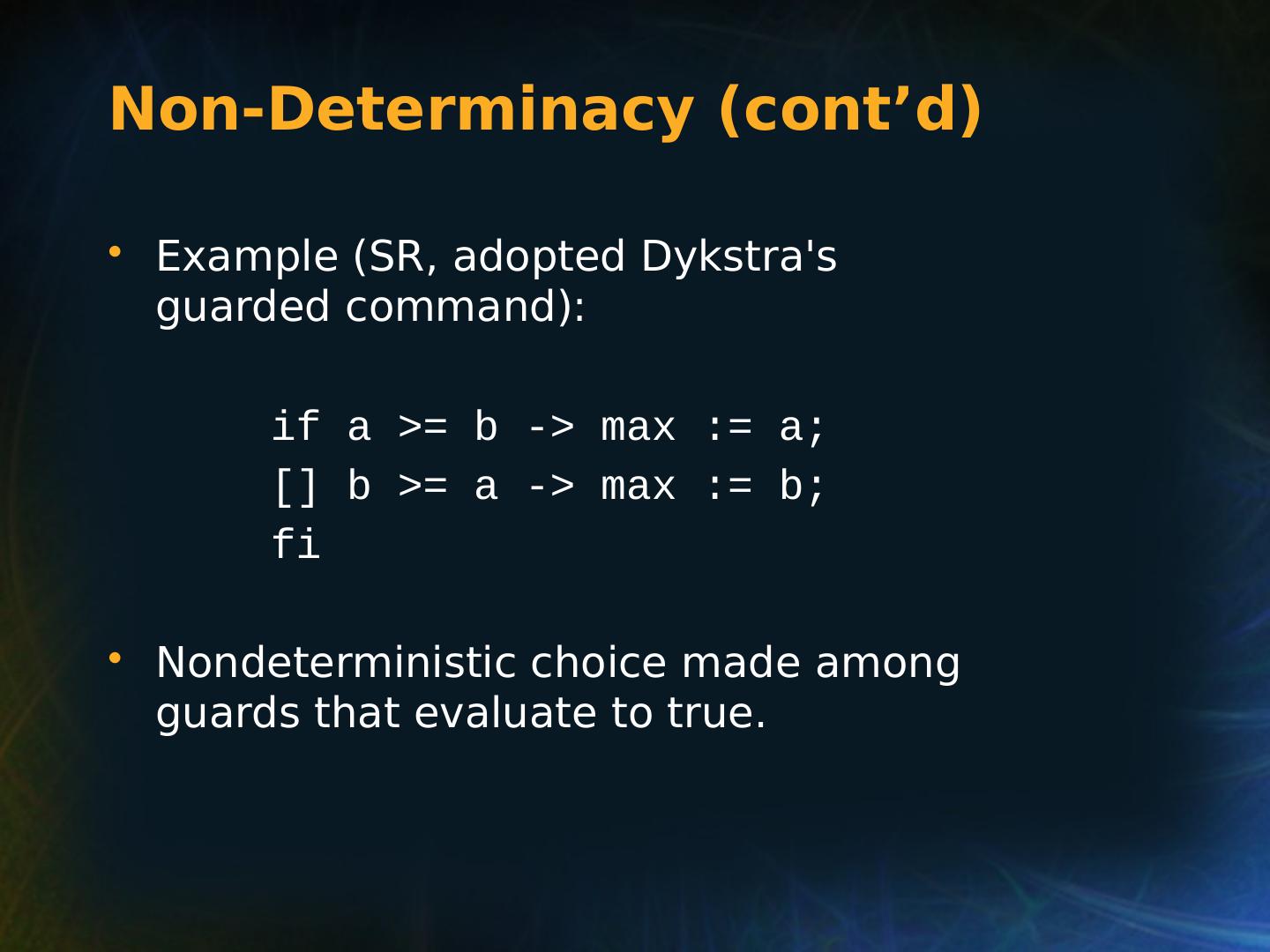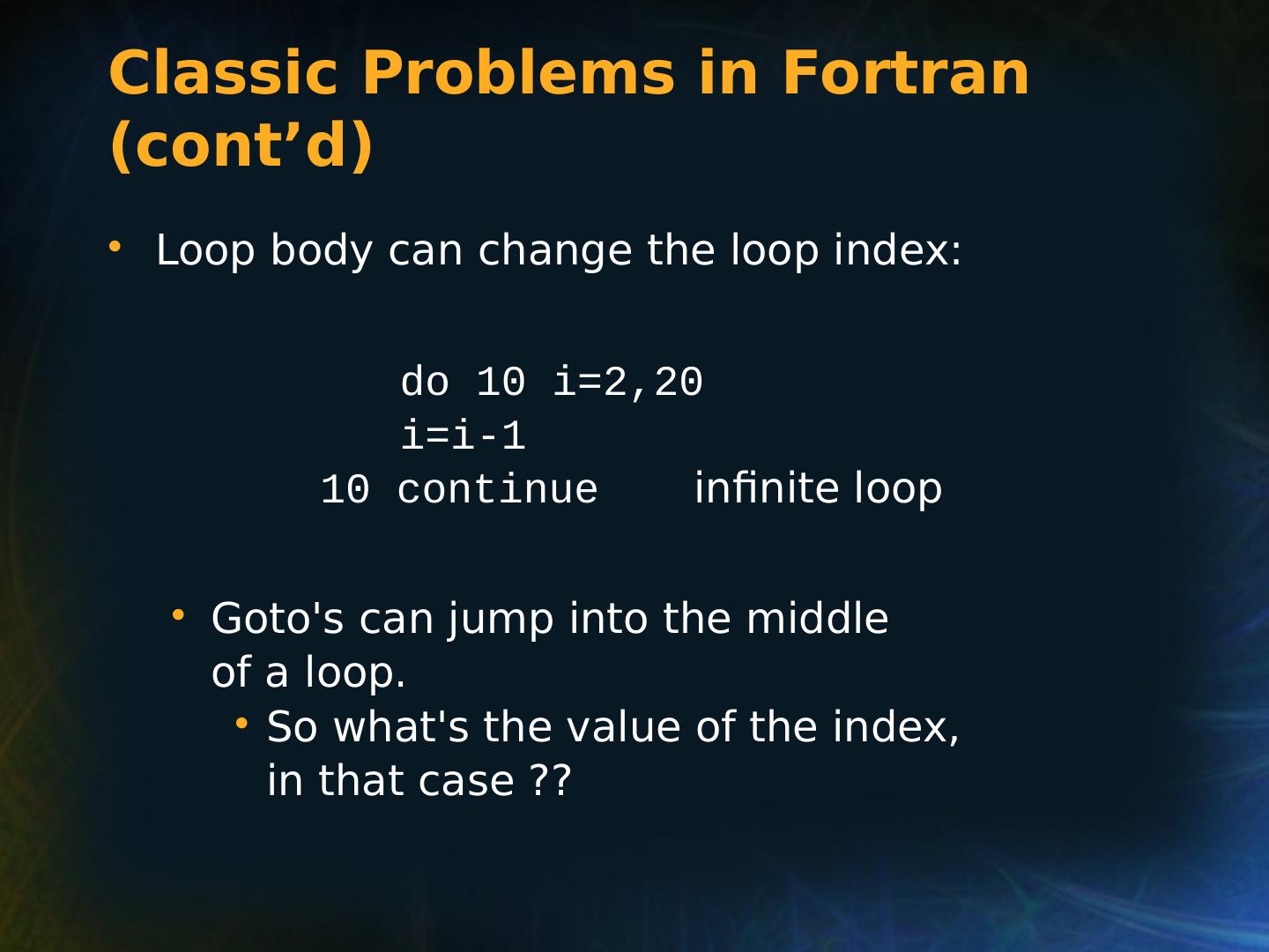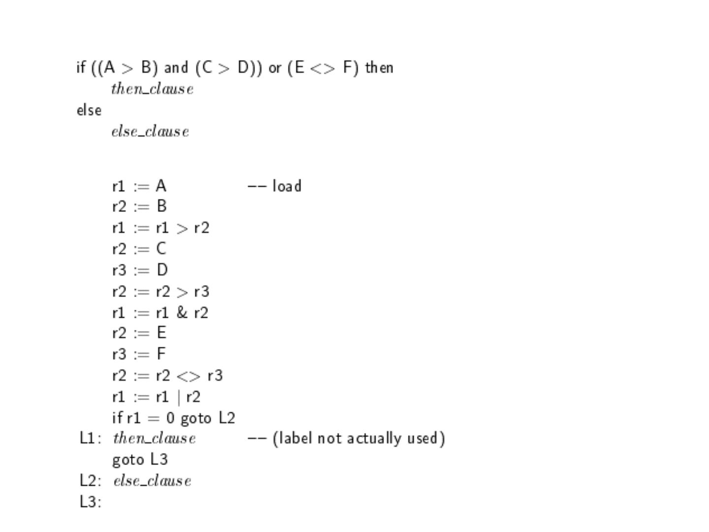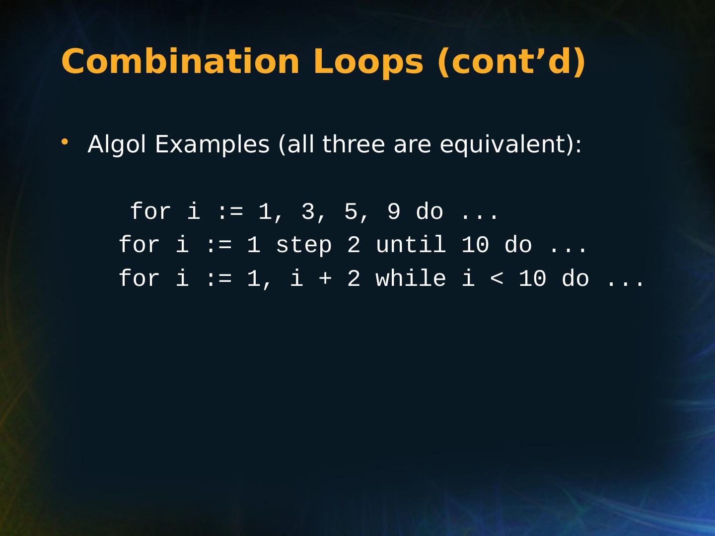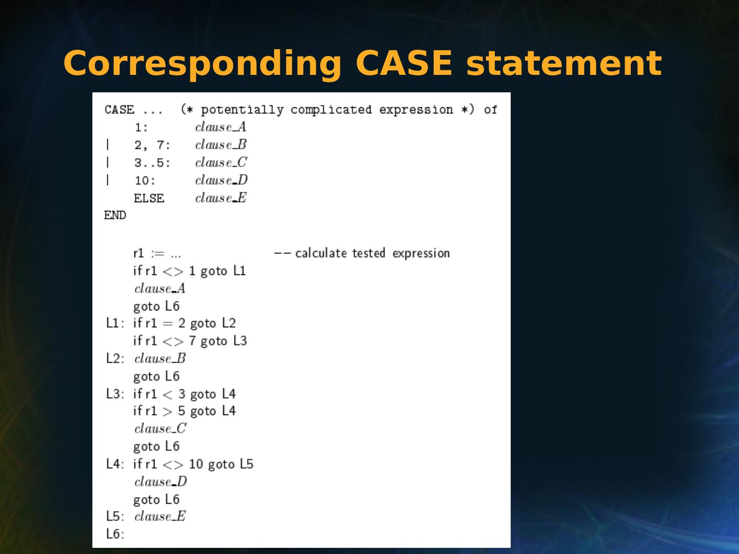 8 .Selection Statements Very Early One-Way Examples FORTRAN IF: IF ( boolean_expr ) statement Limitation: C an select only a single statement; to select more, a GOTO must be used, as in the following example IF (.NOT. condition) GOTO 20 ... ... 20 CONTINUE