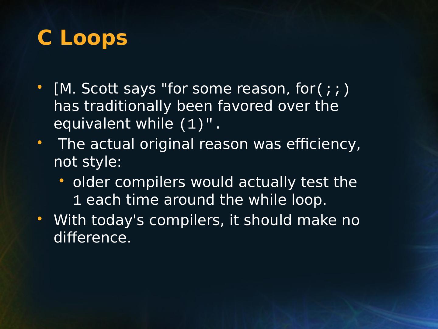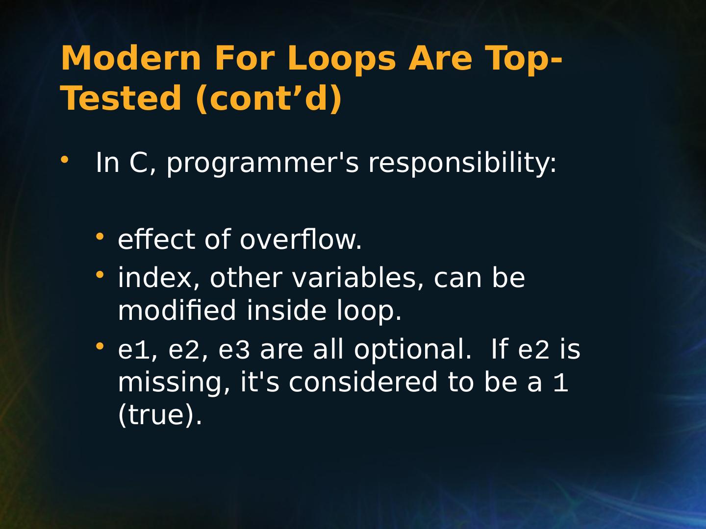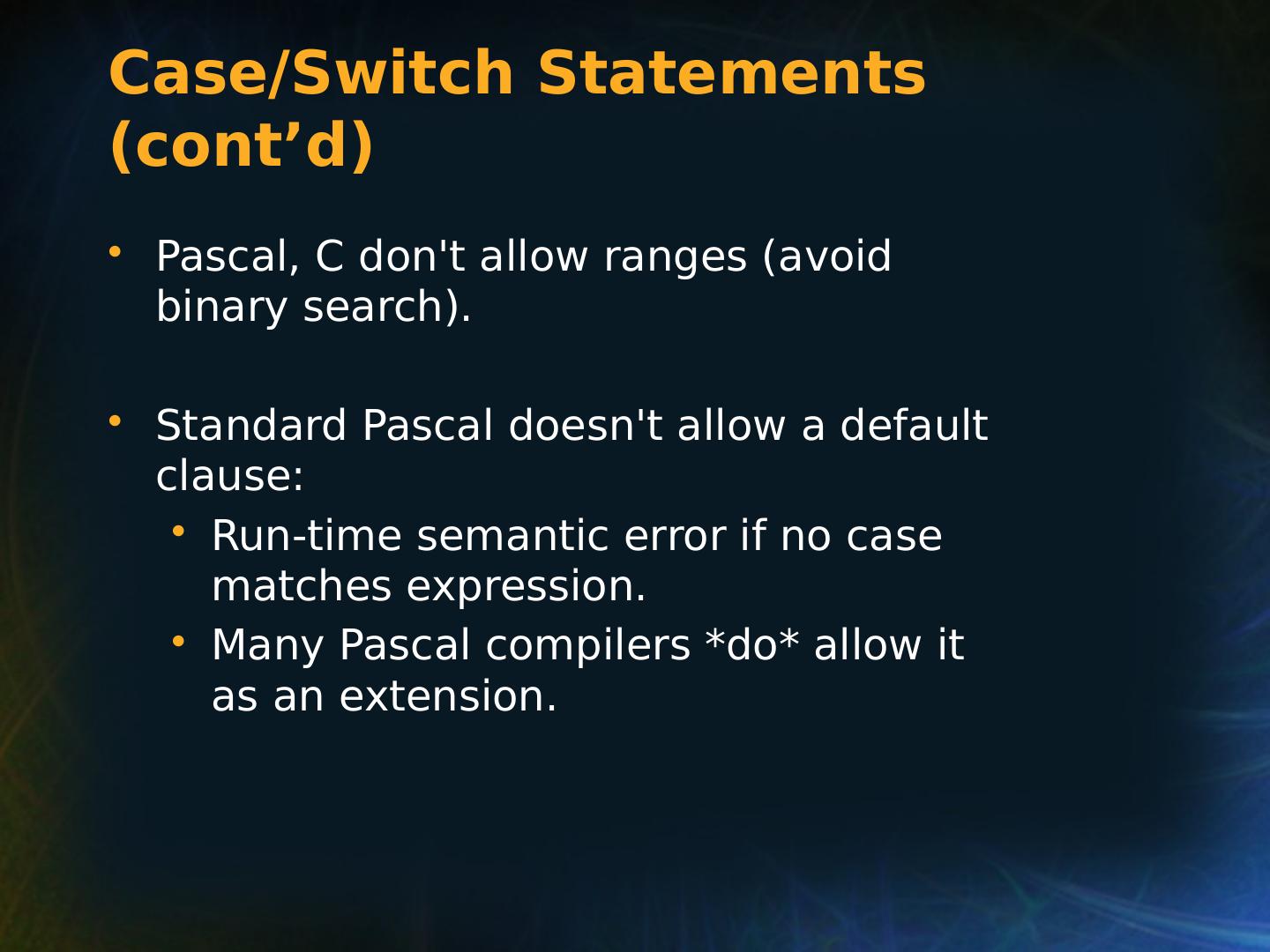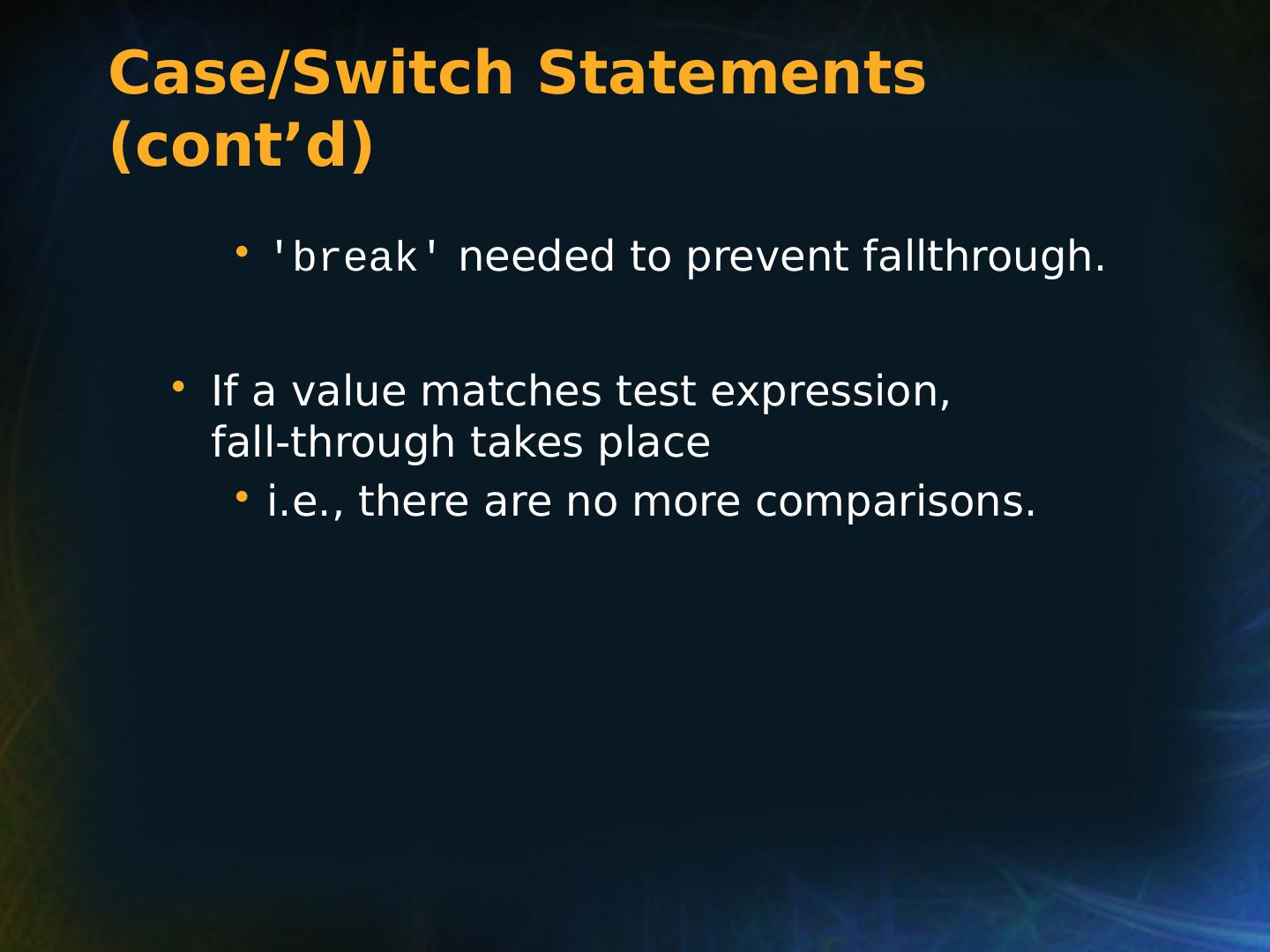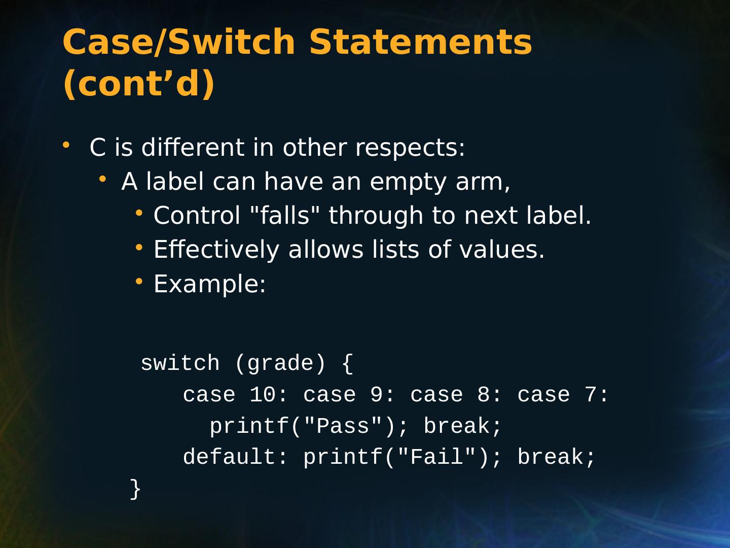21 .Selection Statements Multiple Selection Constructs C: switch (expression) { case const_expr_1: statement_1; … case const_expr_k: statement_k; [default: def_statement;] (optional) }