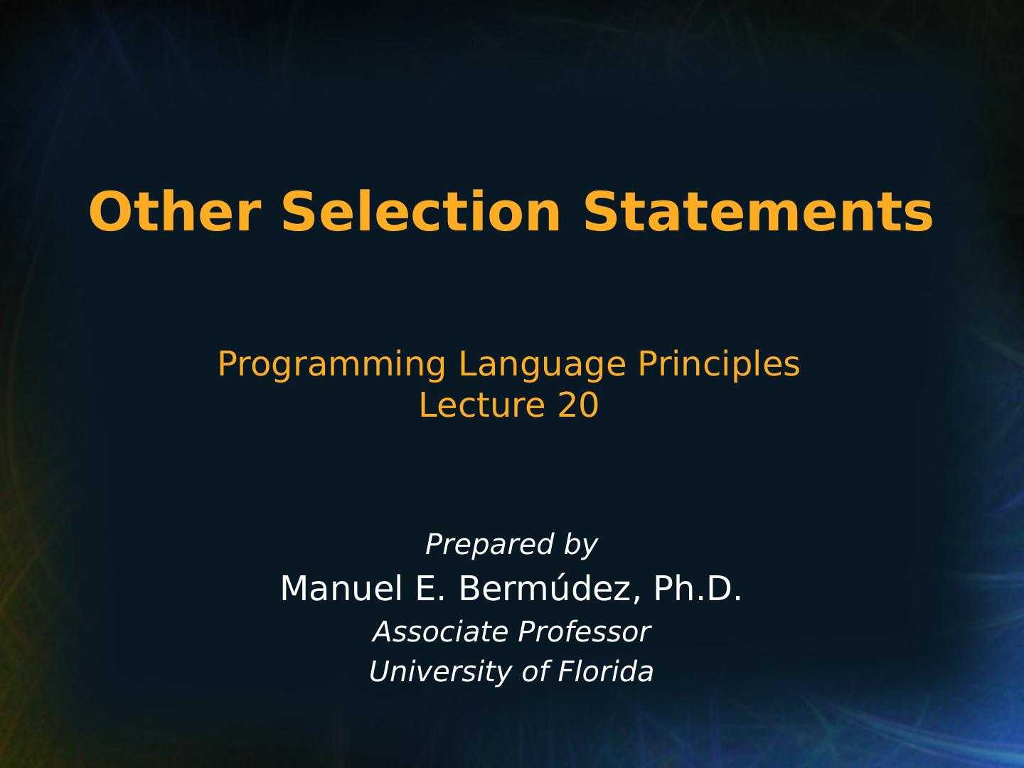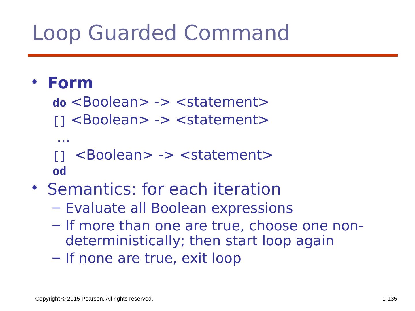 3 .Copyright © 2015 Pearson. All rights reserved. 1- 3 Chapter 8 Topics Introduction Selection Statements Iterative Statements Unconditional Branching Other Selection Statements https://www.cise.ufl.edu/class/cop5556sp16/Lecture_20.ppt Practical PL Level Iteration and Recursion https://www.cise.ufl.edu/class/cop5556sp16/Lecture_21.ppt Guarded Commands Conclusions