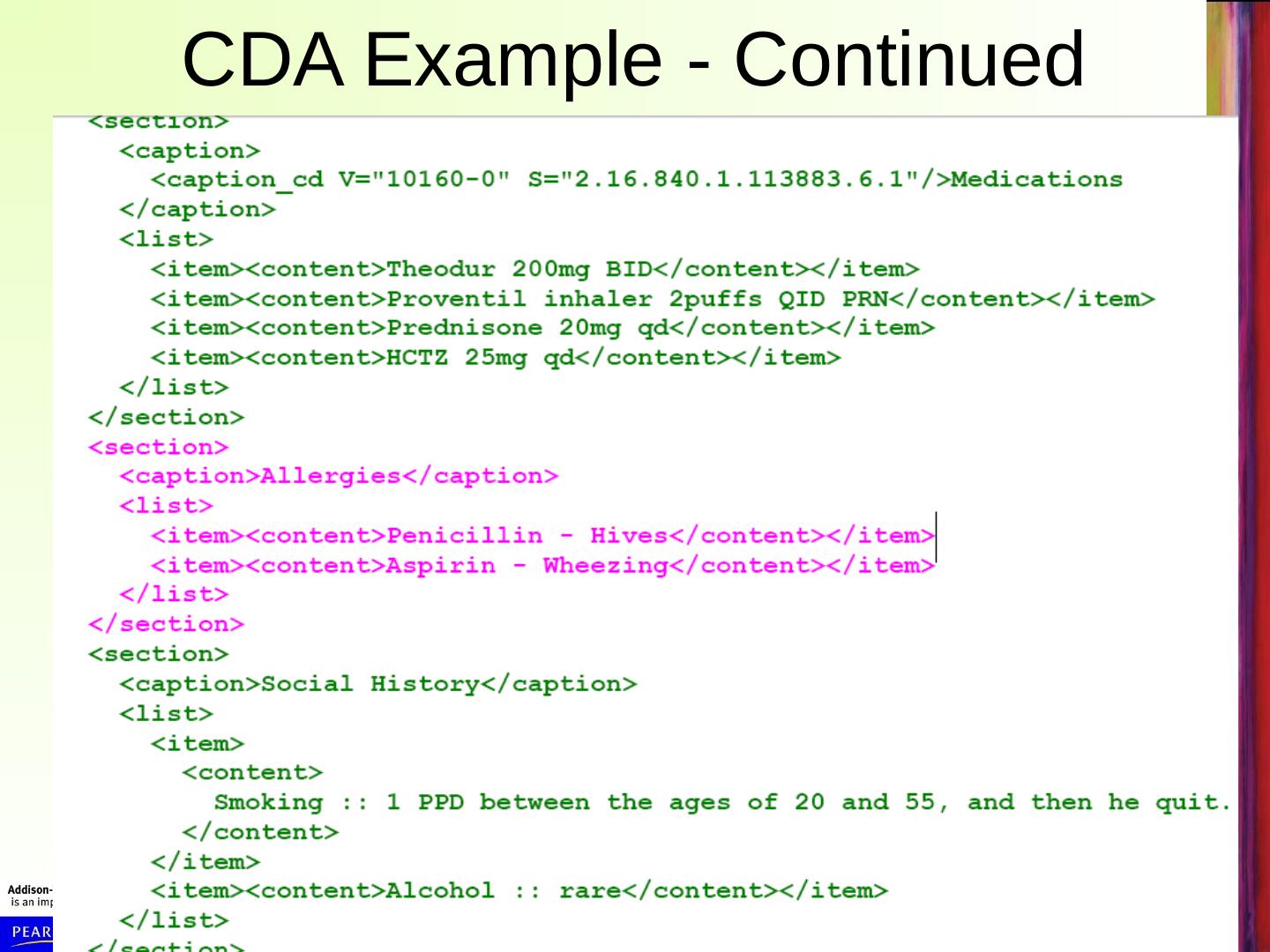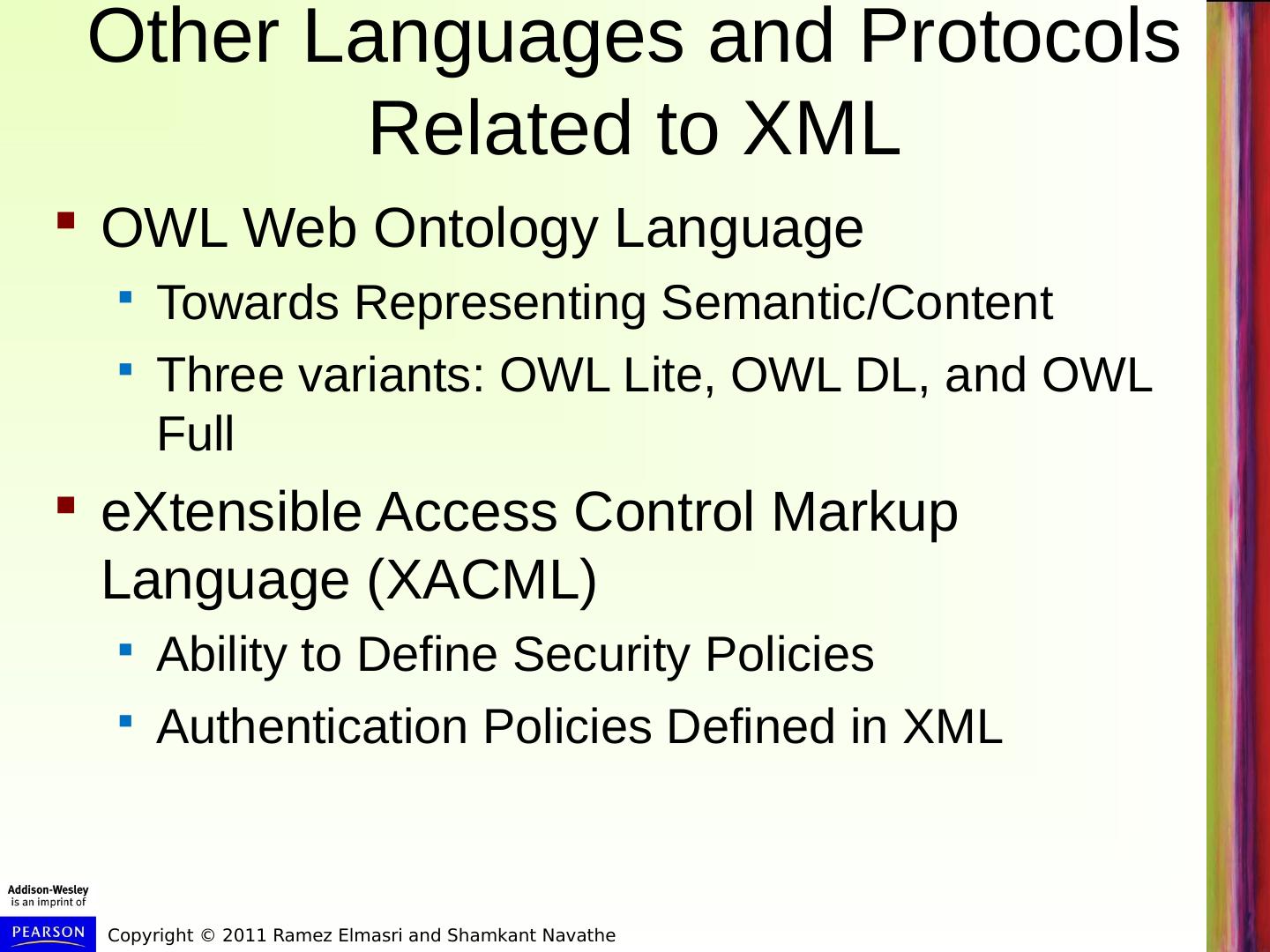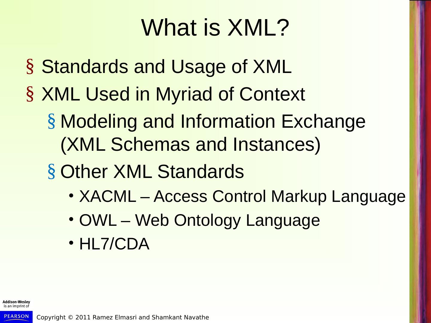 2 .What is XML? Standards and Usage of XML XML Used in Myriad of Context Modeling and Information Exchange (XML Schemas and Instances) Other XML Standards XACML – Access Control Markup Language OWL – Web Ontology Language HL7/CDA