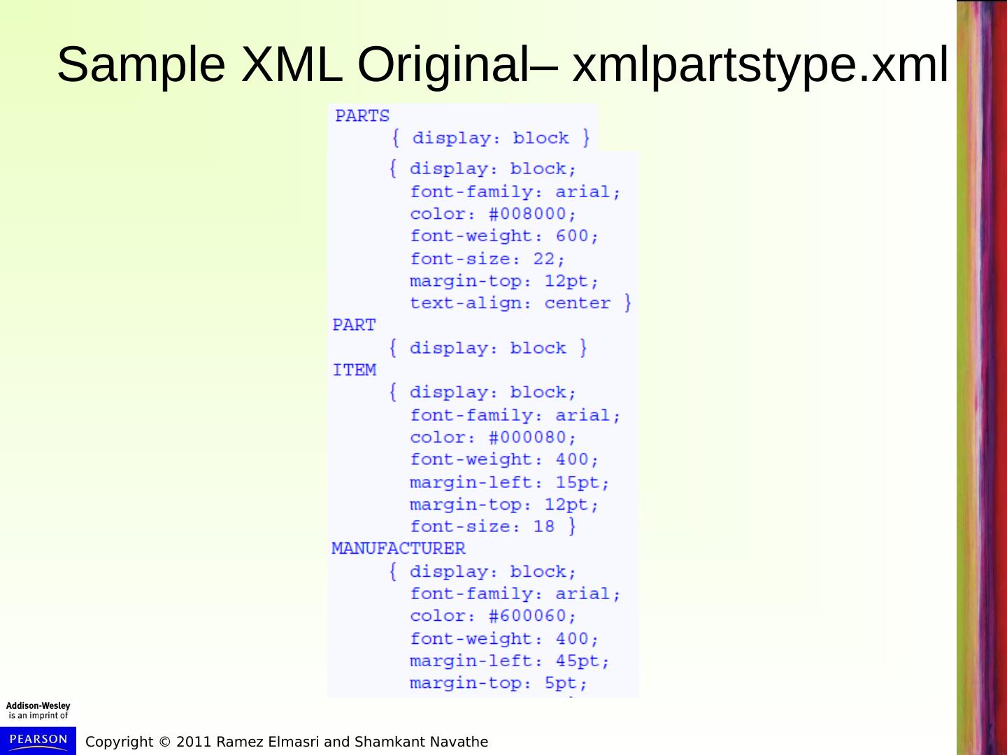 28 .XML Documents and Schema Well formed Has XML declaration Indicates version of XML being used as well as any other relevant attributes Every element must matching pair of start and end tags Within start and end tags of parent element