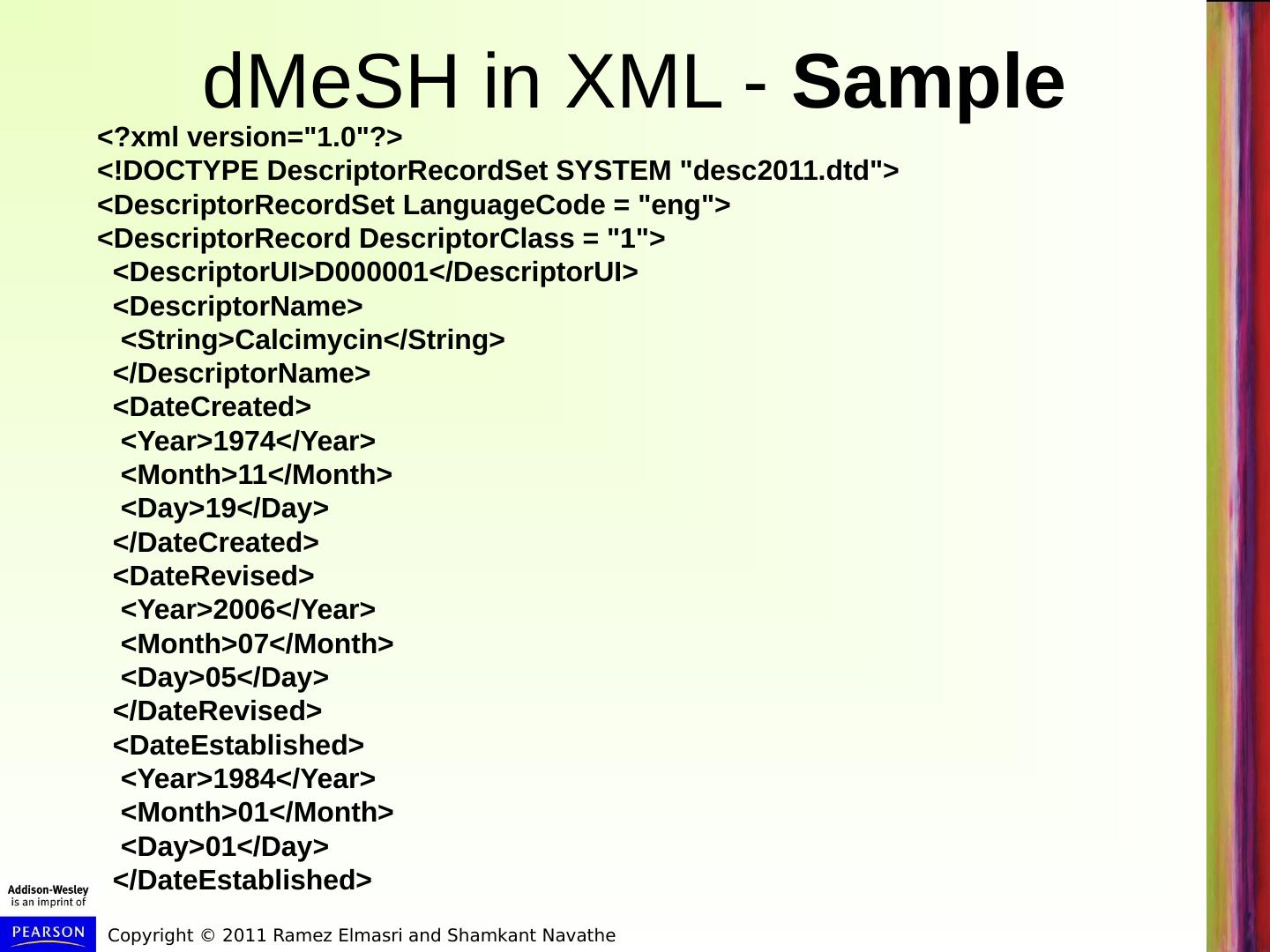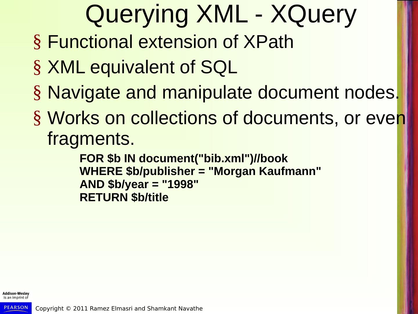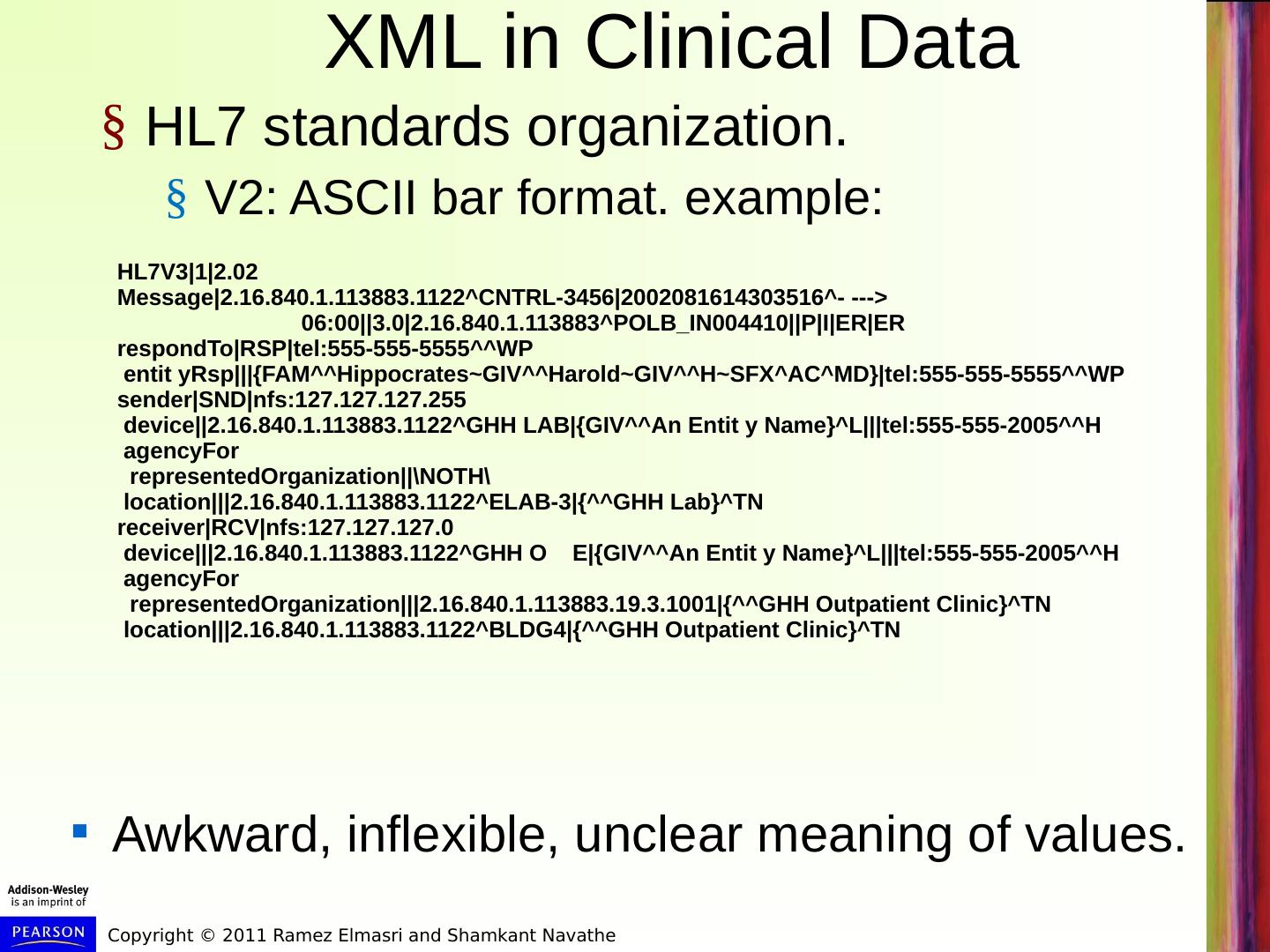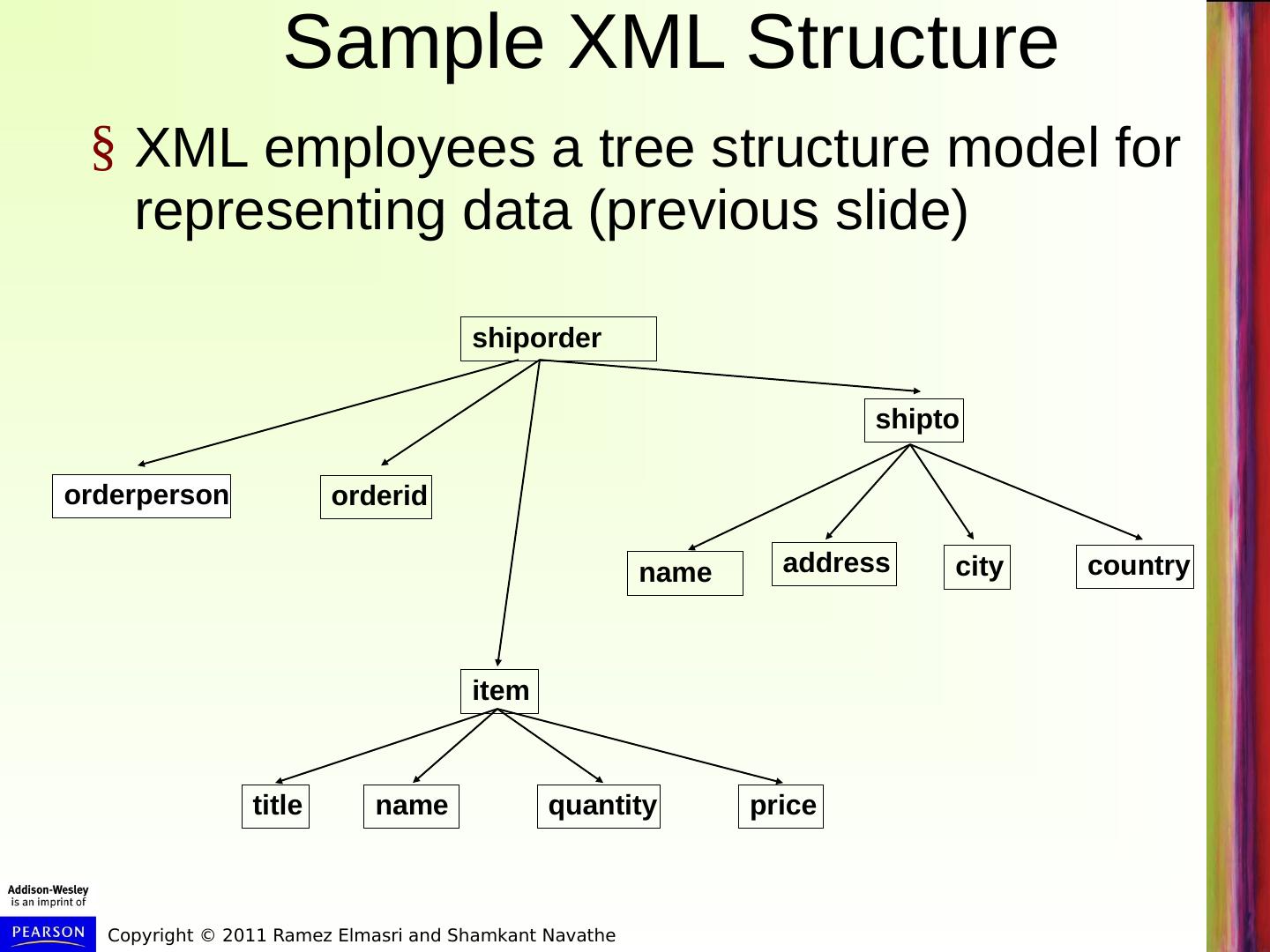 1 .Chapter 12 6e Outline Structured, Semistructured,Unstruct Data XML Hierarchical (Tree) Data Model XML Documents and XML Schema Storing and Extracting XML Documents from Databases XML Languages Extracting XML Documents from Relational Databases XML Usage in Biomedical Informatics