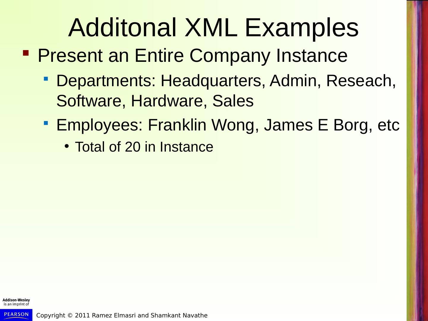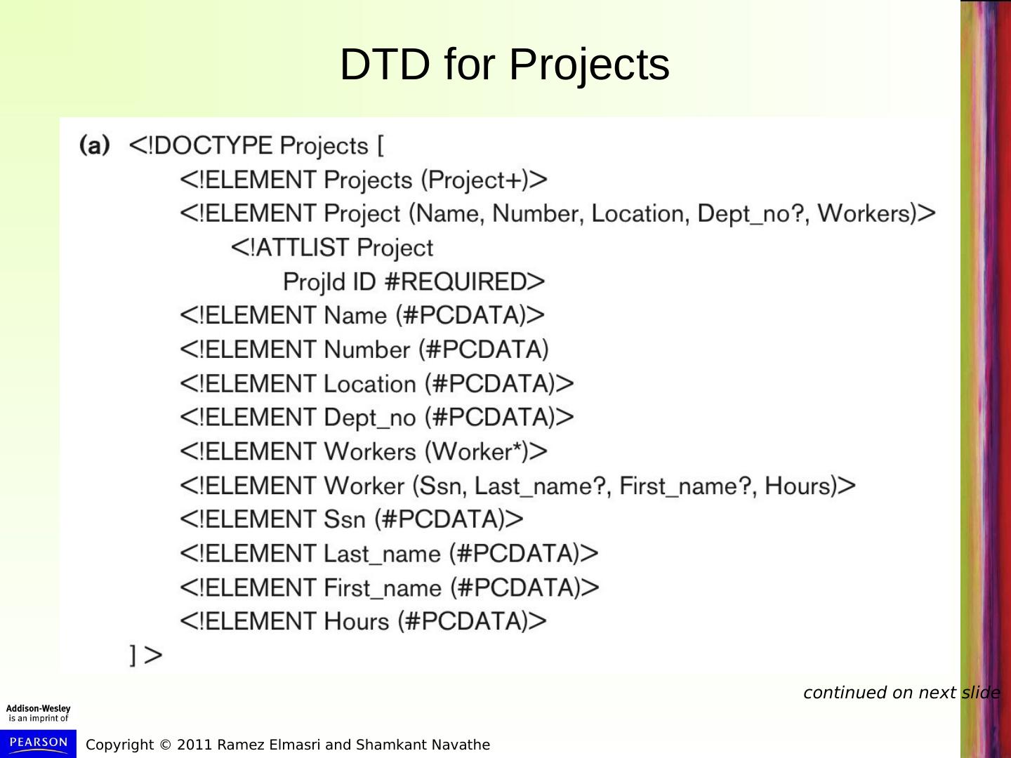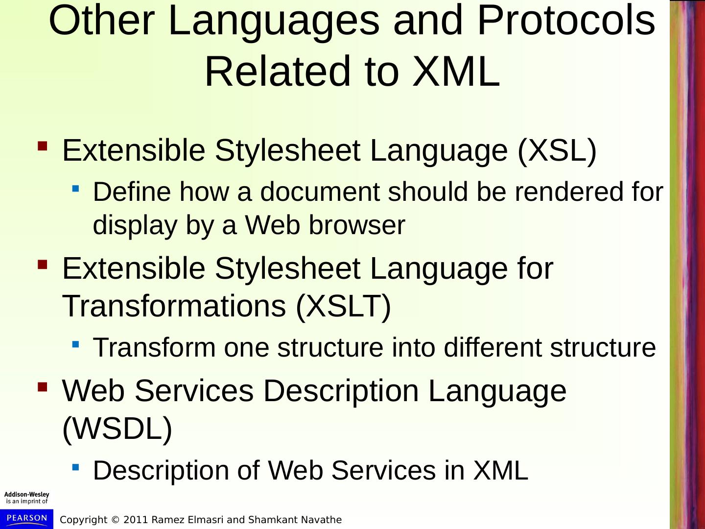 29 .XML Documents and Schema Valid Document must be well formed Document must follow a particular schema Start and end tag pairs must follow structure specified in separate XML DTD (Document Type Definition) file or XML schema file DTD is Outmoded in Current Usage Show Examples … Schemas Now Dominate ..