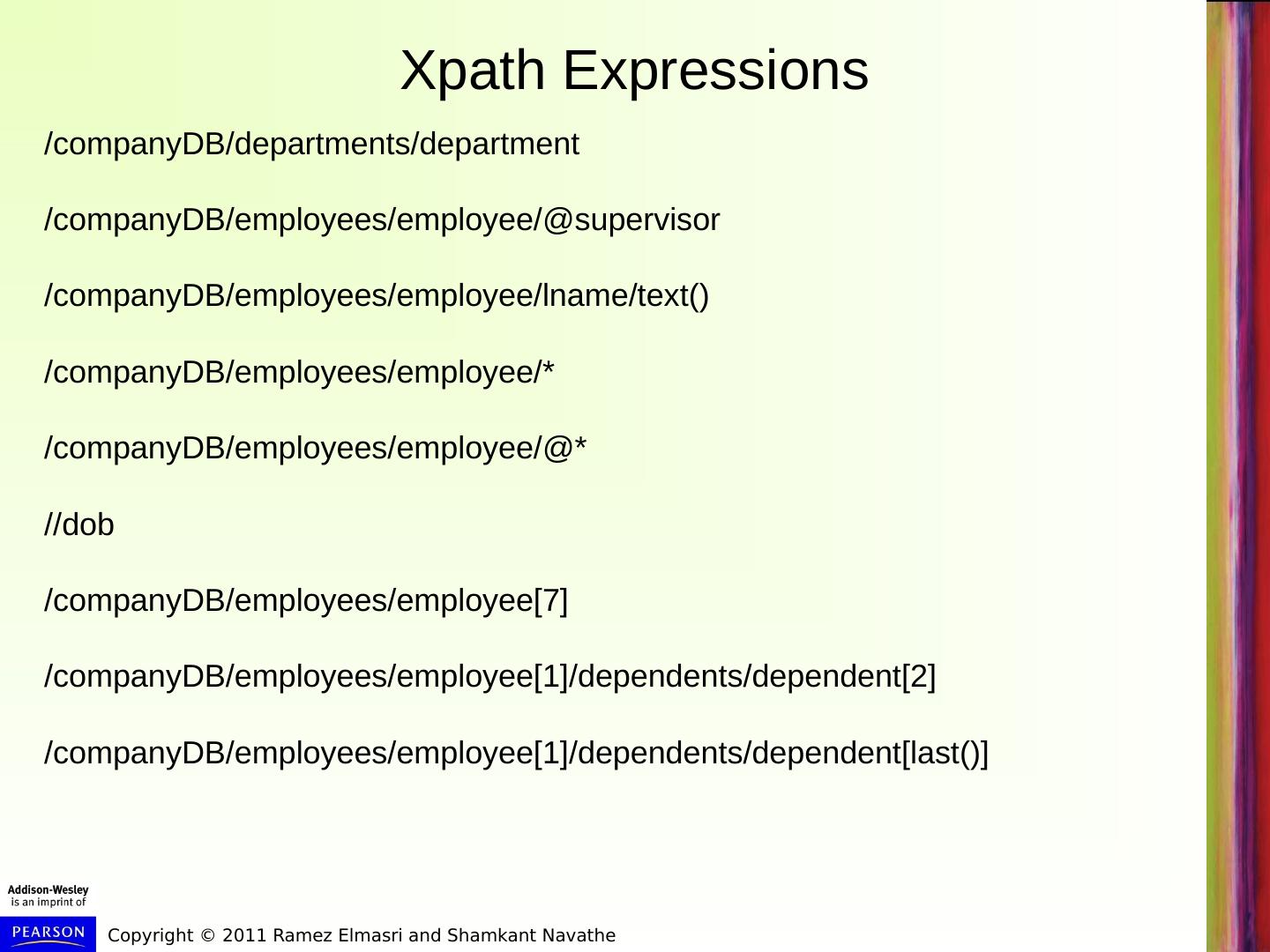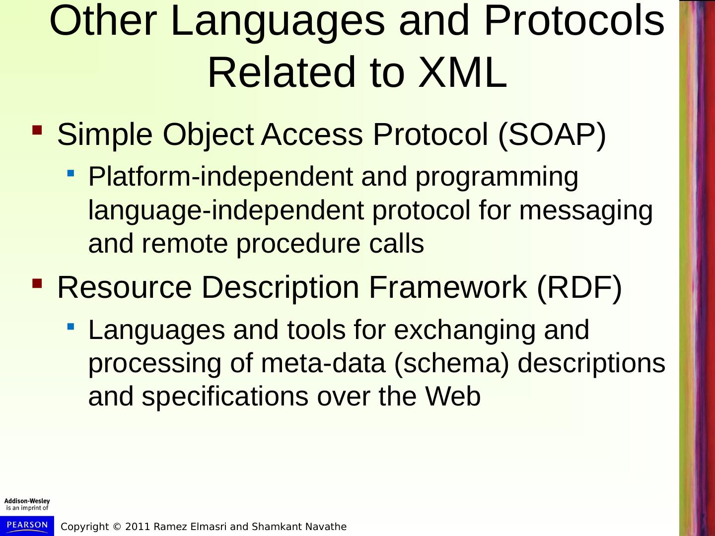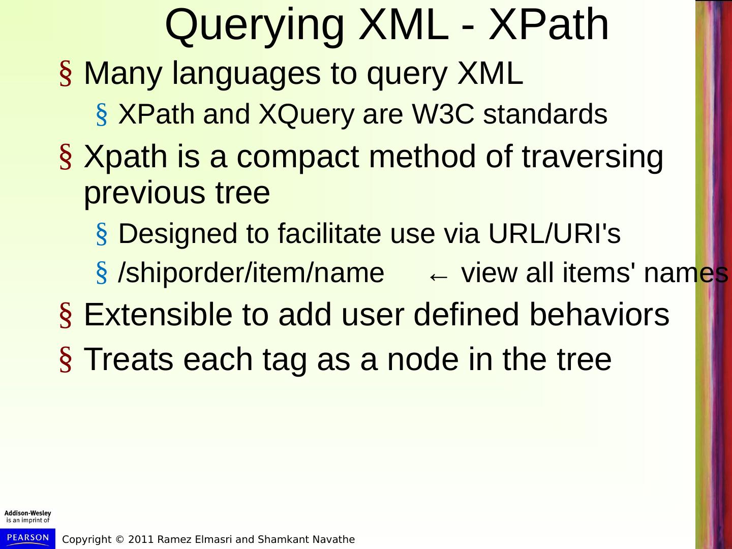 27 .XML Hierarchical Data Model XML attributes Describe properties and characteristics of the elements (tags) within which they appear May reference another element in another part of the XML document Common to use attribute values in one element as the references