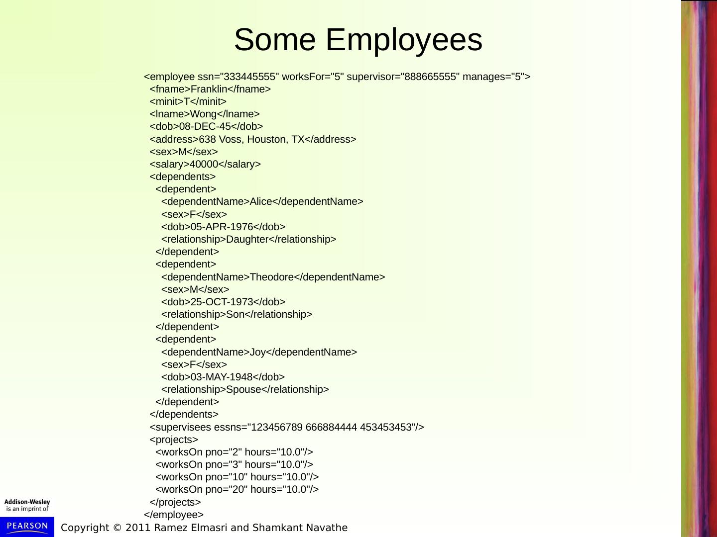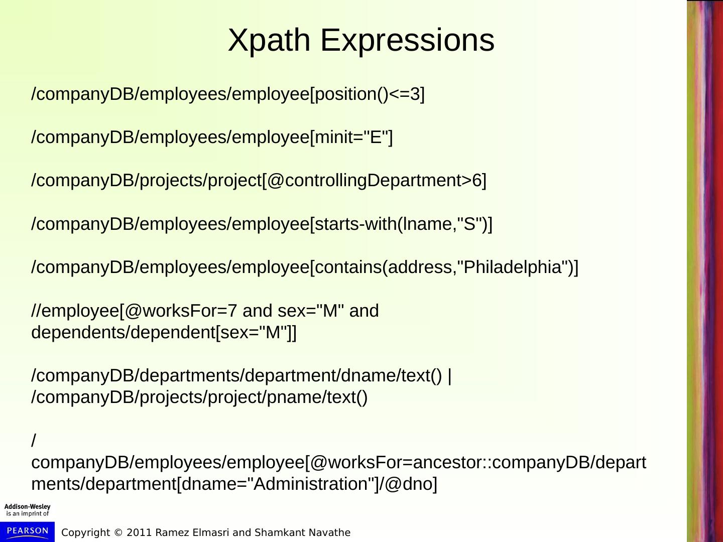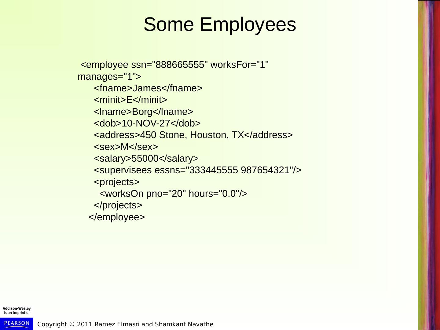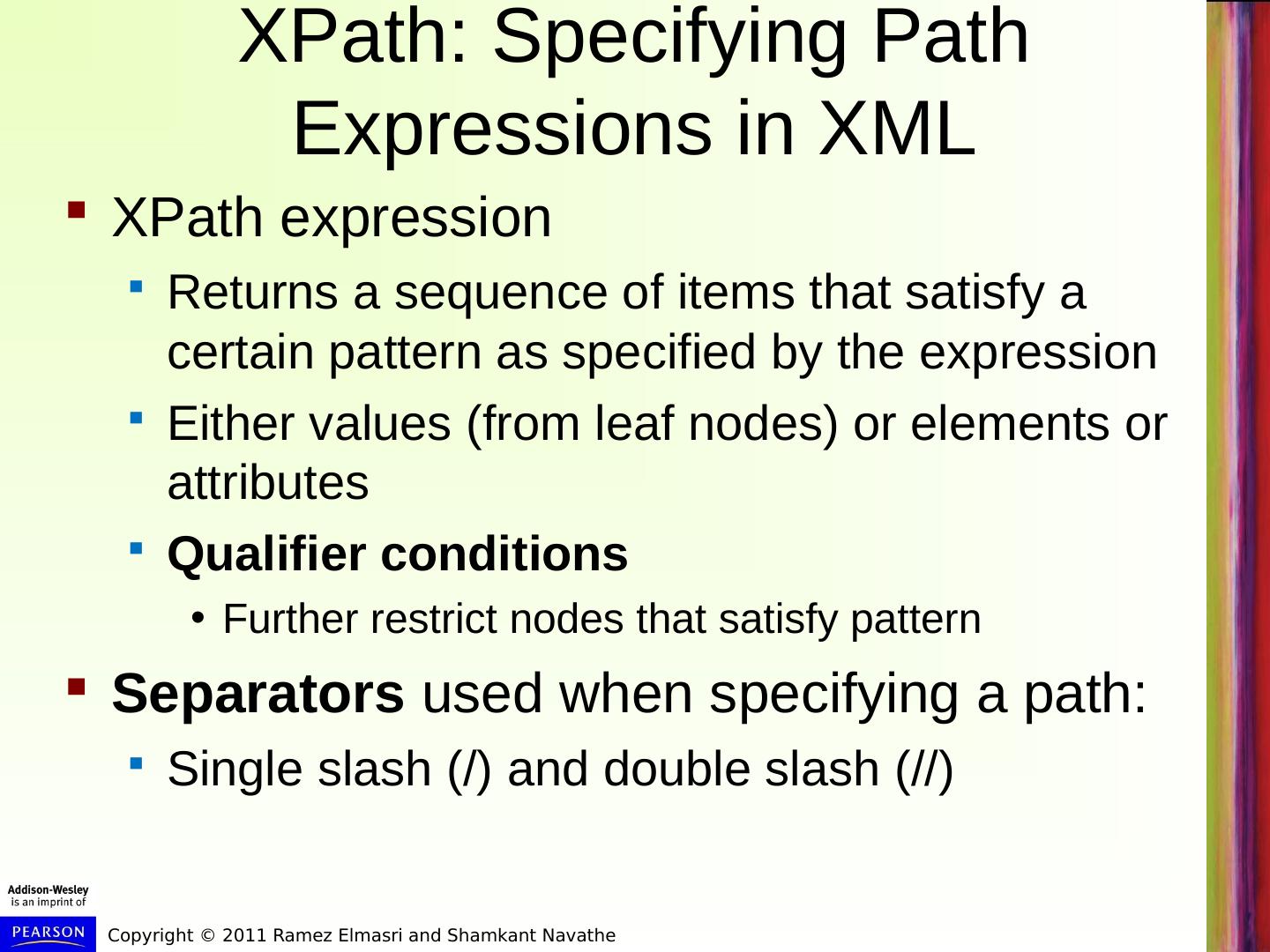 27 .XML Hierarchical Data Model XML attributes Describe properties and characteristics of the elements (tags) within which they appear May reference another element in another part of the XML document Common to use attribute values in one element as the references