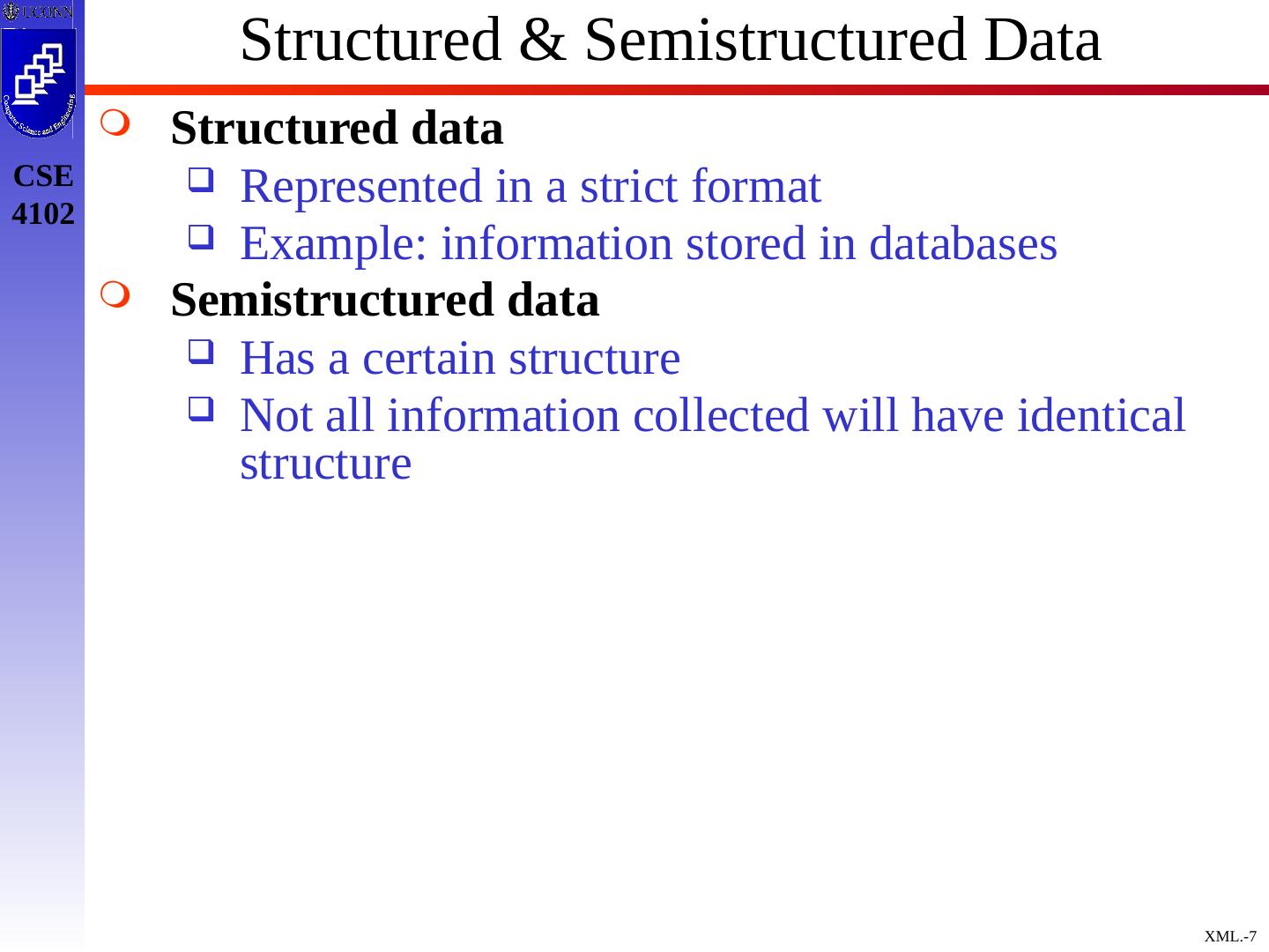 7 .Structured & Semistructured Data Structured data Represented in a strict format Example: information stored in databases Semistructured data Has a certain structure Not all information collected will have identical structure