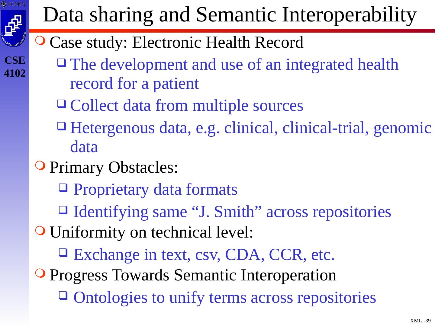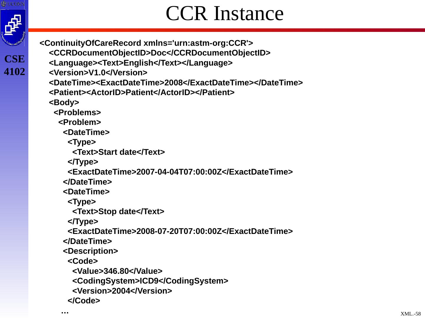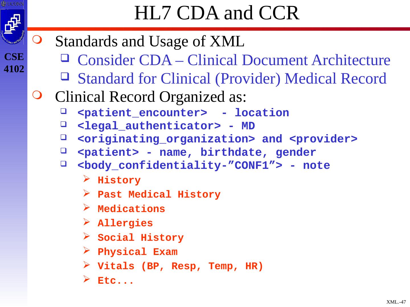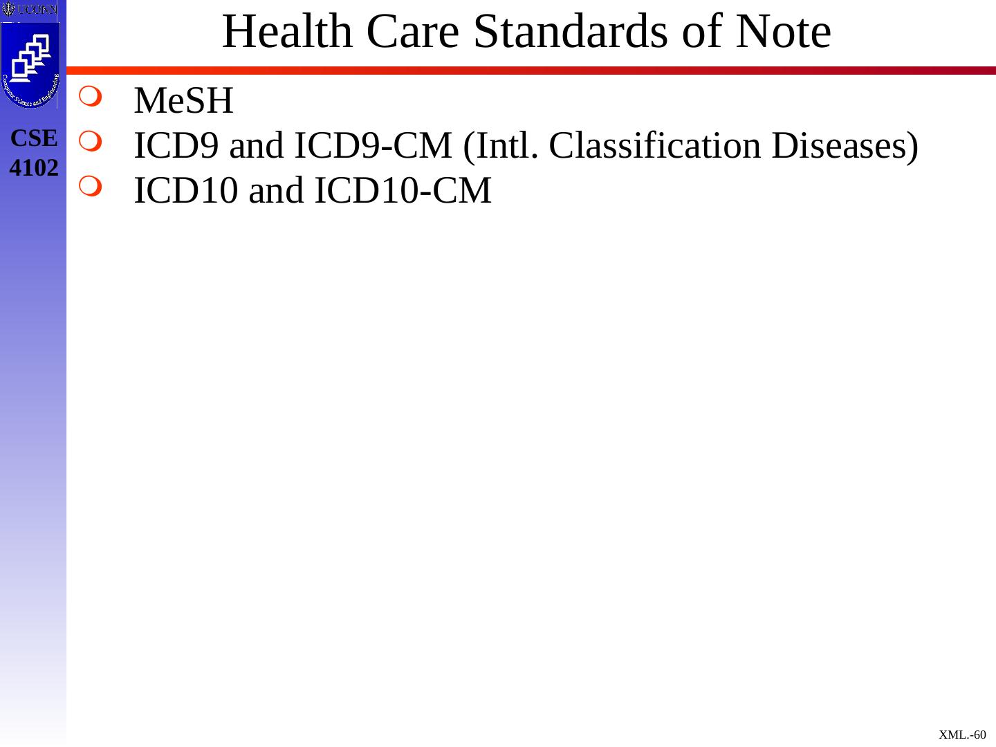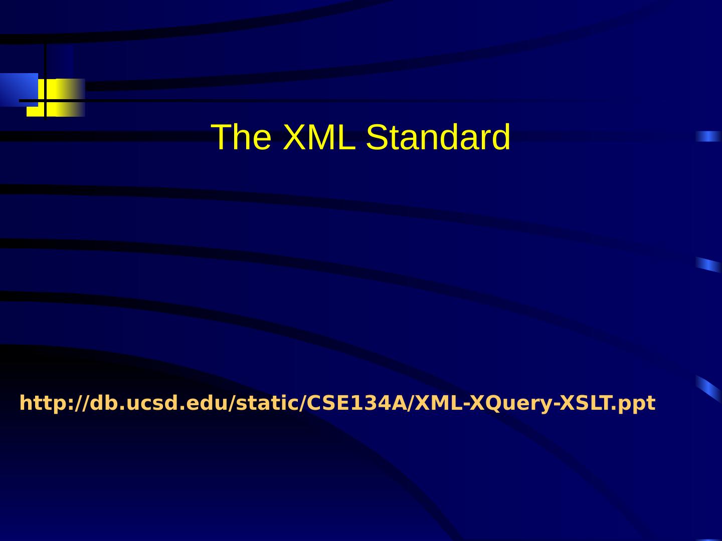 1 .XML Standards, Xpath , and XQuery What is XML? How is it Used Today? HL7 and CDA, CCR Biomedical InformaticsStandards MeSH ICD9 and ICD9-CM (Intl. Classification Diseases) ICD10 and ICD10-CM XML EBNF Supplemental Material on XPath and Xquery Web Server Programming CSE135 Winter 2004 db.ucsd.edu/static/CSE134A/XML-XQuery-XSLT.ppt Query Languages for XML http://infolab.stanford.edu/~ullman/fcdb/aut07/slides/xpath-xquery-xslt.ppt