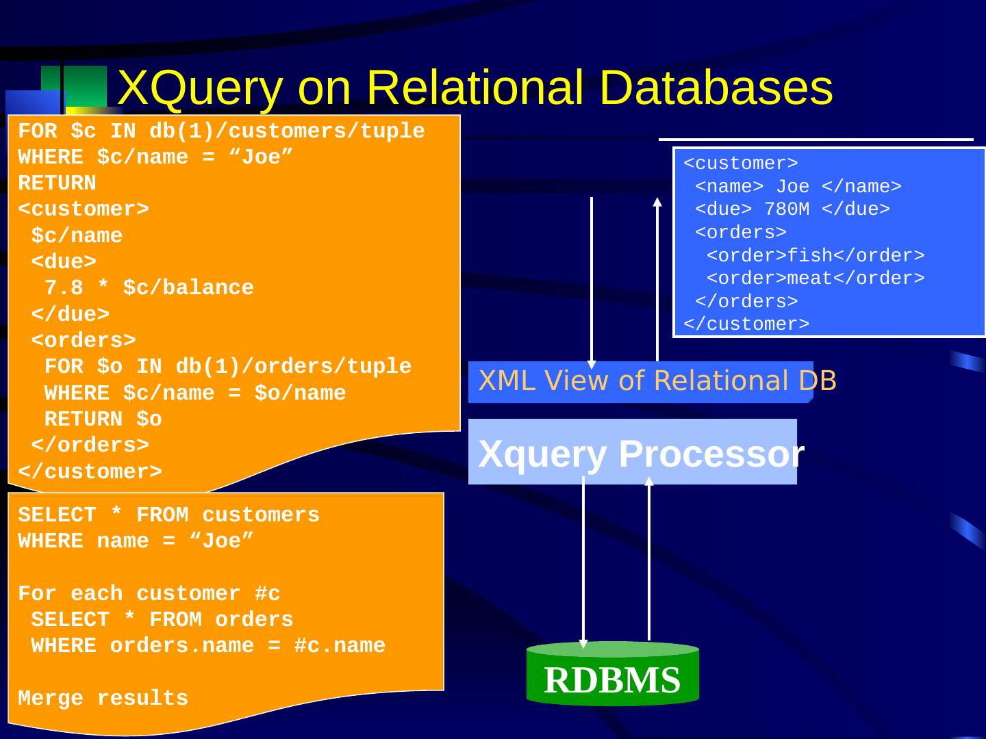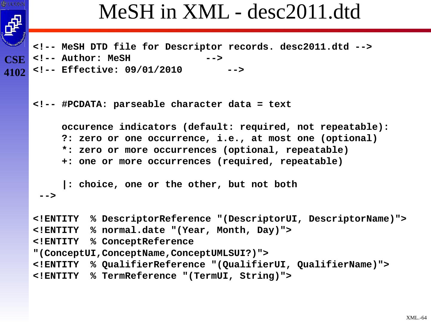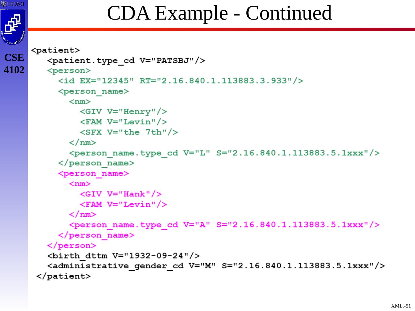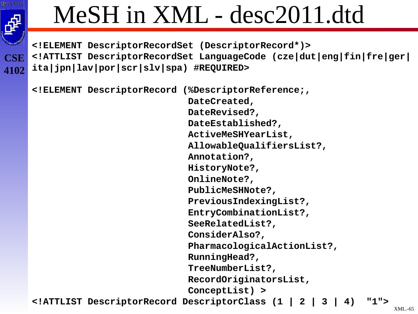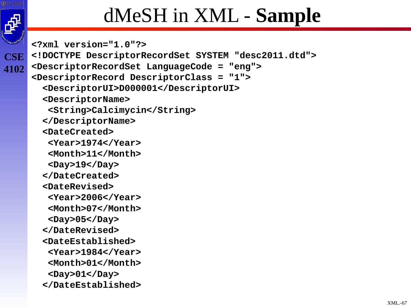 1 .XML Standards, Xpath , and XQuery What is XML? How is it Used Today? HL7 and CDA, CCR Biomedical InformaticsStandards MeSH ICD9 and ICD9-CM (Intl. Classification Diseases) ICD10 and ICD10-CM XML EBNF Supplemental Material on XPath and Xquery Web Server Programming CSE135 Winter 2004 db.ucsd.edu/static/CSE134A/XML-XQuery-XSLT.ppt Query Languages for XML http://infolab.stanford.edu/~ullman/fcdb/aut07/slides/xpath-xquery-xslt.ppt