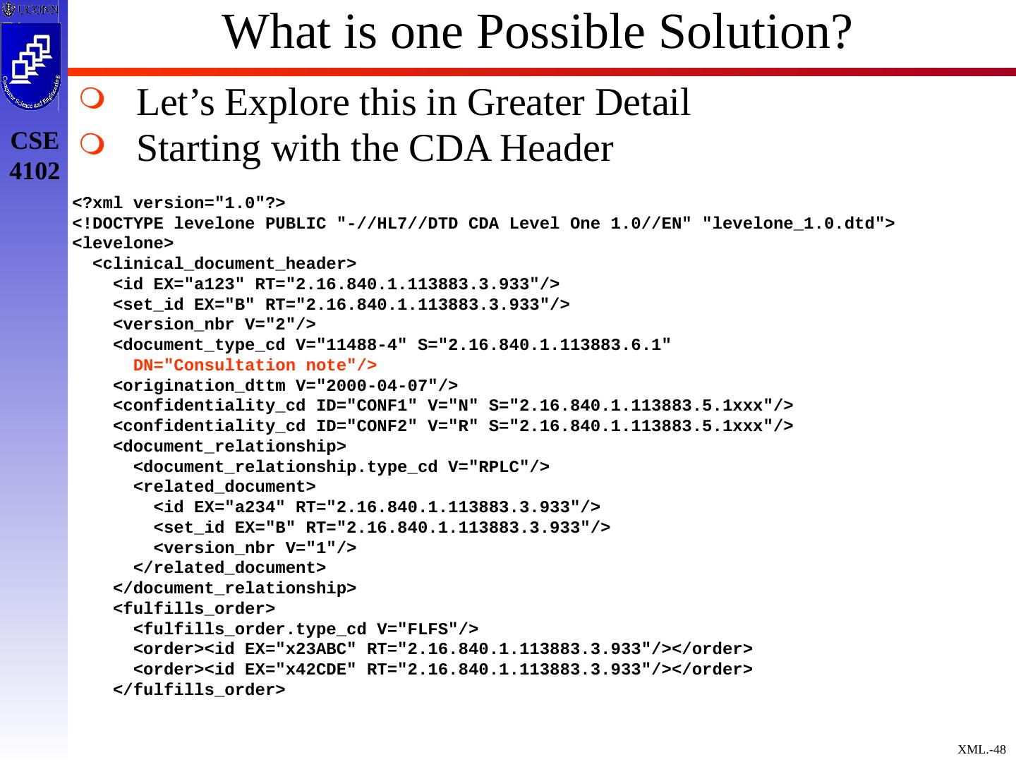 2 .What is one Possible Solution? Standards and Usage of XML XML Used in Myriad of Context Modeling and Information Exchange (XML Schemas and Instances) XML Standards XACML – Access Control Markup Language OWL – Web Ontology Language HL7/CDA What is/will be its Eventual Role in BMI?