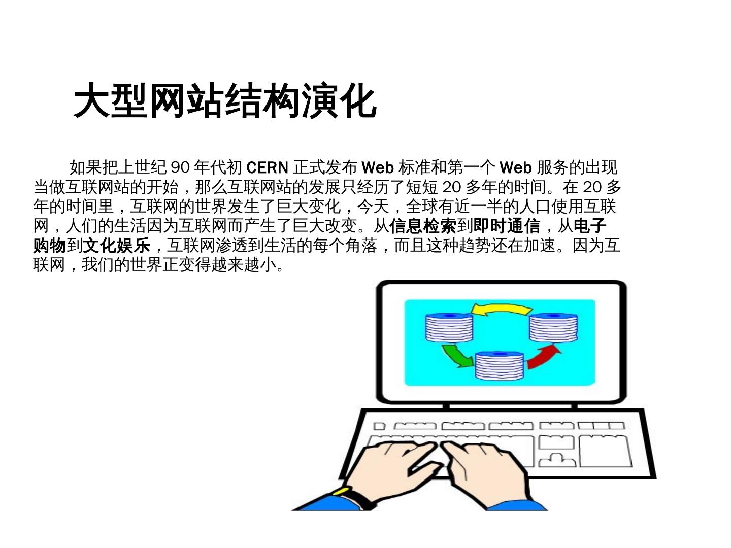 大型网站技术架构. 核心原理 ... 高并发,大流量. 高可用. 海量数据. 用户分布广泛,网络情况复杂. 安全环境恶劣 ... 1.2.4 使用应用服务器集群改善网站的并发处理能力.