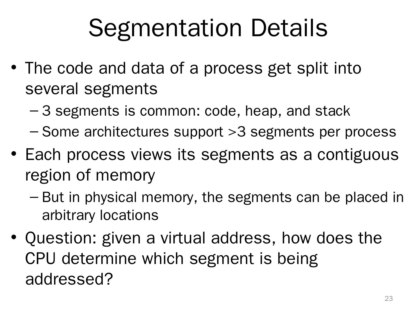 Modern OSes “disable” segmentation; The Linux kernel sets up four .... Page tables are typically stored in kernel memory; OS stores a pointer to the page table in ...