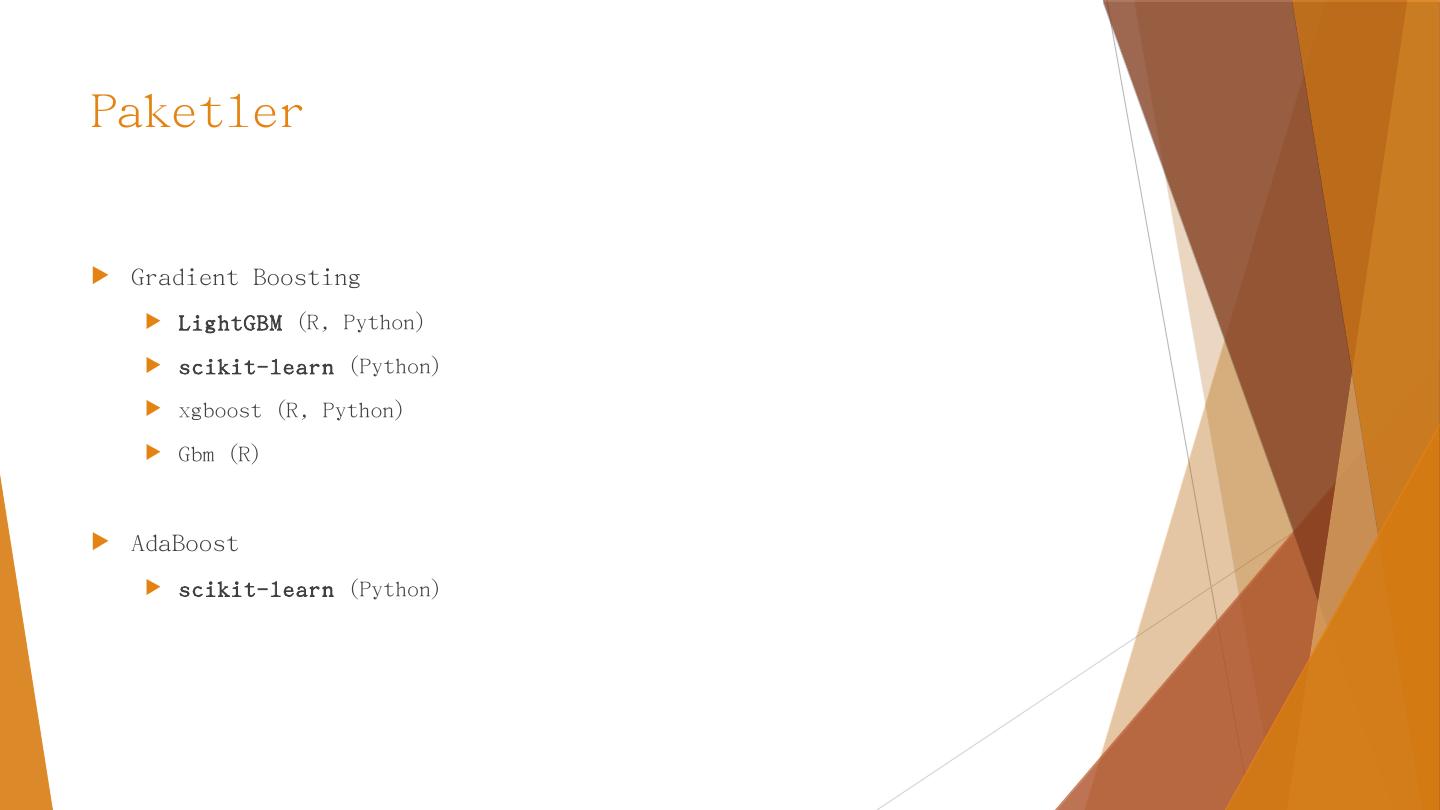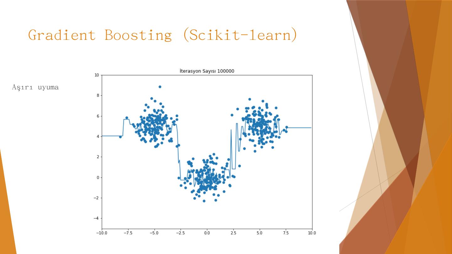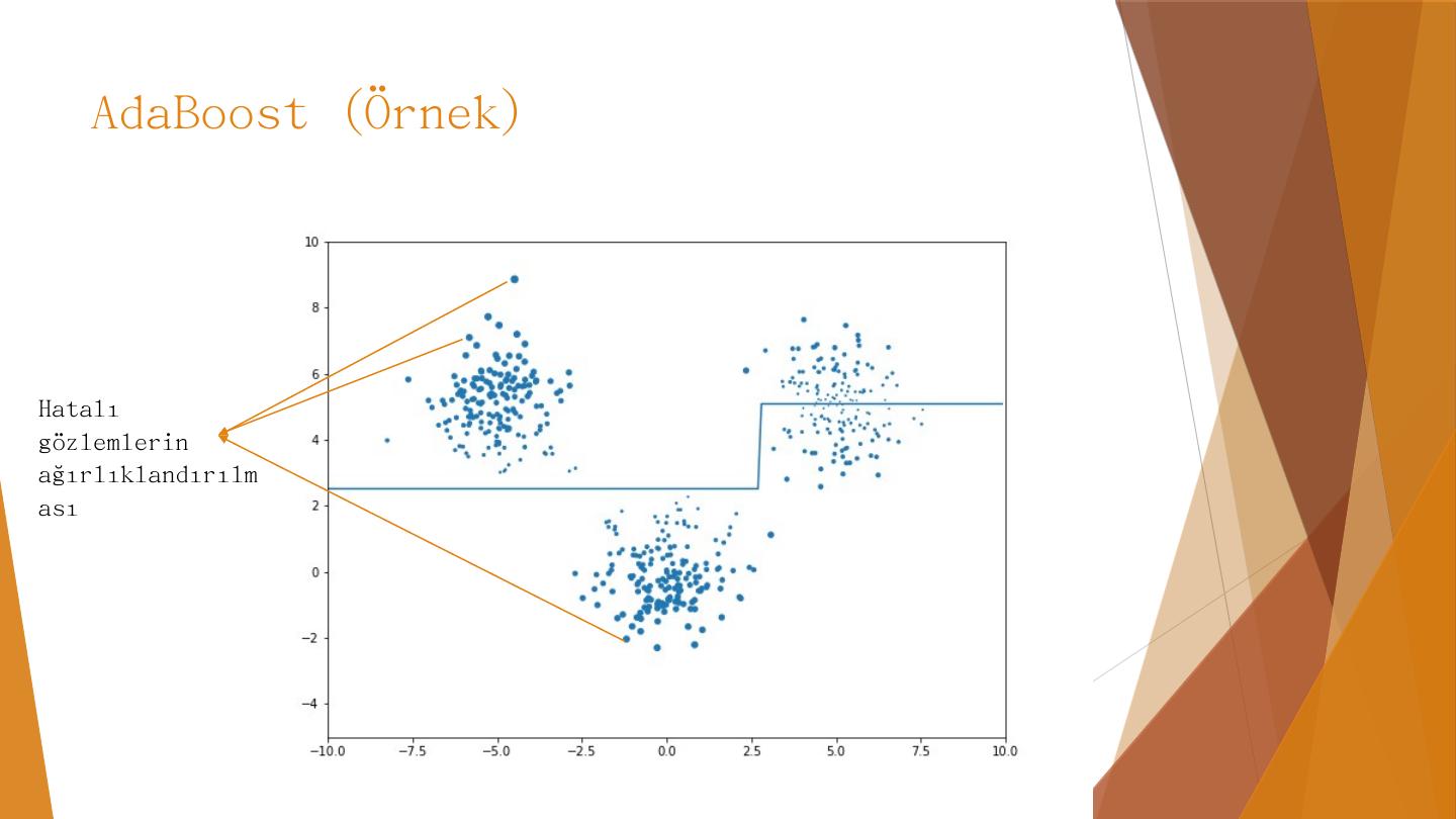 AdaBoost. Calibration. Gradient Boosting. Karar Ağaçları. Özniteliklerin değerlerine göre yapılan kırılımlarla birbirine benzeyen örnekleri ayrıştırmaya dayanır.