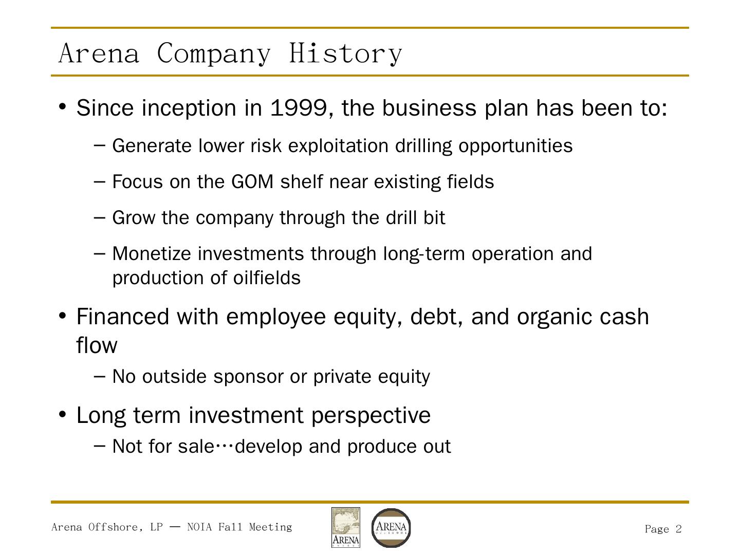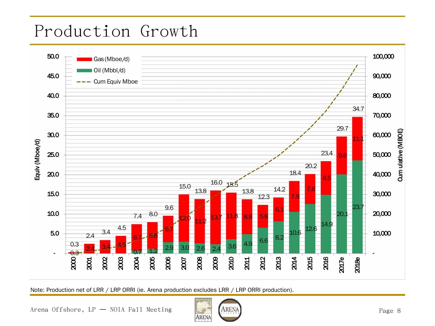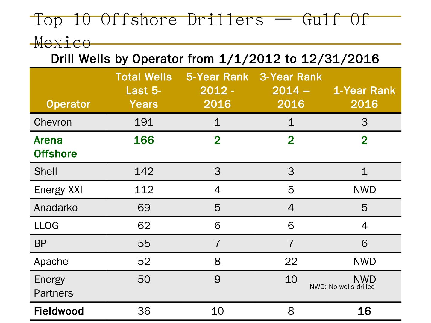 Since inception, Arena has participated in ~272 drill wells (239+ operated) with ... Apache, 52, 8, 22, NWD ... Arena Group – Drill Well Summary.