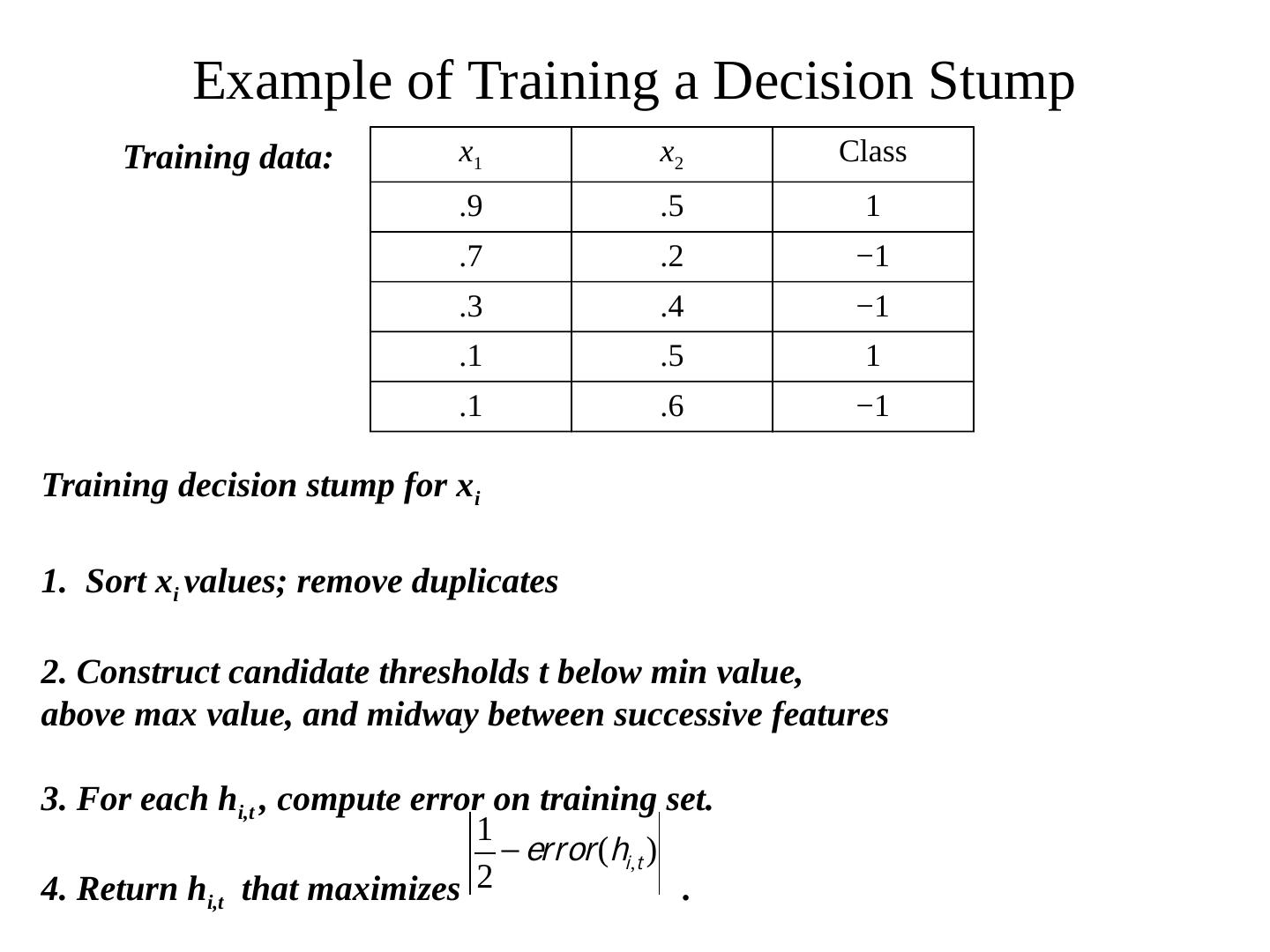 Adaptive Boosting (Adaboost). A method for combining different weak hypotheses (training error close to but less than 50%) to produce a strong hypothesis ...